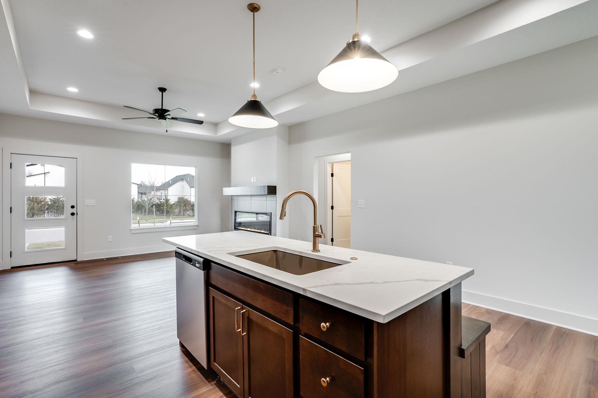The Kinsley by TW Custom Homes offers 5 bedrooms and 3 bathrooms with a thoughtfully designed, open-concept layout. The heart of the home features a bright living area with a tray ceiling, seamlessly connected to the dining space and kitchen—perfect for everyday living and entertaining. The stunning primary suite is a true retreat, showcasing a tray ceiling, custom tile shower, and spacious walk-in closet. Conveniently located just outside the primary suite, the laundry room is tucked into its own space with a closable door to keep everything neat and organized. The fully finished basement expands your living space with a large family room, two additional bedrooms, one bathroom, and a generous storage area. Step outside to a massive covered concrete patio from the mid-level walkout—ideal for gatherings, grilling, or enjoying the outdoors in any season. An irrigation well, sod, and sprinkler system are included. Taxes and specials are estimated. All information is deemed reliable but not guaranteed and is subject to change without notice.