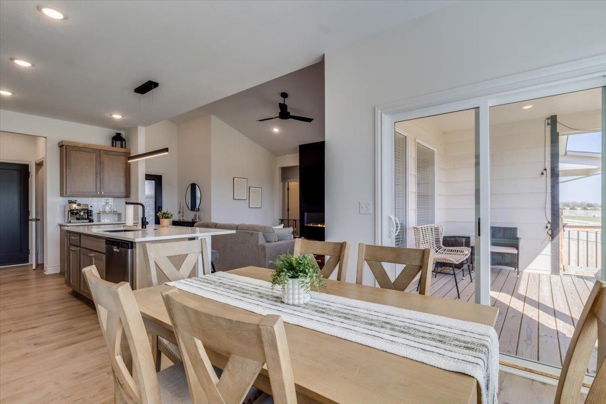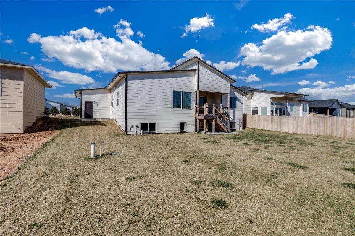 This stunning home is a true showstopper, featuring a highly sought-after modern, front elevation and is just two years of age! Offering 5 bedrooms and 3 bathrooms, it showcases luxury finishes throughout and earned top honors in the 2024 Fall Parade of Homes with the coveted “Pick of the Parade” award, an achievement that’s easy to appreciate the moment you step inside. The main living area displays a beautiful, statement fireplace wall, seamlessly connected to the kitchen and dining space, creating the perfect open-concept layout for everyday living and entertaining. Step outside to the covered deck, an ideal setting for gatherings and outdoor enjoyment. The primary suite serves as a private retreat, complete with a tiled shower and a spacious walk-in closet. The lower level view out basement adds even more versatility with a wet bar and generous storage space. Located in the highly desirable Goddard School District, this home also offers access to exceptional neighborhood amenities, including a pool, sport court, walking paths, fishing ponds, and a playground. All information is deemed reliable but not guaranteed and is subject to change without notice.