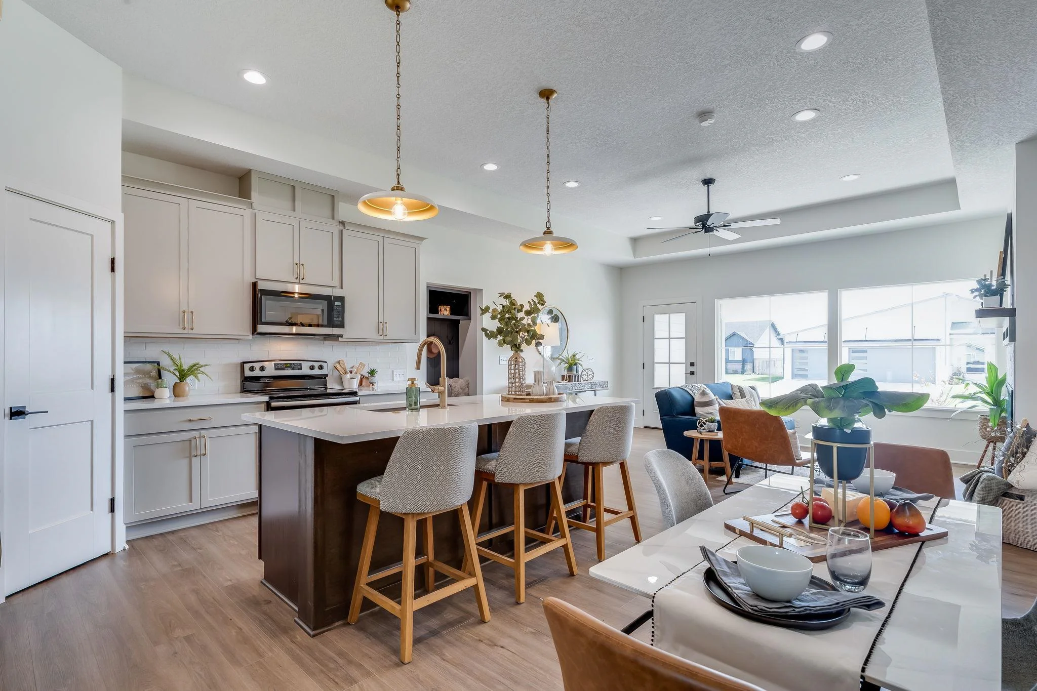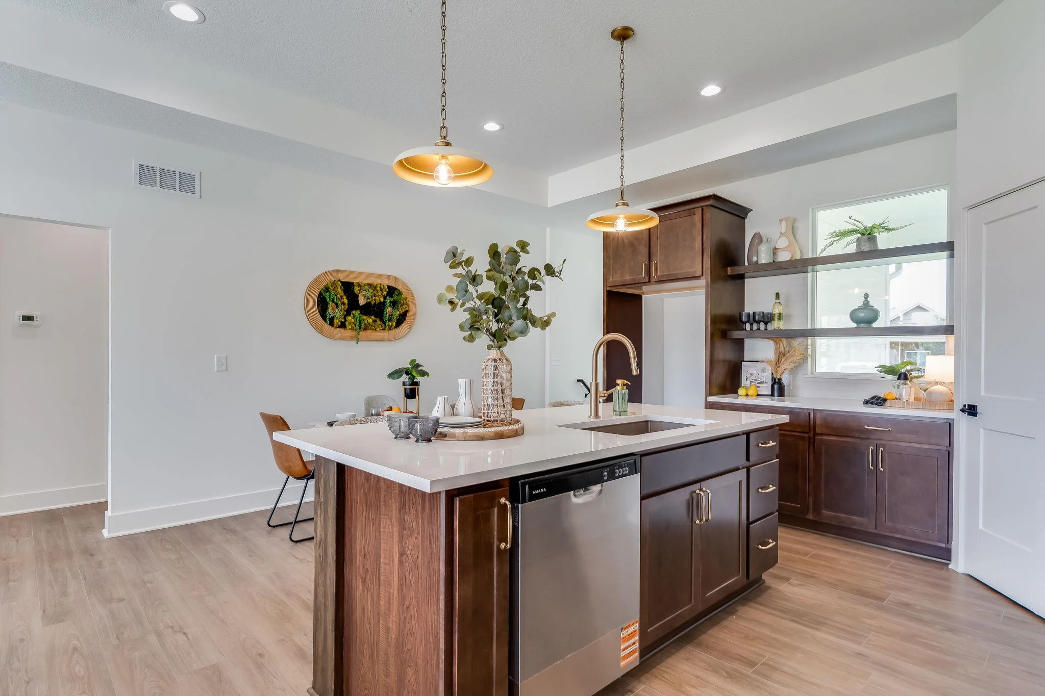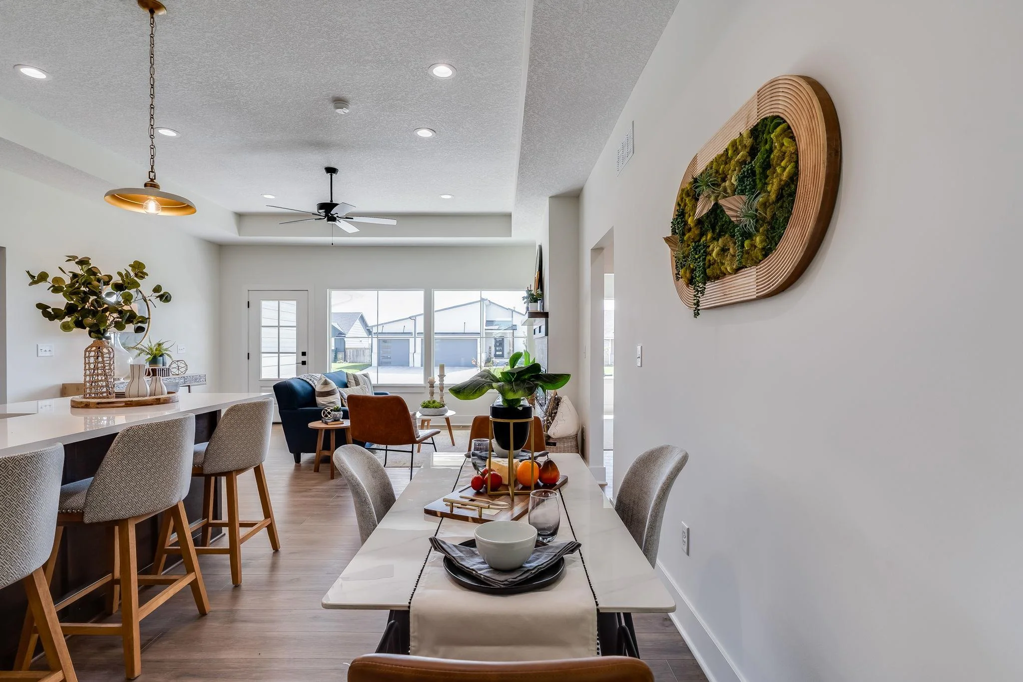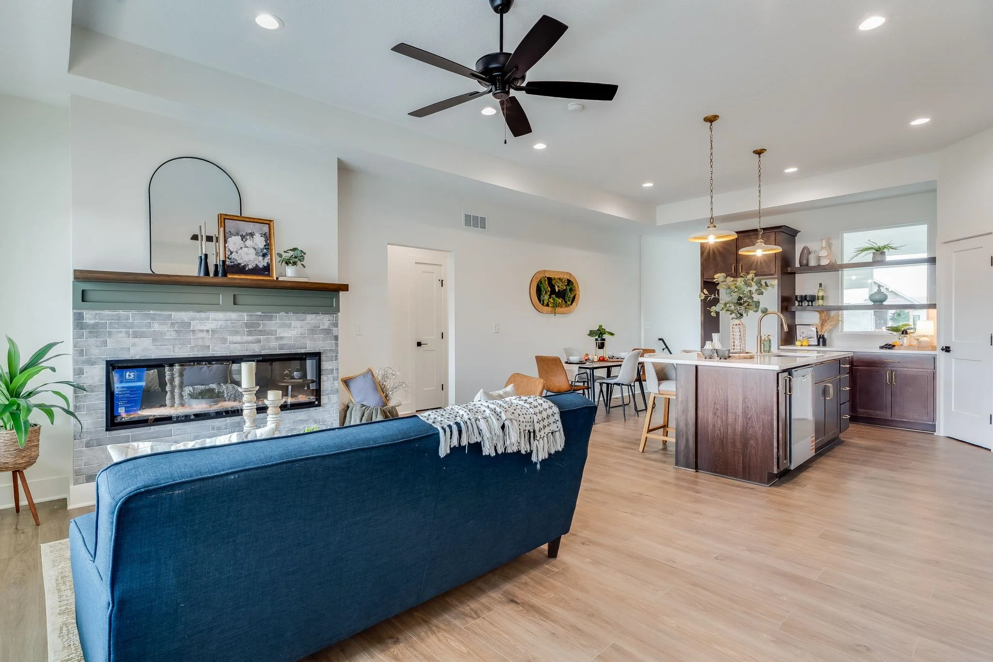 The Kinsley by TW Custom Homes offers 5 bedrooms and 3 bathrooms with a thoughtfully designed, open-concept layout. The heart of the home features a bright living area with a tray ceiling, seamlessly connected to the dining space and kitchen—perfect for everyday living and entertaining. The stunning primary suite is a true retreat, showcasing a tray ceiling, custom tile shower, and spacious walk-in closet. Conveniently located just outside the primary suite, the laundry room is tucked into its own space with a closable door to keep everything neat and organized. The fully finished basement expands your living space with a large family room, two additional bedrooms, one bathroom, and a generous storage area. Step outside to a massive covered concrete patio from the mid-level walkout—ideal for gatherings, grilling, or enjoying the outdoors in any season. An irrigation well, sod, and sprinkler system are included. Taxes and specials are estimated. This home backs to a tree row for additional privacy and is on a cul-de-sac street for added safety. All information is deemed reliable but not guaranteed and is subject to change without notice.