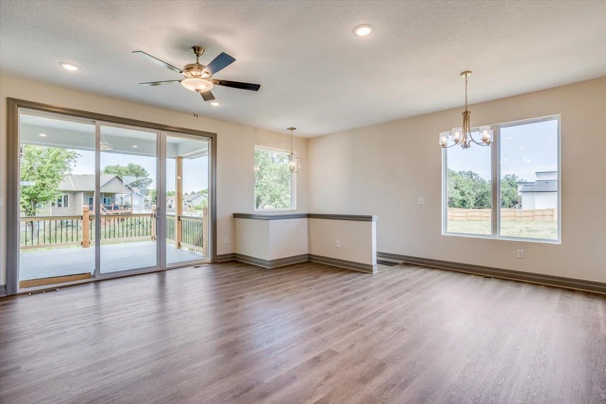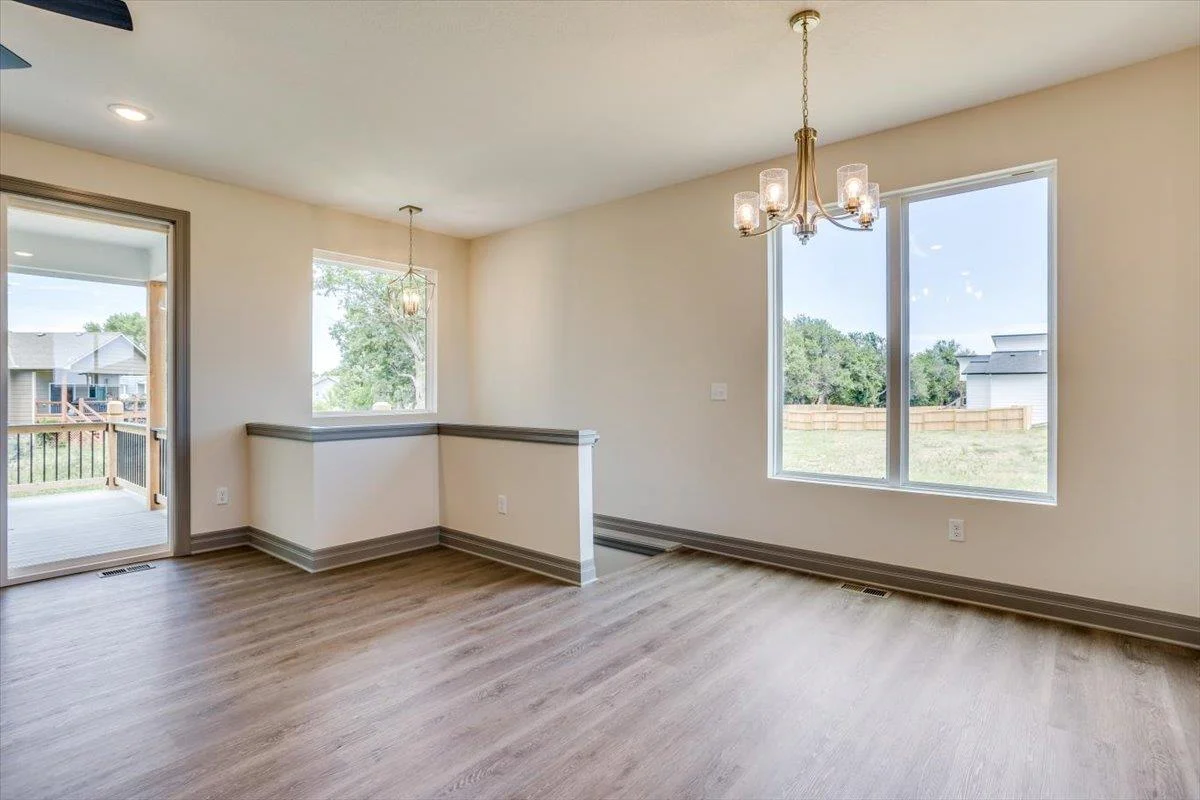 Step into comfort and style with this inviting 3 bedroom, 2 bath home by RJ Castle Custom Homes. Complete with a luxurious primary bedroom featuring a walk in closet and en suite bathroom. The kitchen is equipped with plenty of cabinet space, perfect for storage and meal preparation. An often overlooked but loved feature is the window over the kitchen sink, this gives you the ability to look outside while doing dishes or cooking. Enjoy outdoor living on the spacious covered deck, which is ideal for relaxation or entertaining guests. This home backs to a tree row! Potential for future expansion exists with an unfinished basement. The basement is also available for customization with contract for an additional cost and can be finished prior to close! Nestled in the newly expanding subdivision of Southern Ridge and highly sought after Goddard School District. Amenities in the neighborhood include a large pool, sports court, walking paths and fishing ponds. Close to a major highway which makes for easy and quick access to shopping and dining options. This information is deemed reliable but not guaranteed and subject to change without notice. Specials and taxes are estimated.