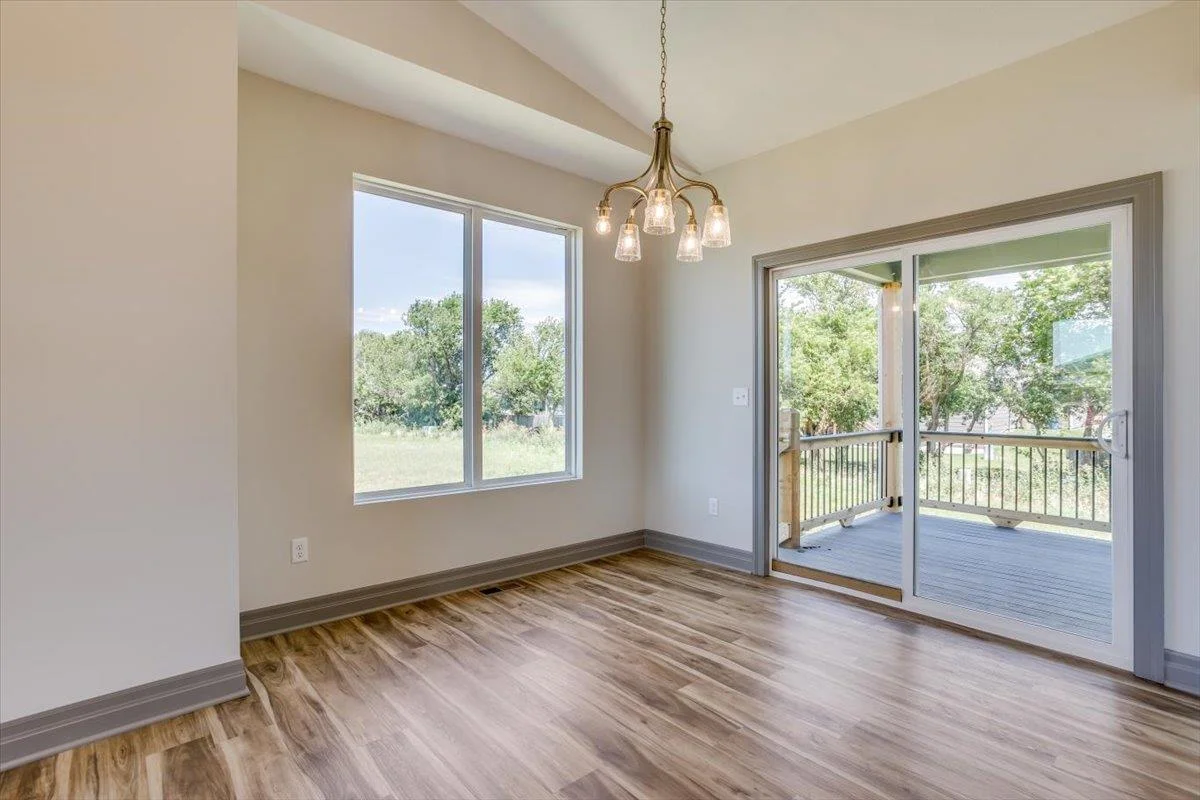 Discover this 5 bed, 3 bath home by RJ Castle Custom Homes. Nestled in the expanding subdivision of Southern Ridge. The interior features beautiful vaulted ceilings. The primary bedroom offers privacy with an en suite bathroom and walk in closet. The covered deck is perfect for outdoor gatherings. Basement finish is now complete! Irrigation well, sod, and sprinkler system included. In the highly sought after Goddard School District. Near major highway with easy access to shopping and dining. Southern Ridge amenities include a pool, sport court, walking paths and fishing ponds. Taxes and Specials are estimated. All information deemed reliable but not guaranteed and subject to change without notice.
