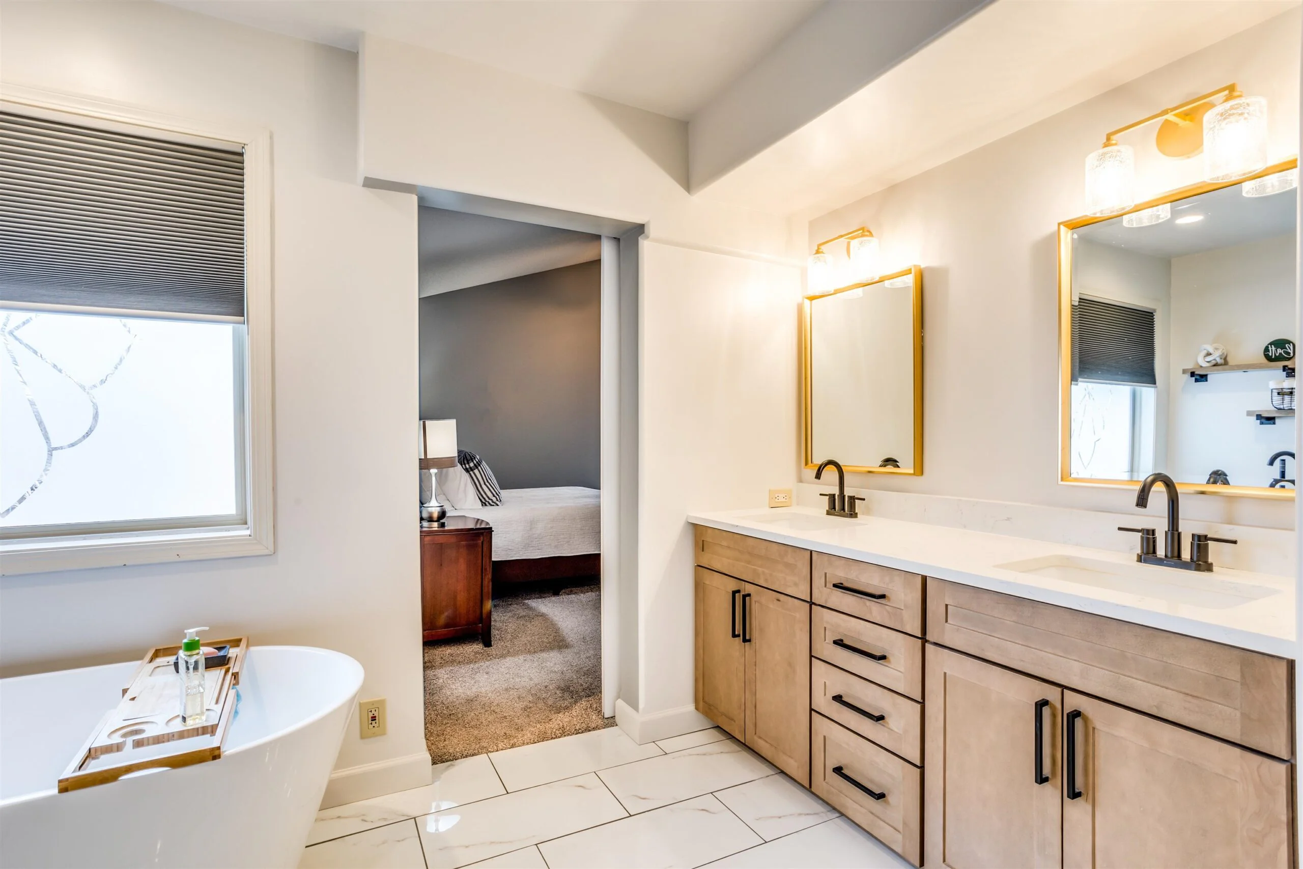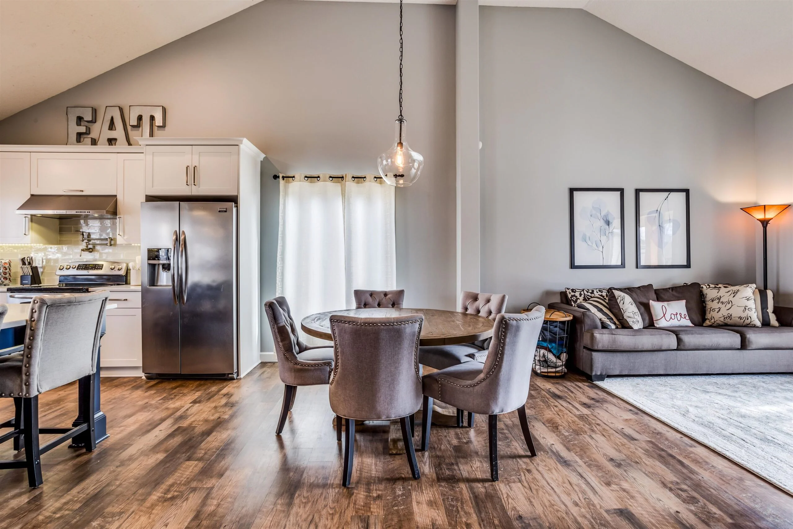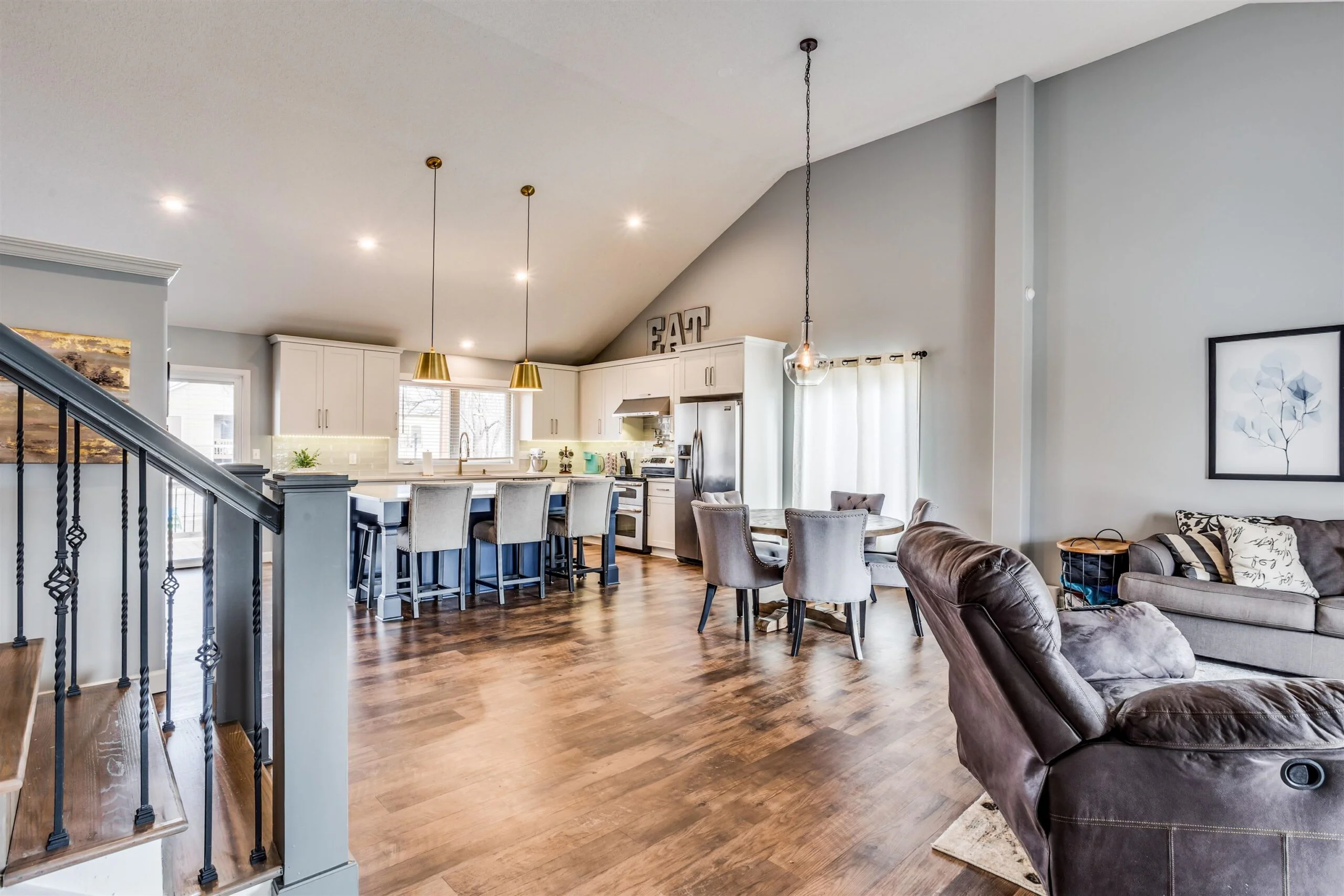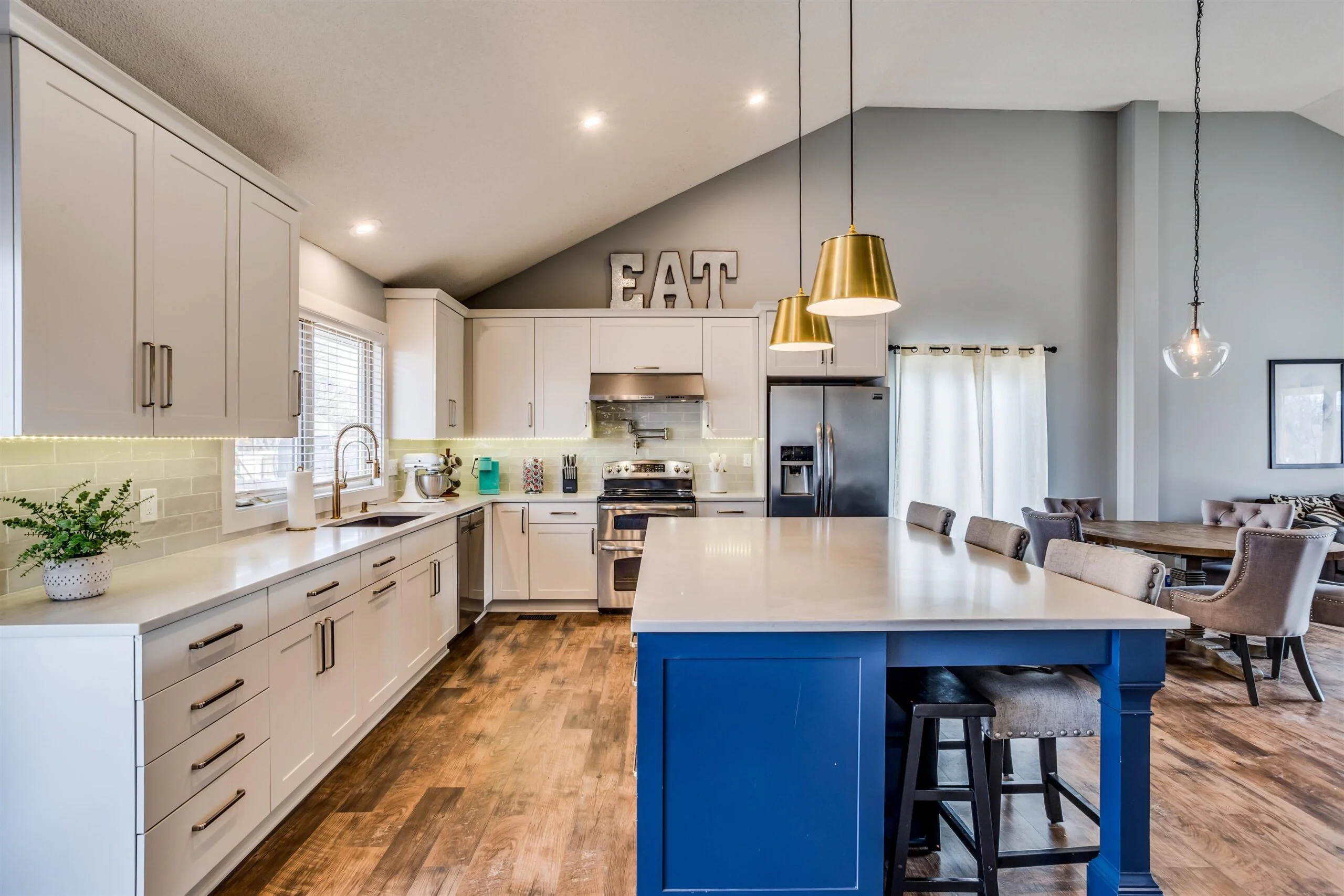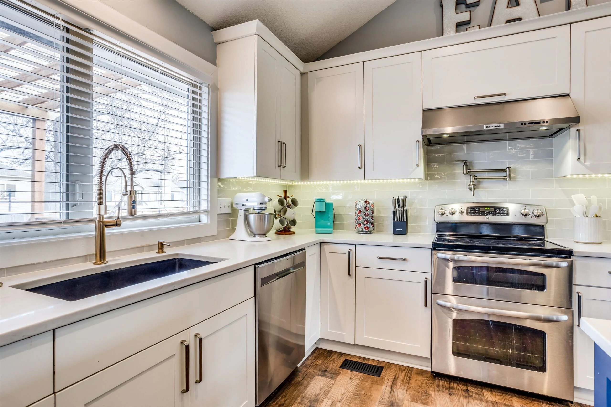 This beautifully maintained family home is filled with stunning updates, offering a perfect blend of modern design and comfort. Throughout the home, you'll find brand-new flooring, cabinets, plumbing fixtures, light fixtures, and fresh paint, all contributing to the home’s refreshed appeal. The expansive living room boasts vaulted ceilings and LVP floors, creating a bright, airy space to relax. The updated kitchen is a chef’s dream, featuring vaulted ceilings, new solid wood cabinets, new appliances, and quartz countertops, along with a dedicated dining space and breakfast nook for casual meals. The spacious main floor family room, with its large picture windows and cozy gas fireplace, provides a perfect retreat, complete with convenient access to the half bath. The luxurious Master Suite is a true sanctuary, offering a spacious bedroom, a walk-in closet, and a newly renovated master bath, complete with a tile shower and slipper tub. The upstairs is complete with two generously sized bedrooms accompanied by a full bath, providing ample space for the whole family. The fully finished basement adds even more living space, including a large family room, a sizable bedroom, and another updated bathroom with a beautiful tile shower. Step outside to the fenced backyard, where you'll find a recently replaced, tiered deck, complete with a louvered shade structure – perfect for outdoor entertaining. This home is truly a gem, with every detail thoughtfully updated for modern living. Some information is estimated and is not guaranteed. Please verify schools with USD 265.