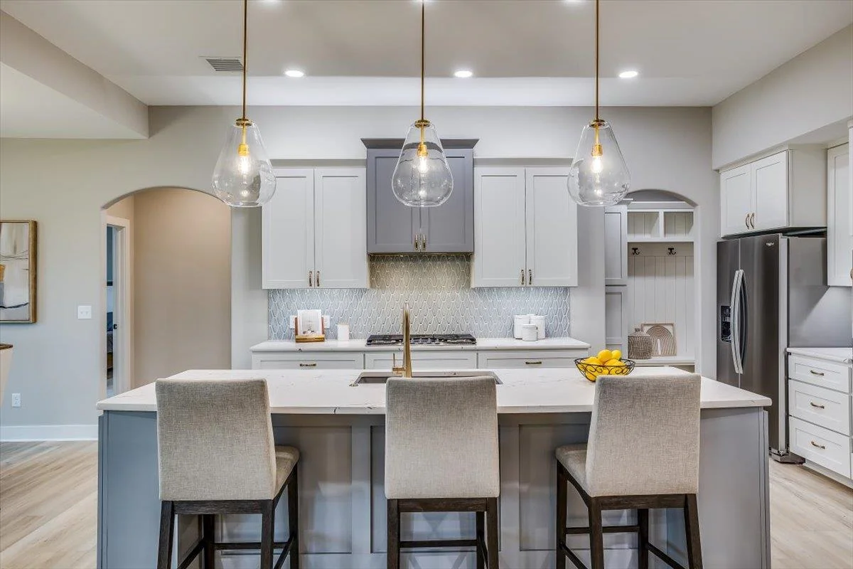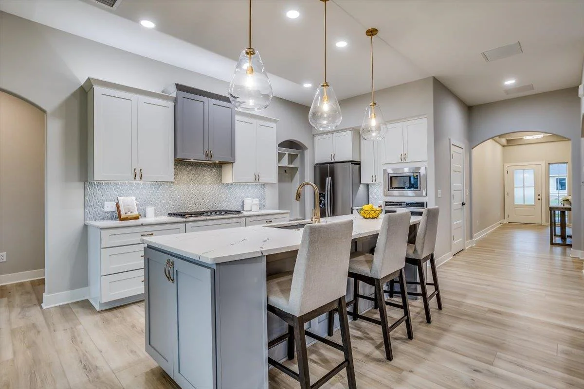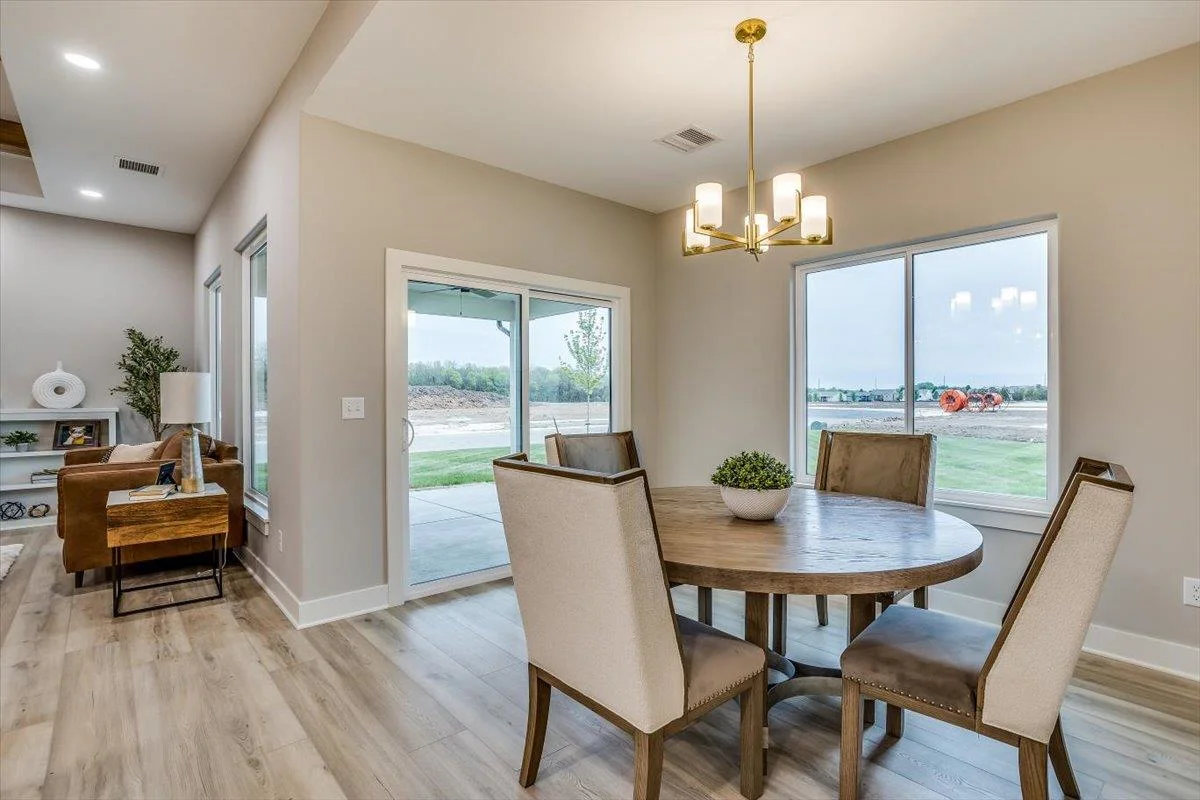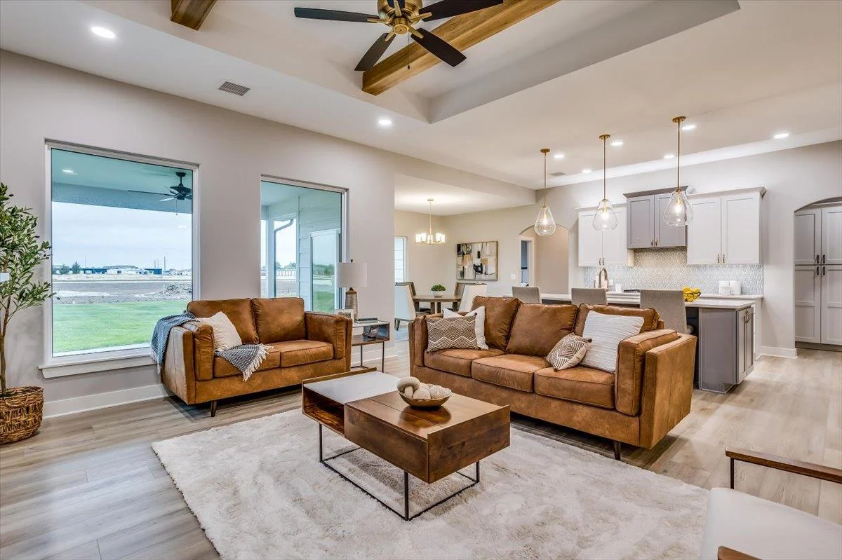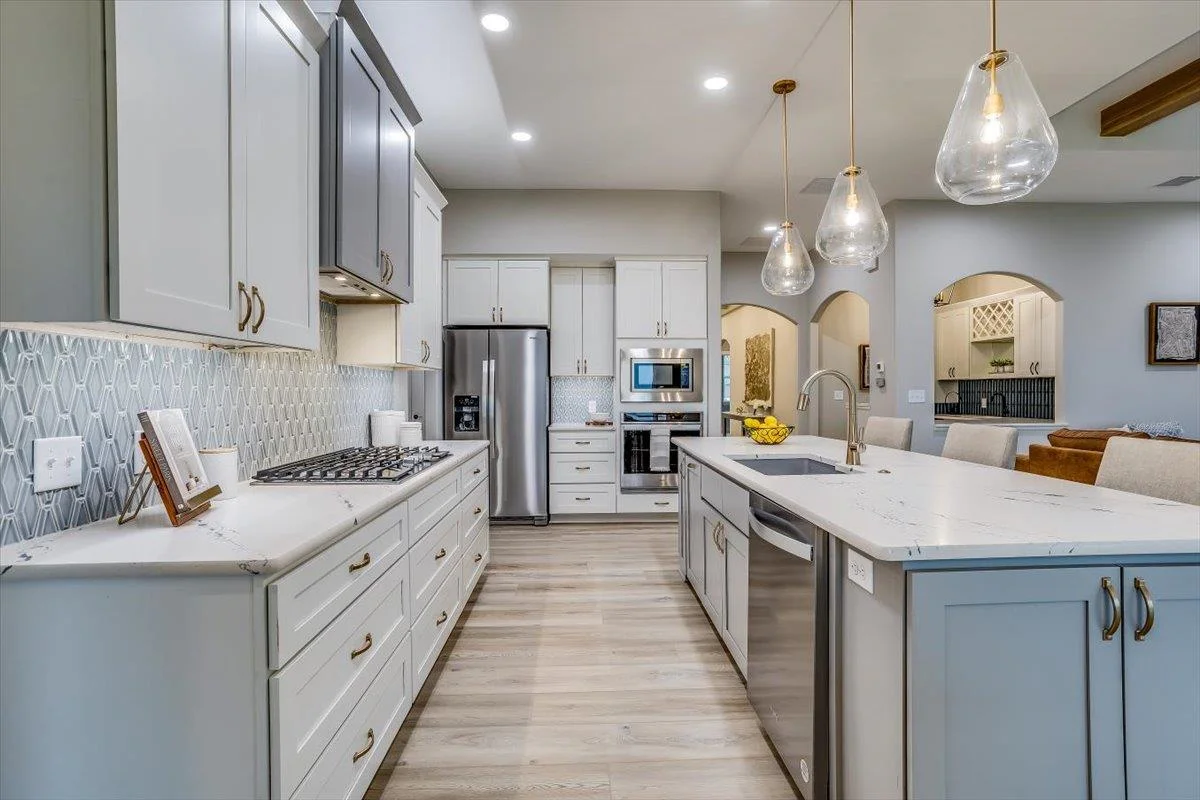 This new Kinsey design features a beautiful wetbar/coffee nook in place of pocket office option. Large living room w/ beamed ceiling, stone fireplace and custom shelving. Spacious kitchen with custom cabinetry, large quartz island and walk-in pantry. The master suite design with accent wall and custom tile shower gives you added convenience with walk through closet to laundry. Additional 3rd car garage gives you more storage. Bedroom closet doubles as a safe room. All information deemed reliable but not guaranteed. Estimated taxes and specials.