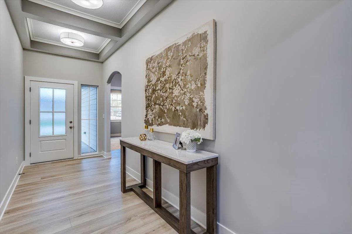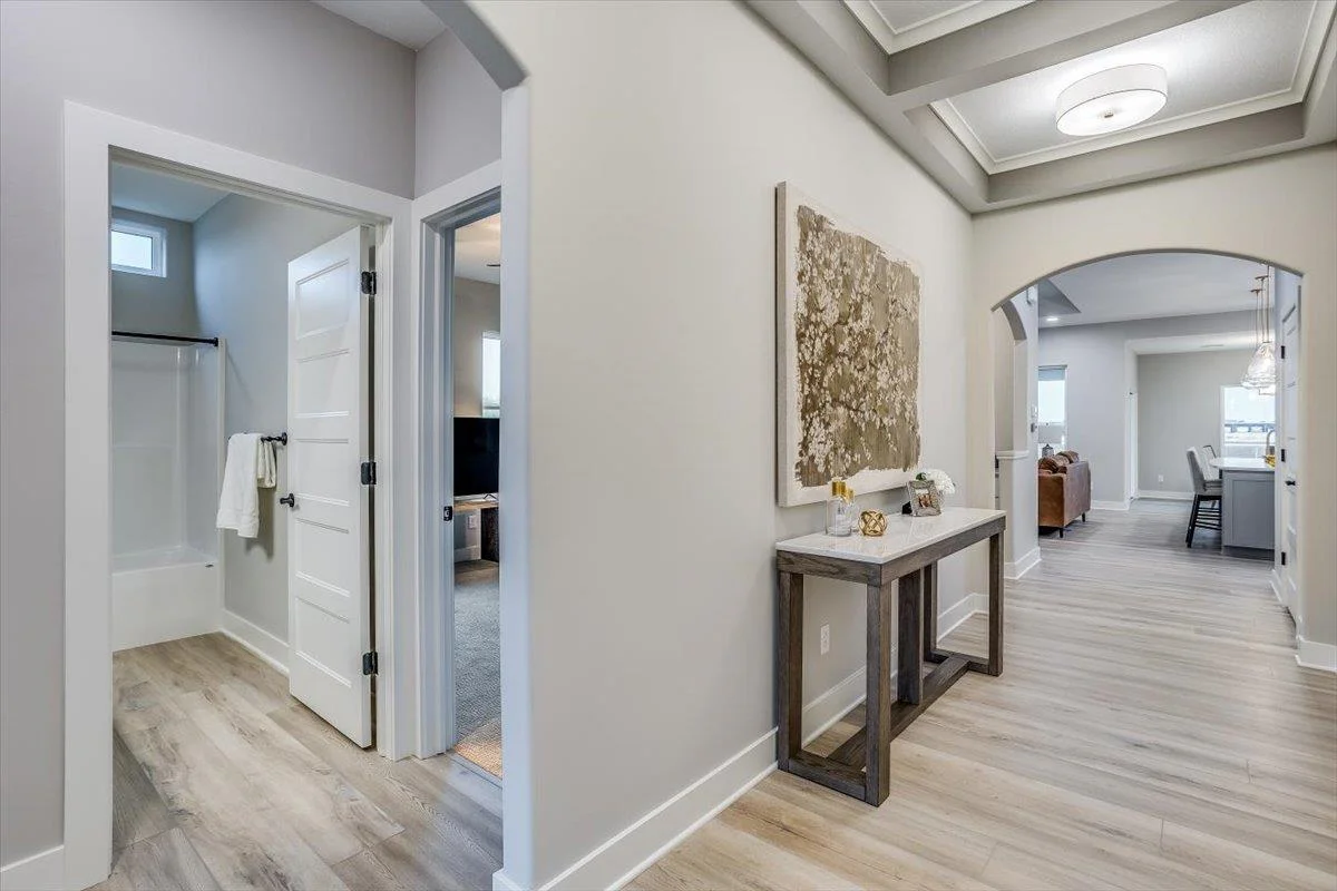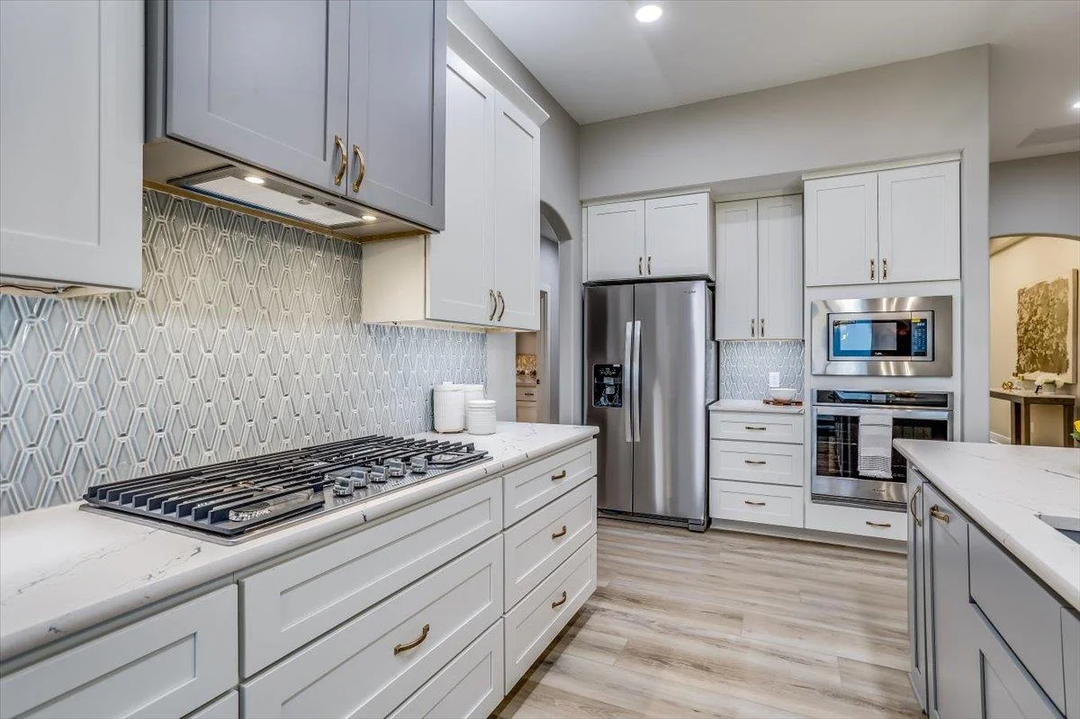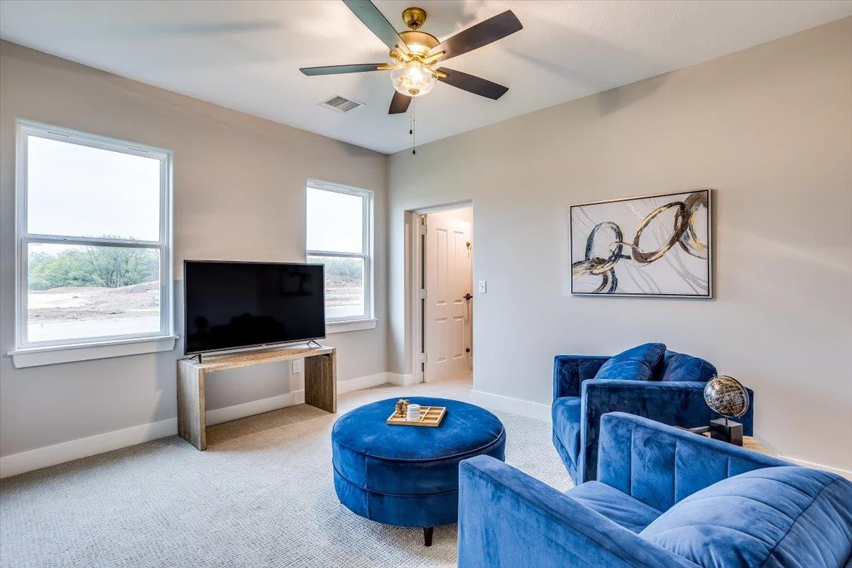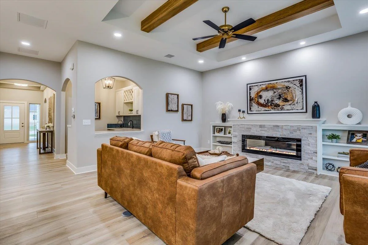 This new Kinsey design features a beautiful wetbar/coffee nook in place of pocket office option. Large living room w/ beamed ceiling, stone fireplace and custom shelving. Spacious kitchen with custom cabinetry, large quartz island and walk-in pantry. The master suite design with accent wall and custom tile shower gives you added convenience with walk through closet to laundry. Additional 3rd car garage gives you more storage. Bedroom closet doubles as a safe room. All information deemed reliable but not guaranteed. Estimated taxes and specials.