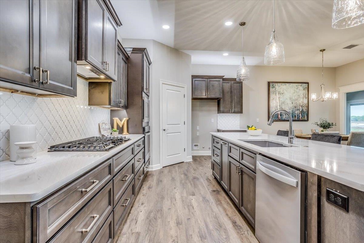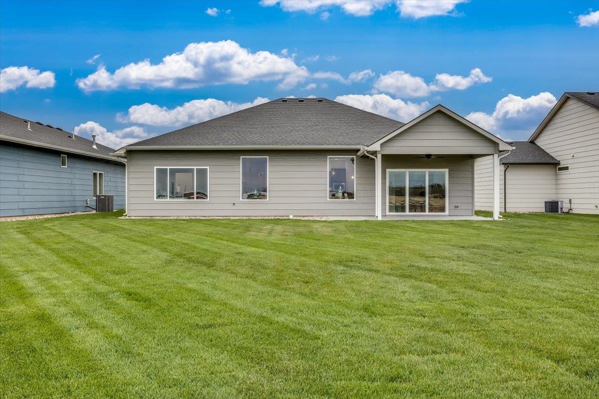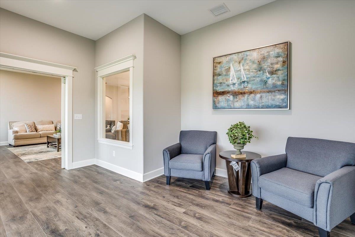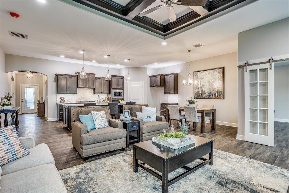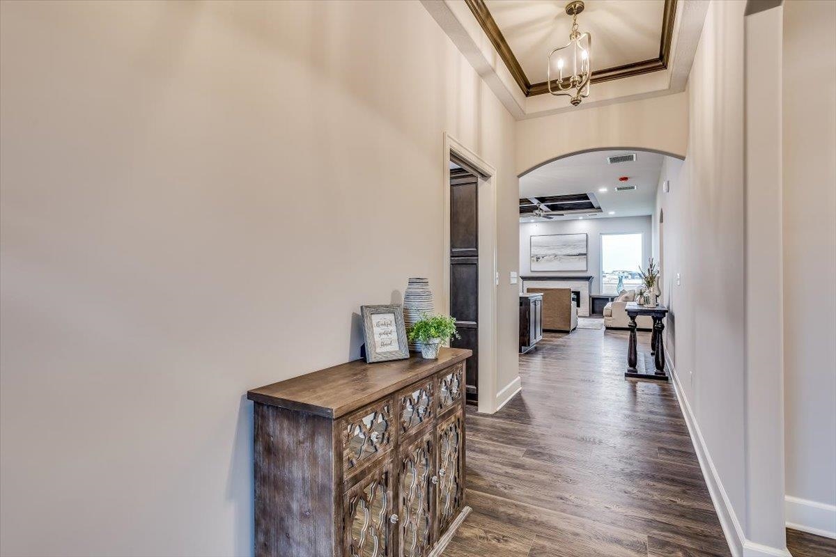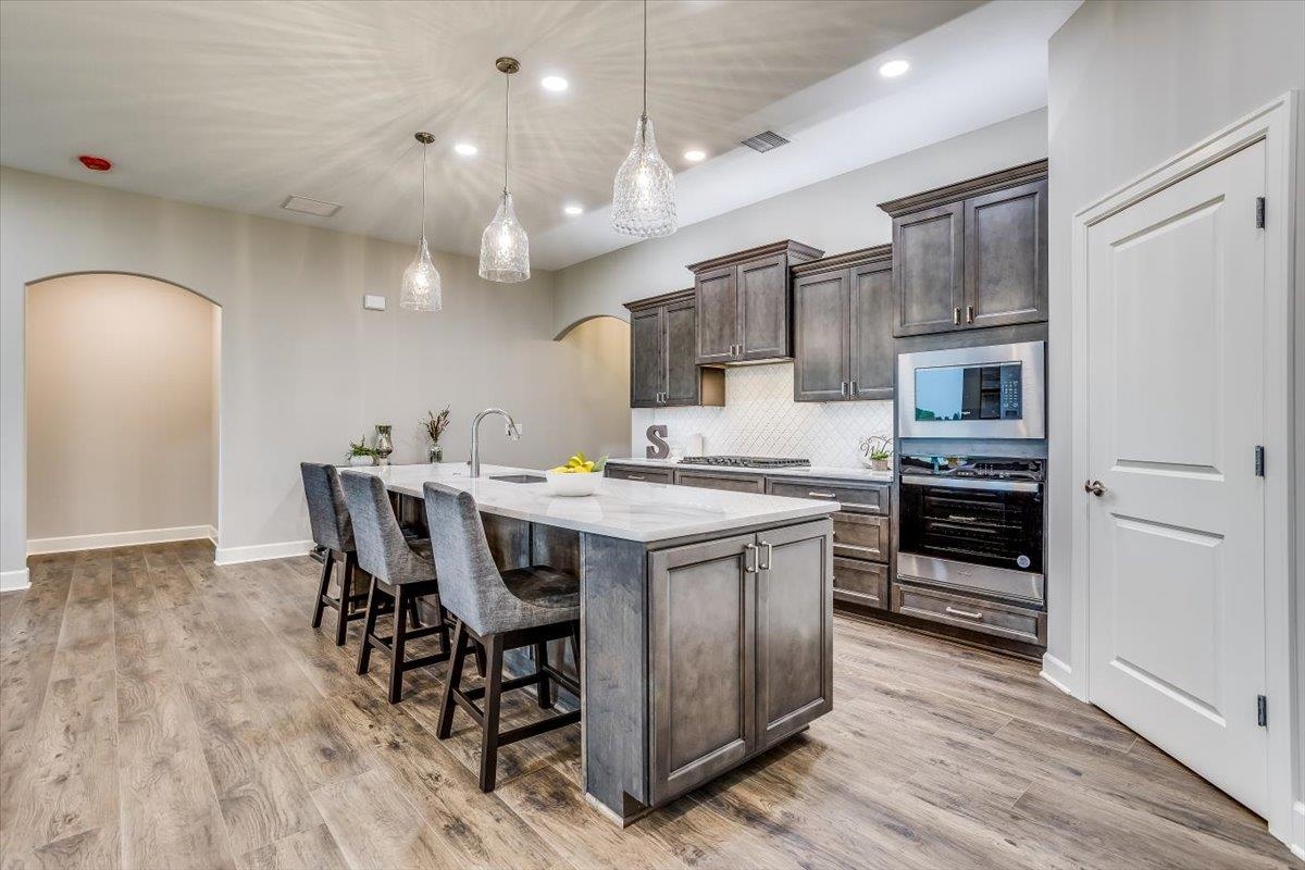 - Description: This model is now Available and Move-in Ready!!! Spacious open Bella floor plan with 3 bedrooms, 2 baths, a sunroom and covered patio looking out on to large lot. The kitchen is perfect for cooking and entertaining with gas cooktop, double ovens and large quartz island. Beautiful finishes throughout this home with rounded corners, luxury vinyl flooring, custom cabinetry and tile, wood beamed ceiling in living room and a linear fireplace with stone detail. Master suite with large tiled shower, double vanity and walk in closet. Large laundry with natural light and a sink. Lots of storage or work area in oversized 2 1/2 garage with safe room! Estimated taxes and specials. All information is deemed reliable but not guaranteed. Low HOA Dues of $150/month cover lawn care; mowing, fertilizing, sprinkler, irrigation and snow removal when required.