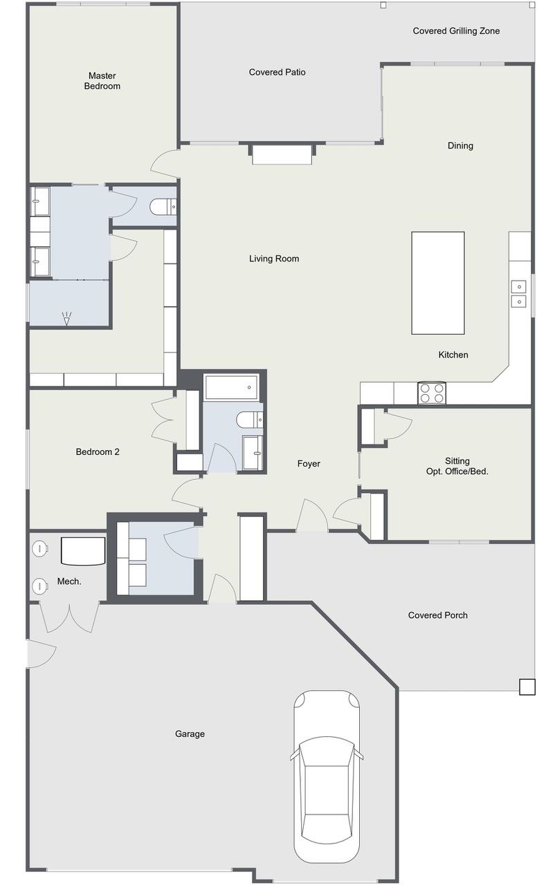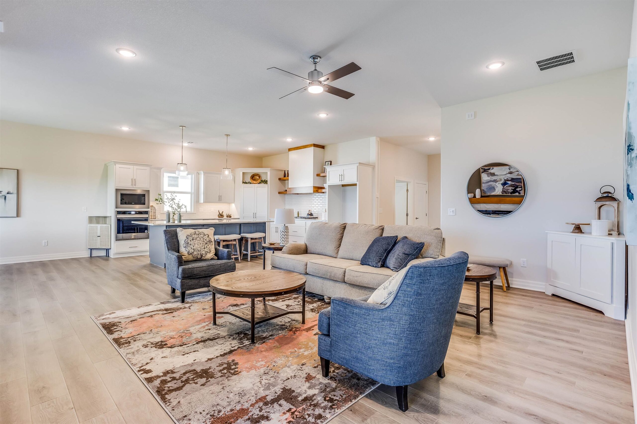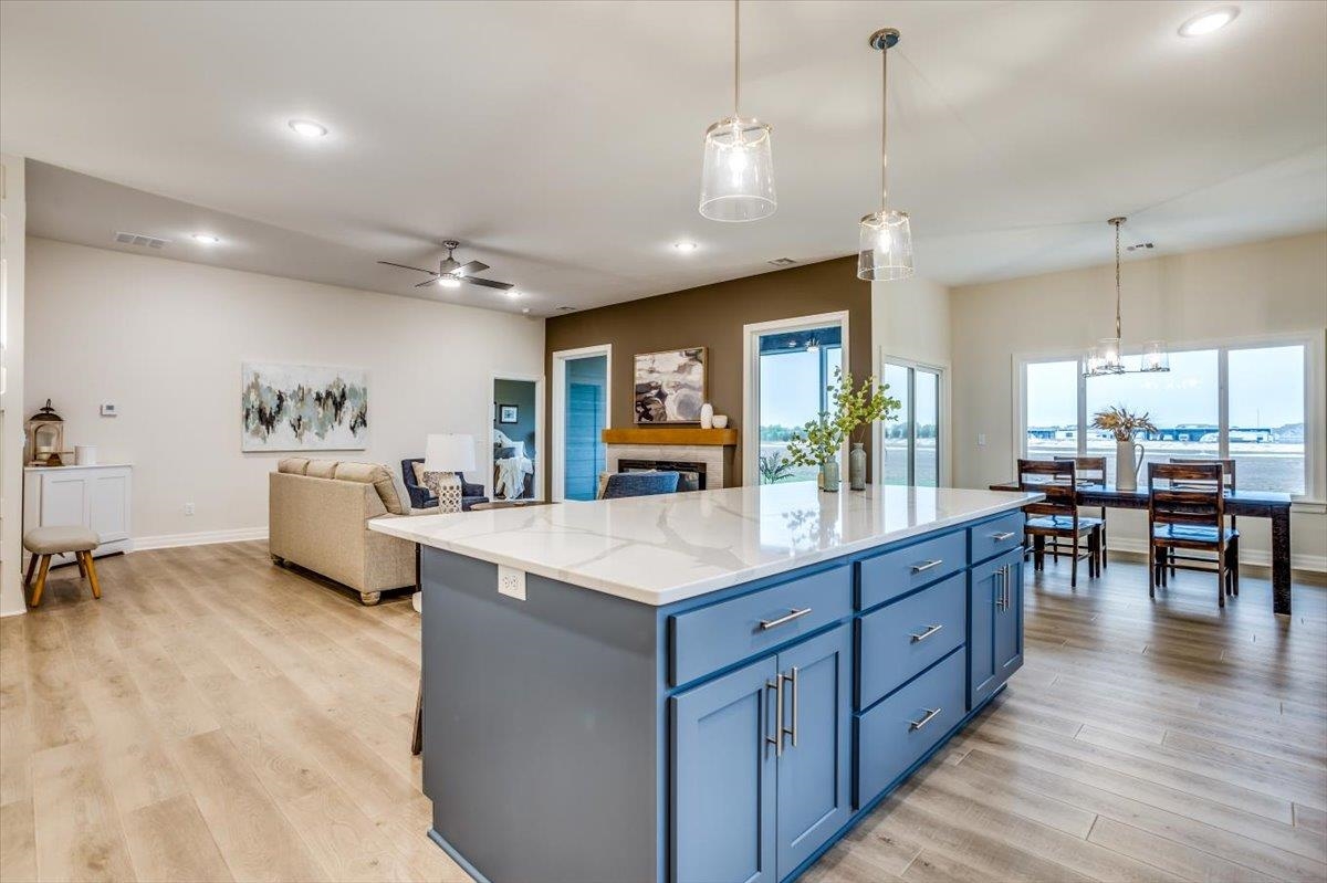 - Description: This new Capri model by Lies-Bugner Construction gives you flexibility in living space inside and out. A beautiful, accented entry invites you into this spacious open floor plan with lots of natural light. Large living room with tiled fireplace. The kitchen design with sink free large island is perfect for workspace and entertaining. The flex bedroom/office features a murphy bed with custom shelving. Master suite complete with accent wall, custom tile shower and impressive walk-in closet. Enjoy outdoor living on large covered front patio and covered screen porch. Laundry room doubles as a safe room. This model home is not for sale. Estimated taxes and specials. All information deemed reliable but not guaranteed.