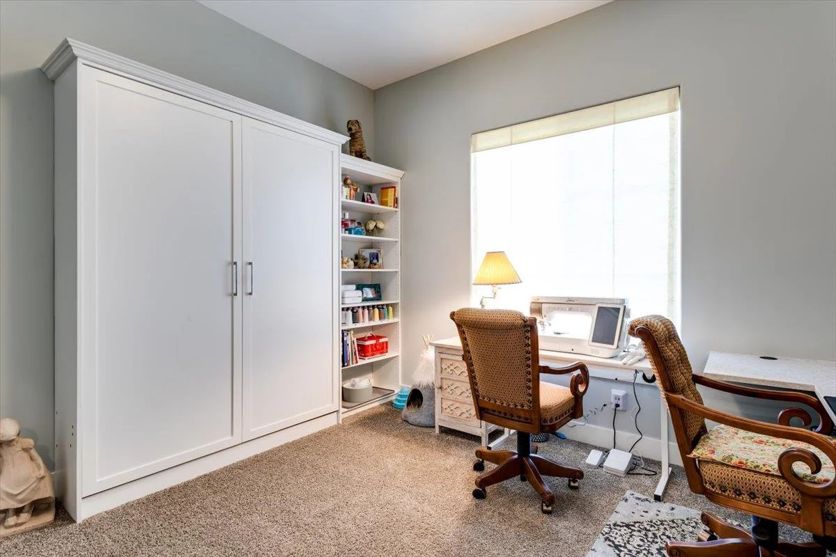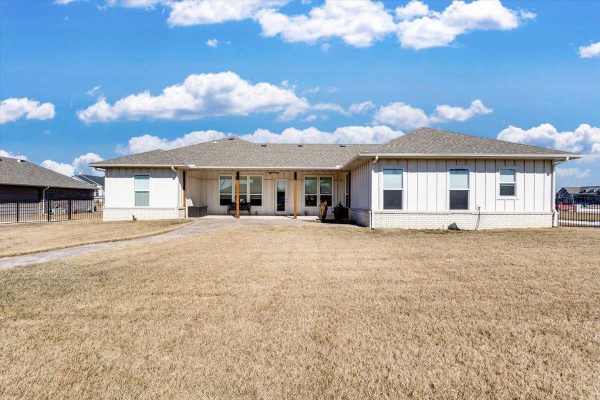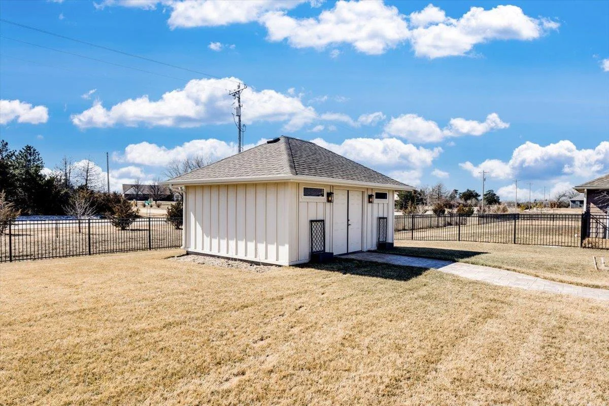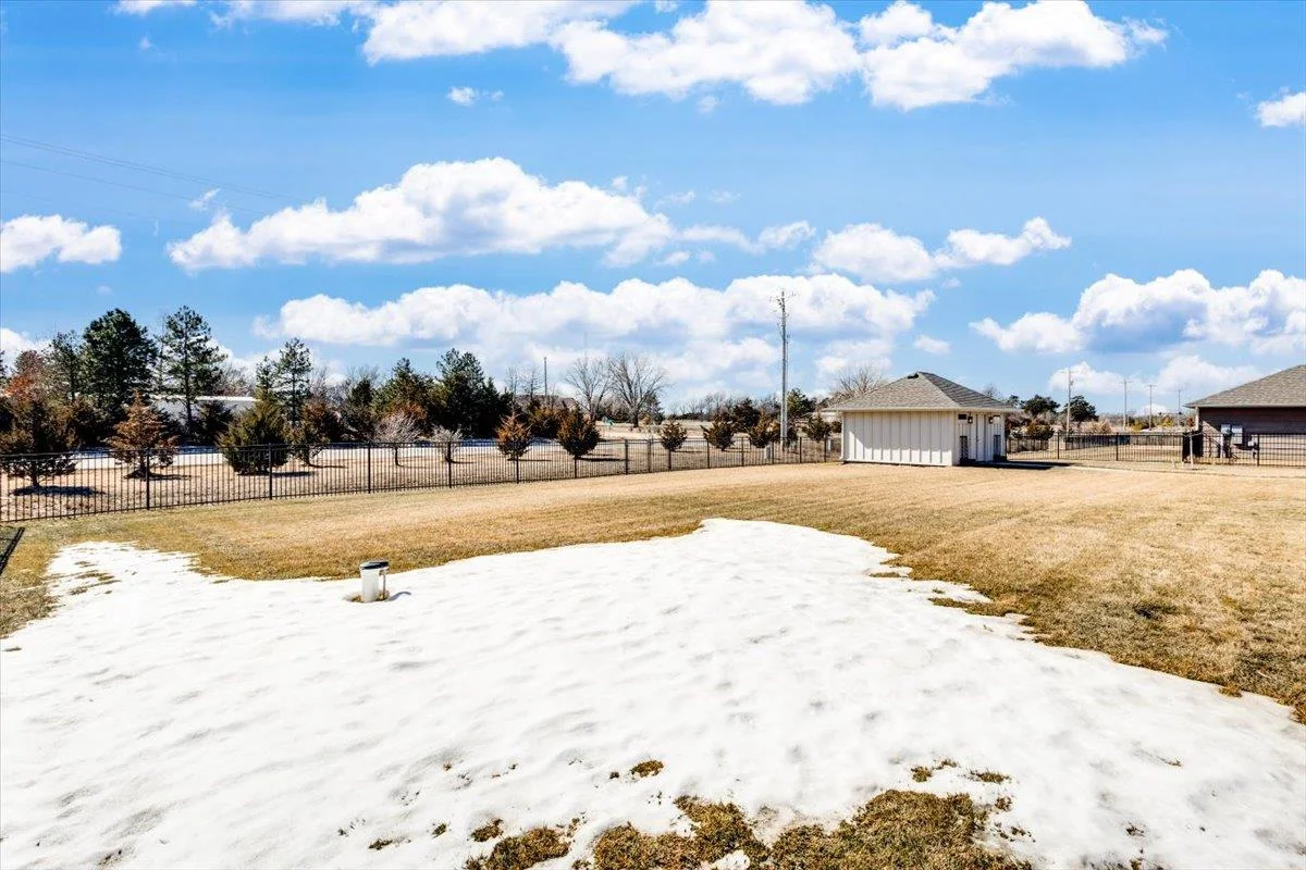 Charming 3-Bedroom Home with Upgrades Galore! Nestled on nearly half an acre, this beautifully maintained 3-bedroom, 2.5-bathroom home is packed with upgrades and thoughtful details. The spacious layout offers comfort and functionality, featuring custom built cabinets in the living area, built-in Murphy bed, and a custom built desk, perfect for maximizing space. The kitchen shines with upgraded appliances, while the Culligan water softener ensures top-tier water quality. Step outside to enjoy the stunning stamped concrete covered patio, enclosed by a wrought iron fence. Enjoy ultimate privacy as you have no neighbors in your backyard. Additional storage is no issue with the included 15x20 storage building and garage cabinets. Home also includes a safe room, huge walk-in closet, French doors leading to the office, and long hallways. Plus, all window treatments stay! Don't miss out on this move-in-ready gem—schedule your showing today!