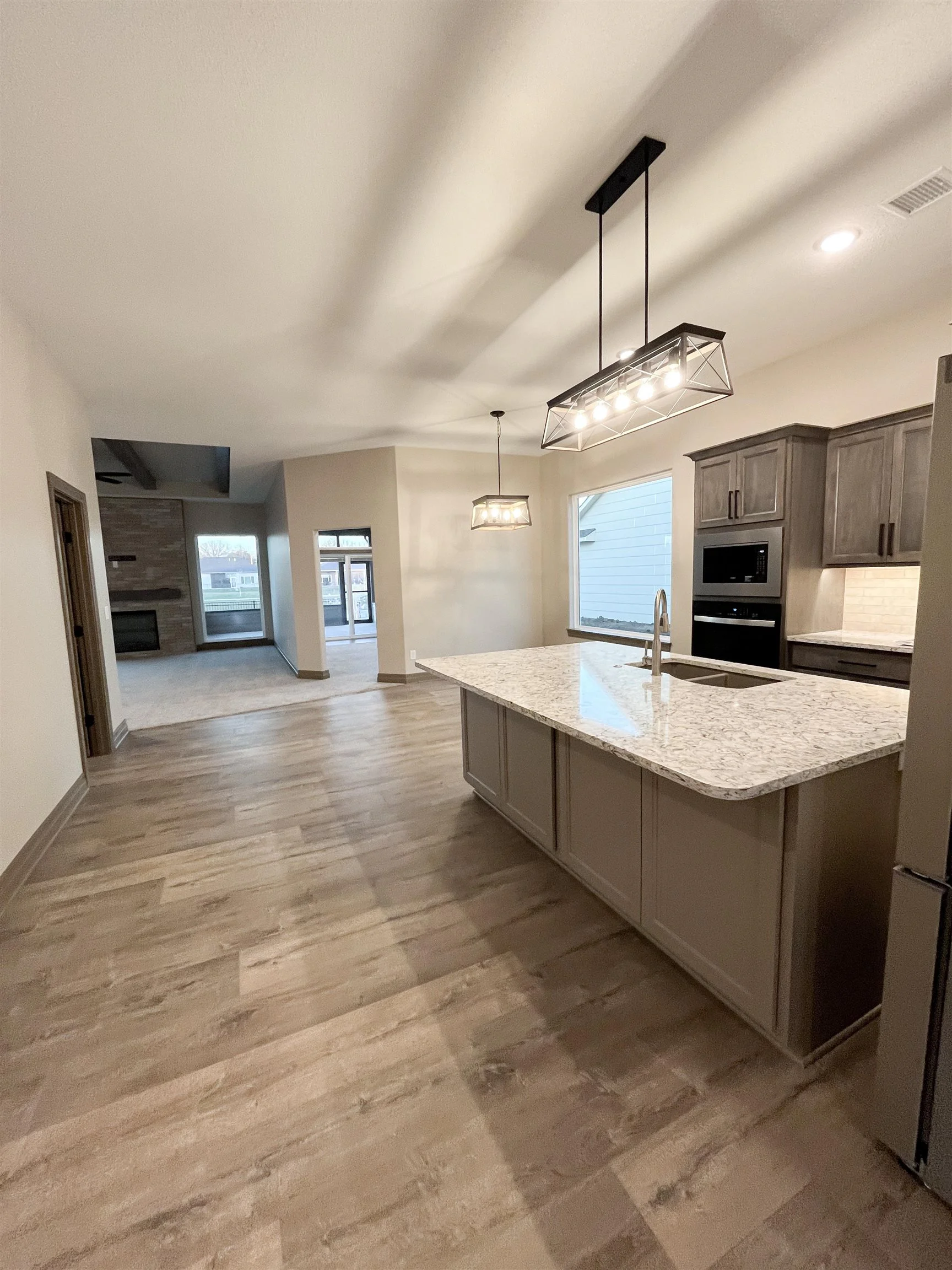 This full custom 3 bedroom, 2-1/2 bath home built by Lies-Bugner Homes has lake views with a beautiful sunroom and covered screened patio. Kitchen with large island, custom cabinets and walk-in pantry. Large family room with fireplace and beamed ceiling. Spacious master suite with custom tile shower and large walk-in closet. Large laundry doubles as safe room. Oversized 3 car garage with ample storage! This home is under construction and information may change without notice. Estimated taxes and specials. All information deemed reliable but not guaranteed.