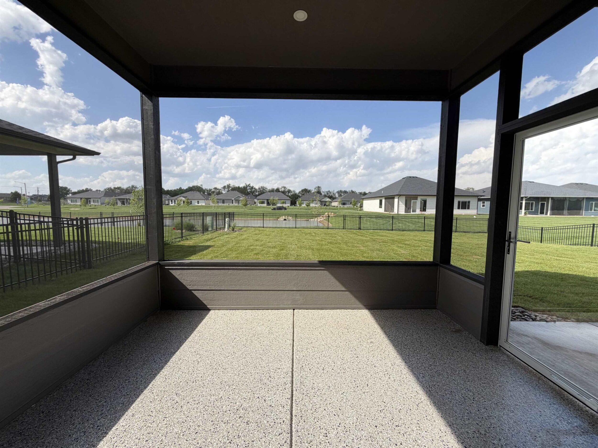 A custom zero entry home with inviting sunroom with glass barn doors extends living space off living room. Kitchen with large quartz island, custom cabinetry and enlarged walk in pantry. Master bath with quartz countertop, tile shower and large closet with seasonal storage. Spacious closets throughout home with front bedroom closet doubling as a safe room. The large oversized 2 car garage provides space for storage or workshop. A 12x12 covered screened patio extends beyond the dining room for outdoor living. Garage with epoxy floor. Estimated taxes and specials. All information deemed reliable but not guaranteed.