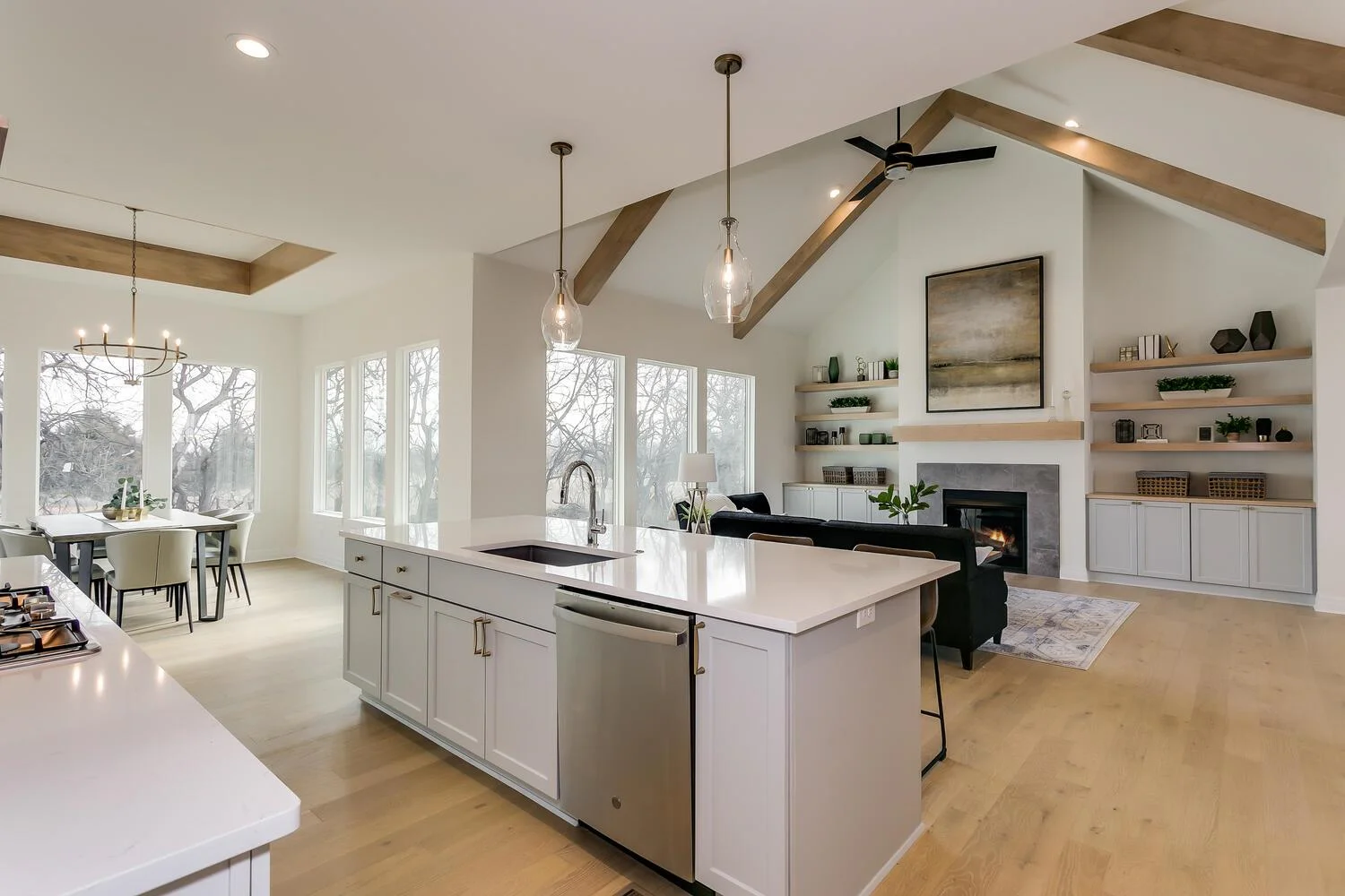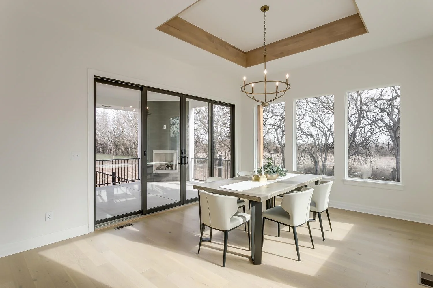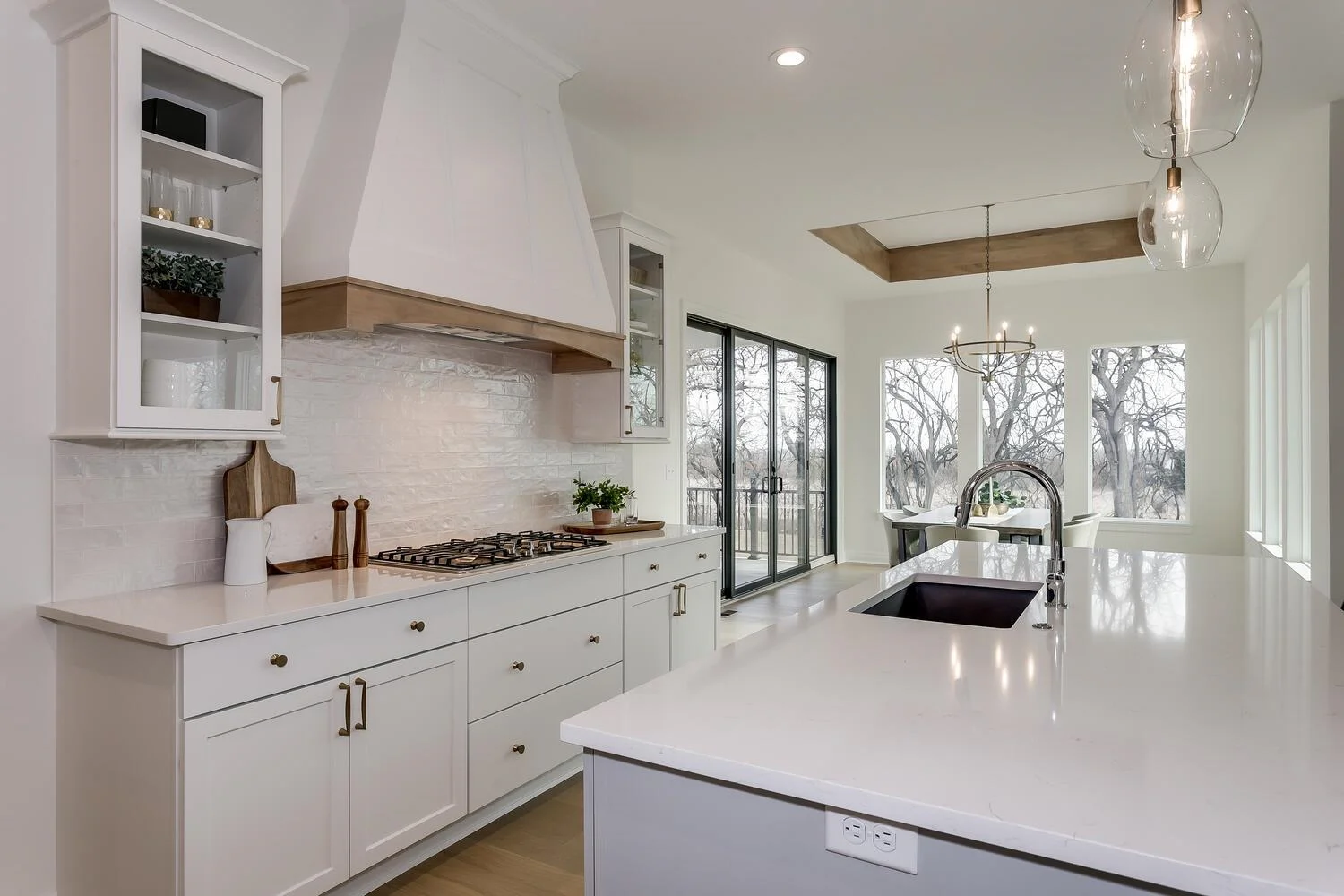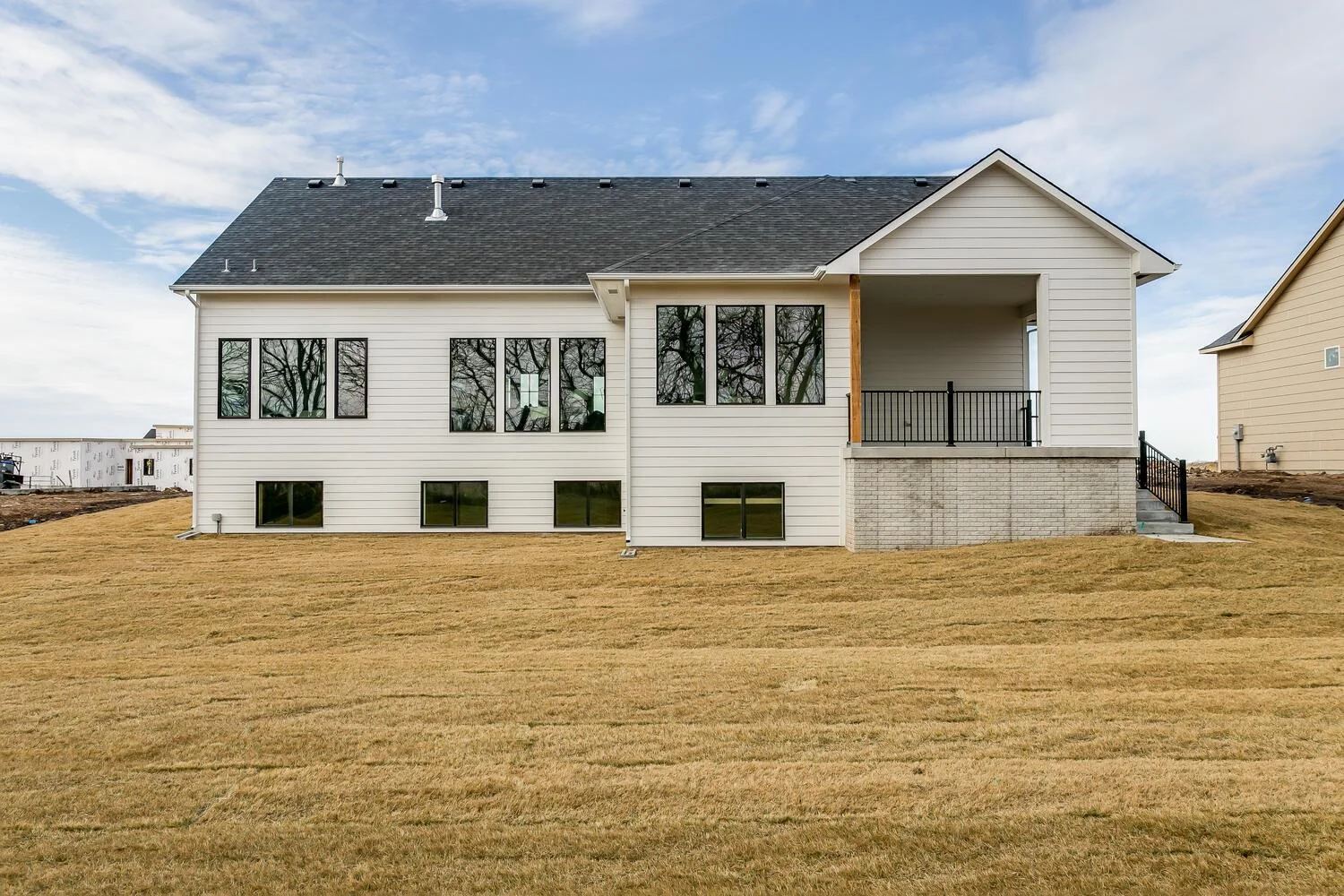 Welcome home to this luxury home built by one of Wichita's best, Nies Homes. Nestled on a wooded lot giving tons of privacy as you enjoy the covered patio featuring a fireplace. With 5 bedrooms, 3.5 bathrooms, 3 car garage and over 3,400 square feet. The bright, open floor plan features tall vaulted ceilings with beams and floor to ceiling windows throughout letting in tons of natural light. The open kitchen features ample cabinet and countertop space, a large island, and a walk-in pantry. The master suite includes a spacious closet, dual sinks, and a walk-in shower. If you like to entertain then you will love the lower level basement area as it comes equipped with a full wet bar and the spacious family room is perfect for game tables. Lastly, you'll love the covered patio area which overlooks the trees, perfect place to enjoy a cup of coffee or glass of wine.