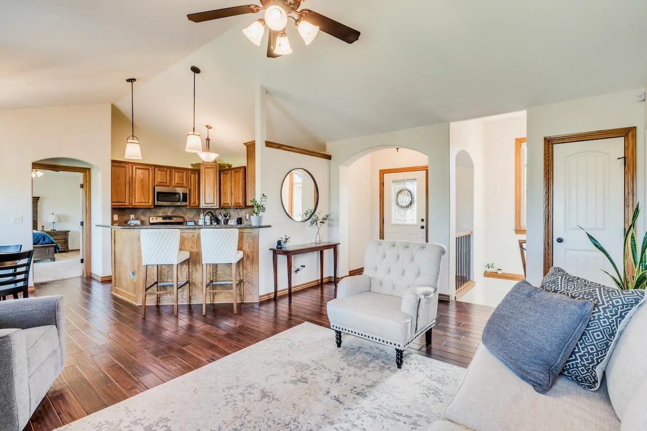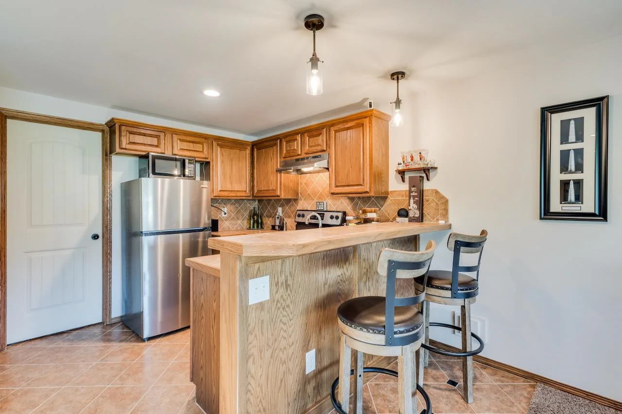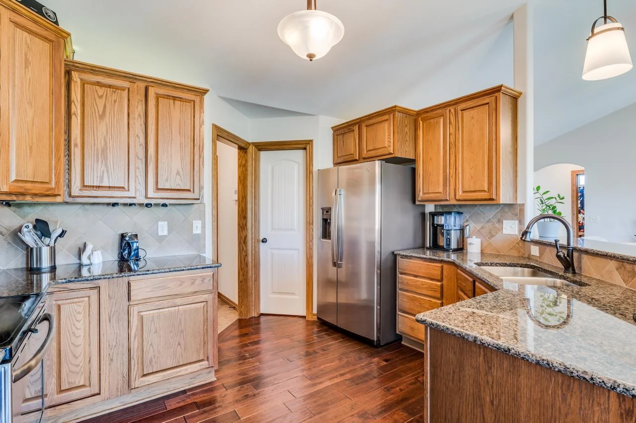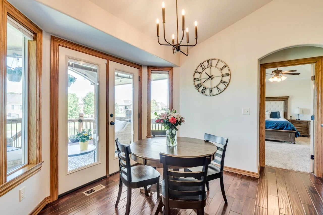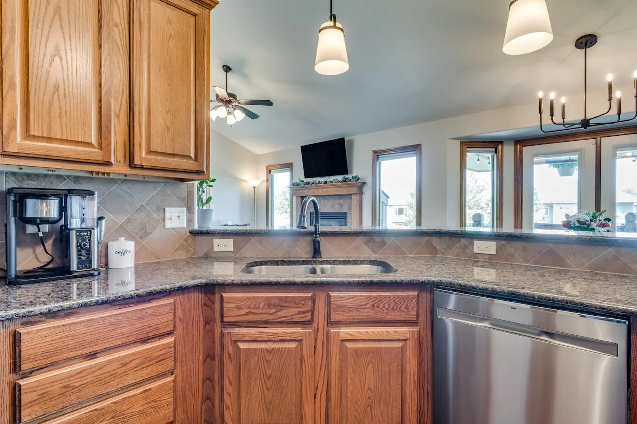 Lakefront living at its finest! This beautifully maintained home sits on a stunning, picturesque lot with breathtaking water views and a manicured yard framed by mature trees and lush landscaping. The arched foyer welcomes you into the spacious living room with wood floors, vaulted ceilings, a cozy gas fireplace, and large picture windows overlooking the lake. The kitchen is equally impressive—vaulted ceilings, granite countertops, an eating bar, walk-in pantry, and generous cabinetry make it perfect for both everyday living and entertaining. A spacious dining area flows seamlessly to a covered, composite deck with stairs leading to a large patio—multiple spaces to unwind or host guests with serene lake views as your backdrop. The luxurious Master Suite offers a private retreat with two closets, dual granite-topped vanity, a soaking tub, and separate shower. Smart design continues with a laundry room conveniently connected to the Master Closet and family entry from the garage. The fully finished basement expands your living space with a large family room, second fireplace, and a full kitchenette/wet bar complete with a full-size fridge, range/oven, and vent hood. Two more large bedrooms, a full bath, and ample storage complete the lower level. A true gem in a sought-after lakefront setting—this home has it all! Some information may be estimated and is not guaranteed. Please verify schools with USD 259.