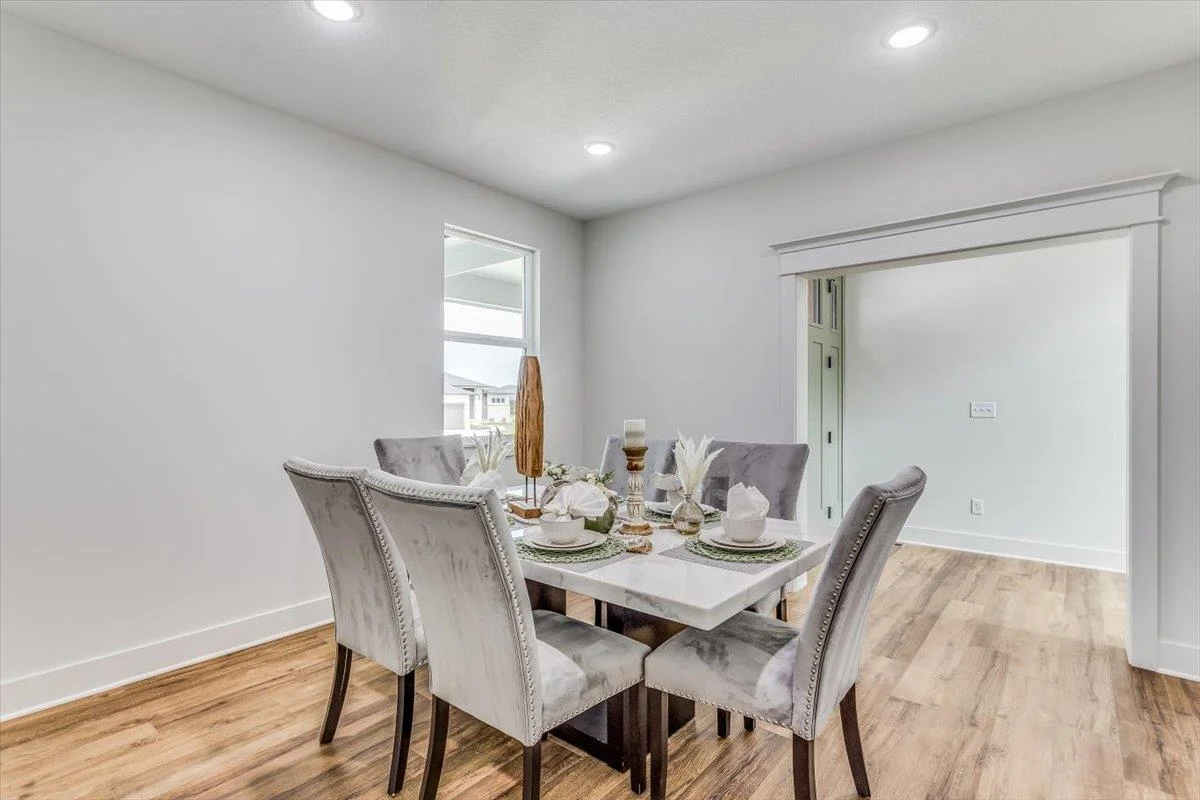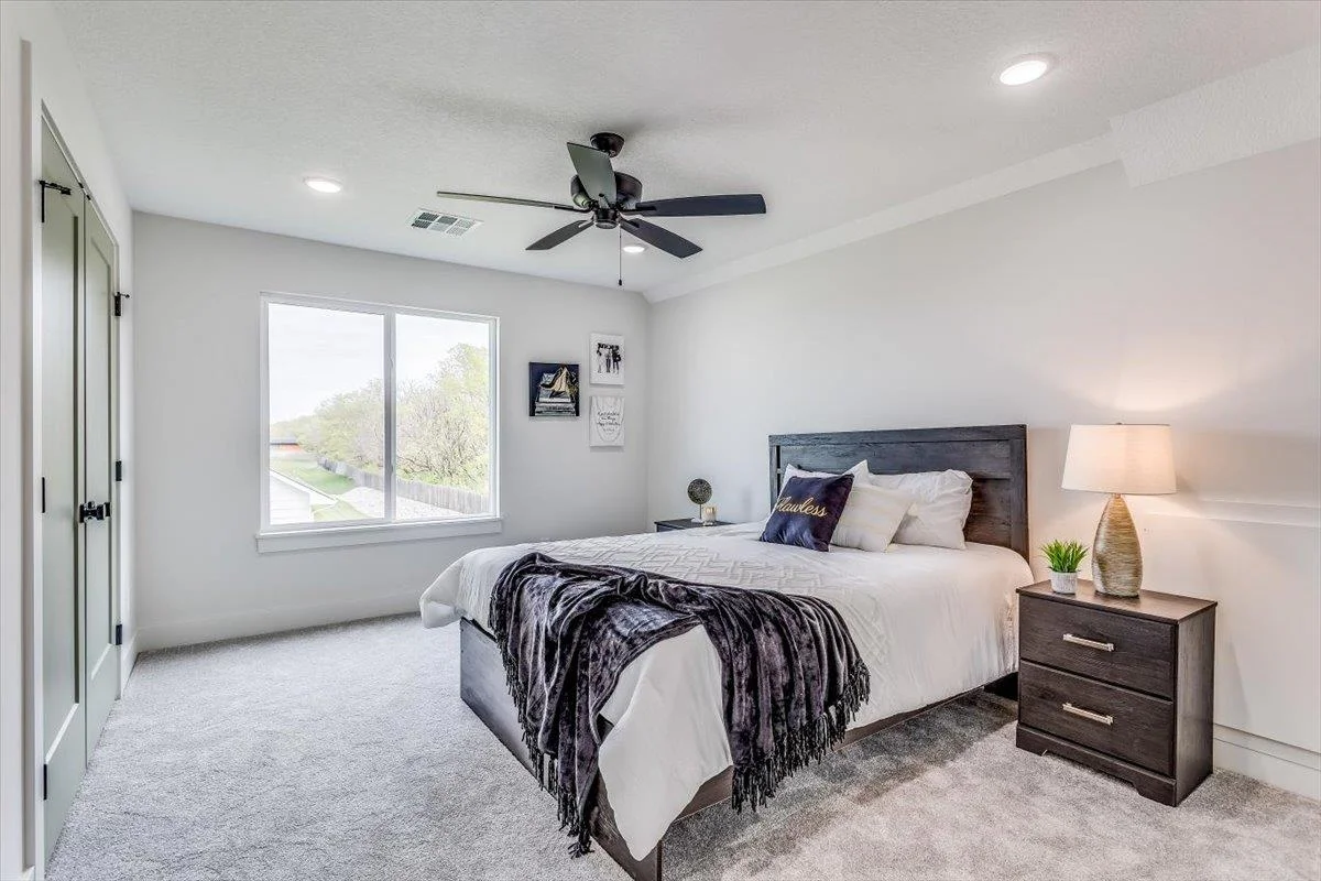 The popular Teakwood floor plan is back. This stunning two-story home features 5 bedrooms, 3.5 bathrooms and over 3300 square feet. The details on this home are gorgeous including the woodwork throughout. The home features an abundance of windows that bring in tons of natural light. Features include a spacious kitchen with a walk-in pantry, formal dining room, big beautiful windows throughout, a master suite with a large full tile walk-in shower and soaker tub, large wet bar, spacious family room, and so much more. This home is situated on a cul-de-sac and backs to a hedge row with almost 1/2 an acre to sprawl out on.