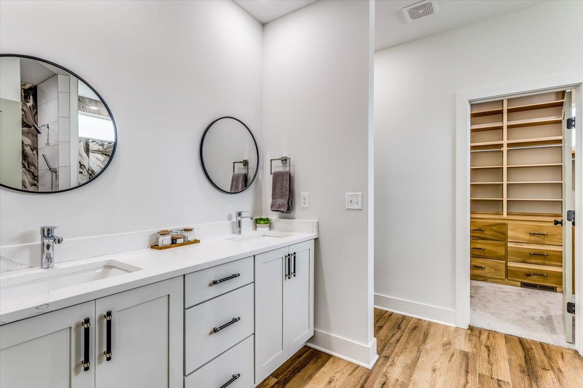 - Description: The popular Teakwood floor plan is back. This stunning two-story home features 5 bedrooms, 3.5 bathrooms and over 3300 square feet. The details on this home are gorgeous including the woodwork throughout. The home features an abundance of windows that bring in tons of natural light. Features include a spacious kitchen with a walk-in pantry, formal dining room, big beautiful windows throughout, a master suite with a large full tile walk-in shower and soaker tub, large wet bar, spacious family room, and so much more. This home is situated on a cul-de-sac and backs to a hedge row with almost 1/2 an acre to sprawl out on.
