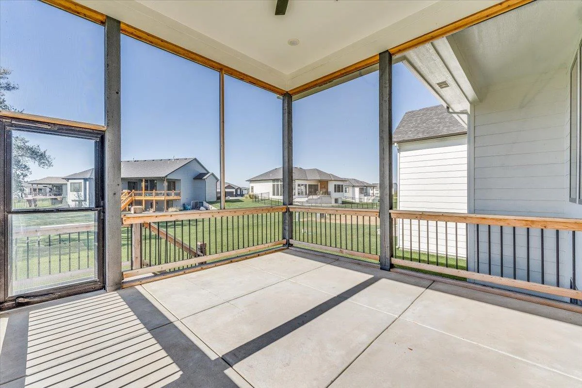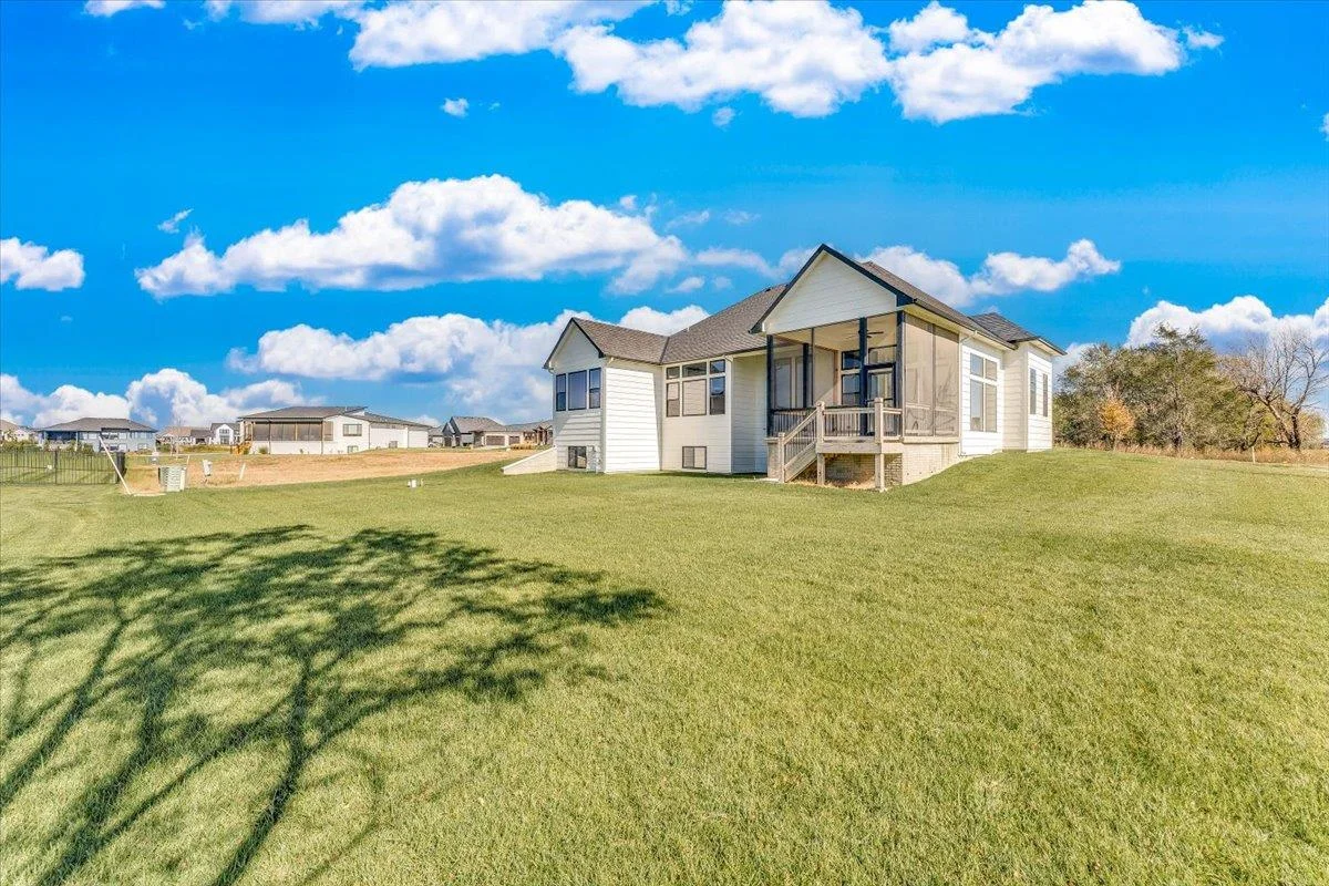 Welcome home to this gorgeous custom built home located in the highly sought after Sandcrest community. Located on a large .37 acre corner lot with lake views. This open floor plan features 5 bedrooms, 3 bathrooms, and over 2900 square feet. The spacious kitchen is the ideal space to host gatherings as it opens to the living and dining areas. The kitchen features quartz countertops, ample cabinet space, and a walk-in pantry. The flex room leads out the the large covered screened in patio bringing outdoor living inside, perfect for the spring and fall months. The master suite includes a large tile shower, dual sinks, and a spacious walk-in closet that is connected to the laundry room. The basement features a large family room with a walk-up bar, 2 bedrooms, and full bath. Enjoy the two neighborhood pools, playgrounds, lake access for boating or fishing, pickle ball court, or rent the clubhouse for your next event in this beautiful community. Located within the Maize South School District.