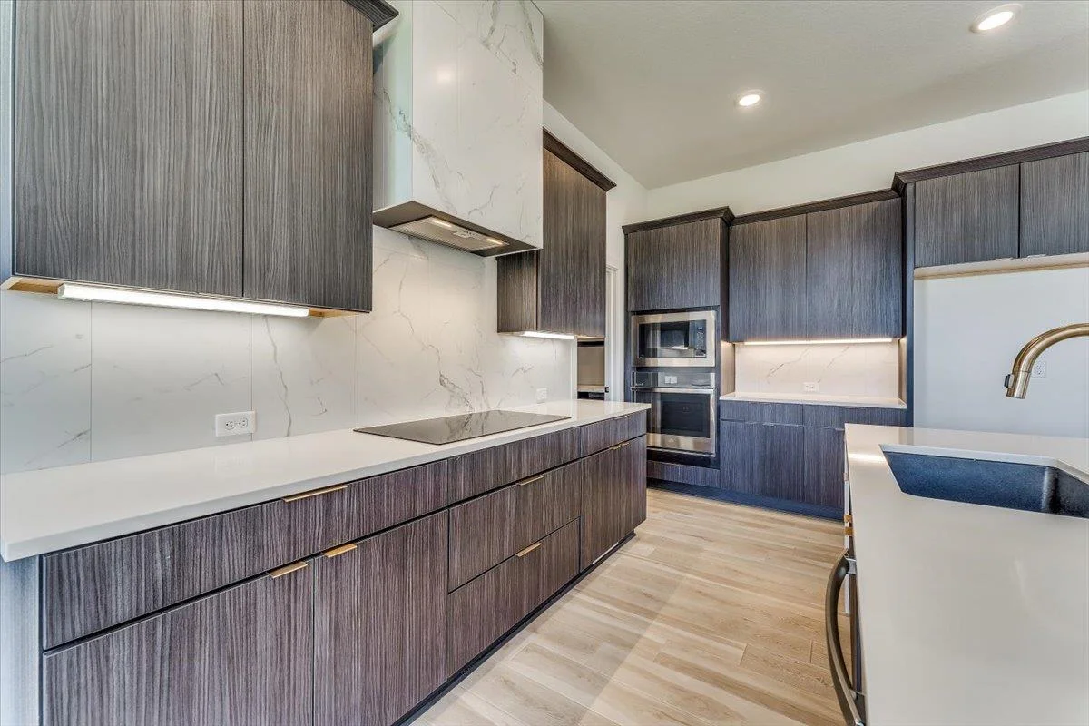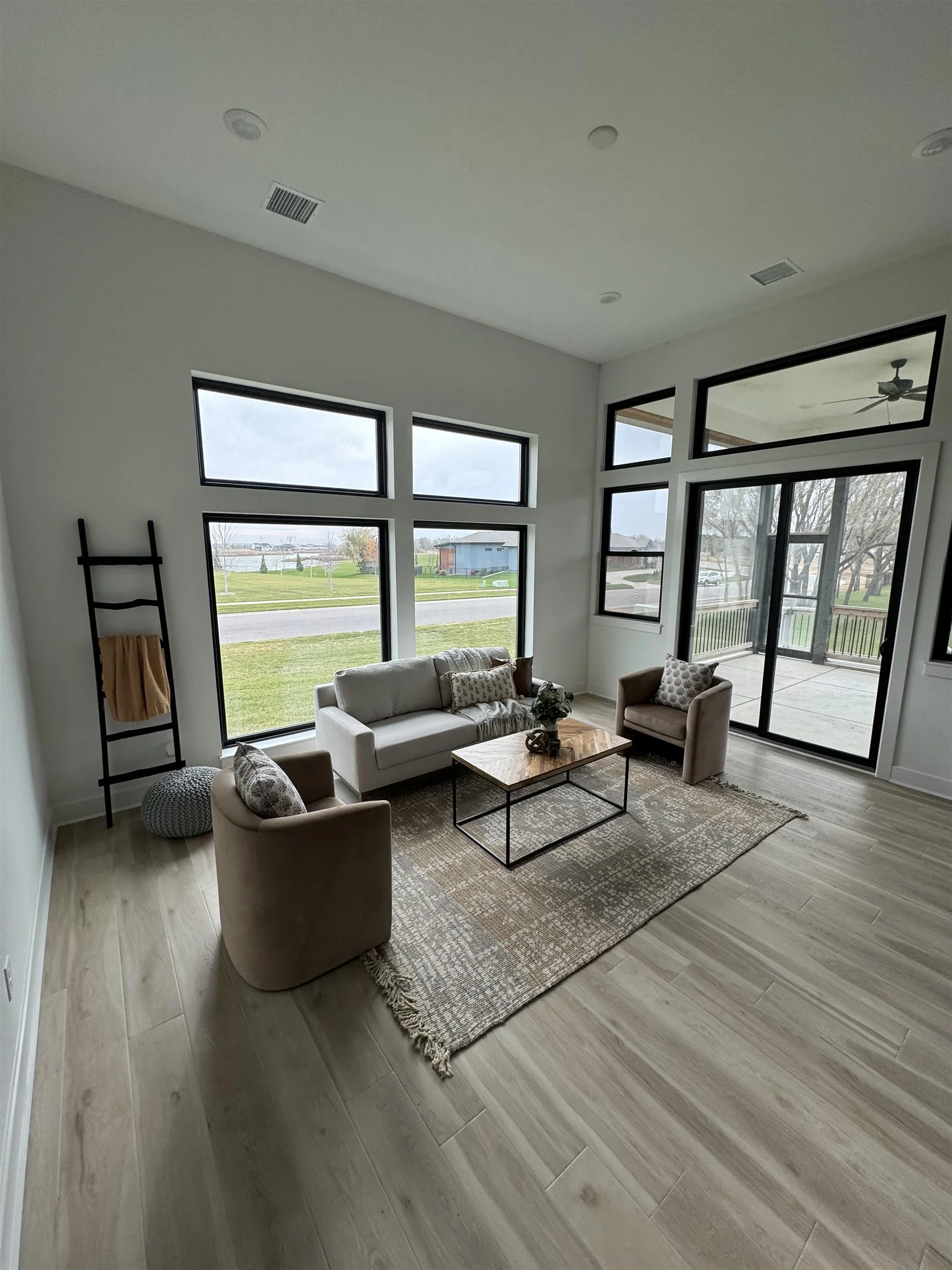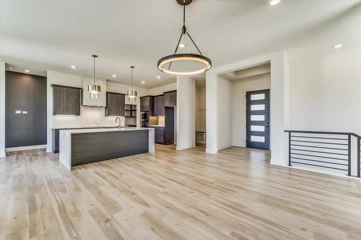 Gorgeous home located in the highly sought after Sandcrest community. Located on a large .37 acre corner lot with lake views. This open floor plan features 5 bedrooms, 3 bathrooms, and over 2900 square feet. The spacious kitchen is the ideal space to host gatherings as it opens to the living and dining areas. The kitchen features quartz countertops, ample cabinet space and a walk-in pantry. The flex room leads out the the large covered screened in patio bringing outdoor living inside, perfect for the spring and fall months. The master suite includes a large tile shower, dual sinks, and a spacious walk-in closet that is connected to the laundry room. The basement features a large family room with a walk-up bar, 2 bedrooms, and full bath. Enjoy the two neighborhood pools, playgrounds, lake access for boating or fishing, play pickle ball, or rent the clubhouse for your next event in this beautiful community.