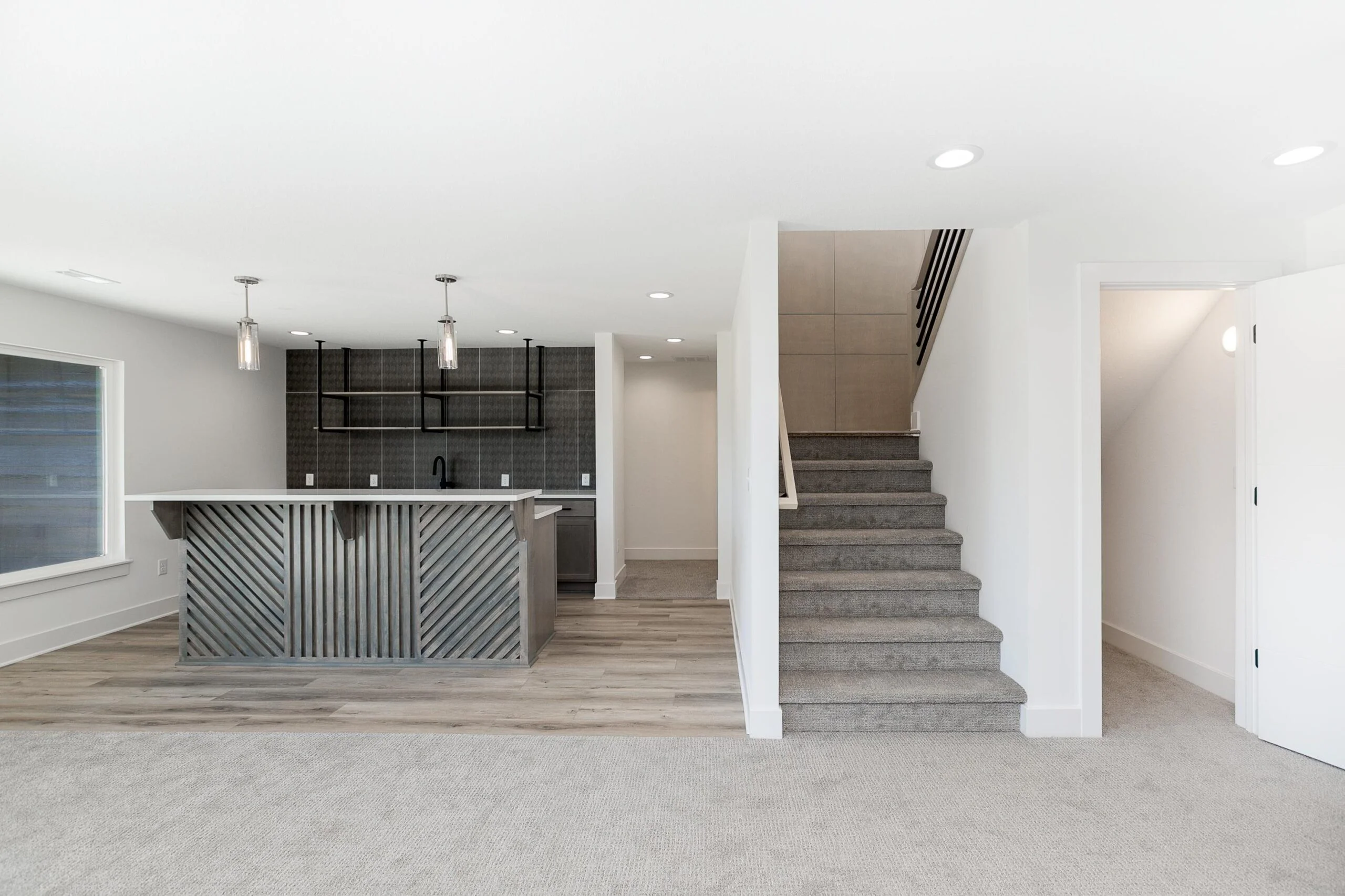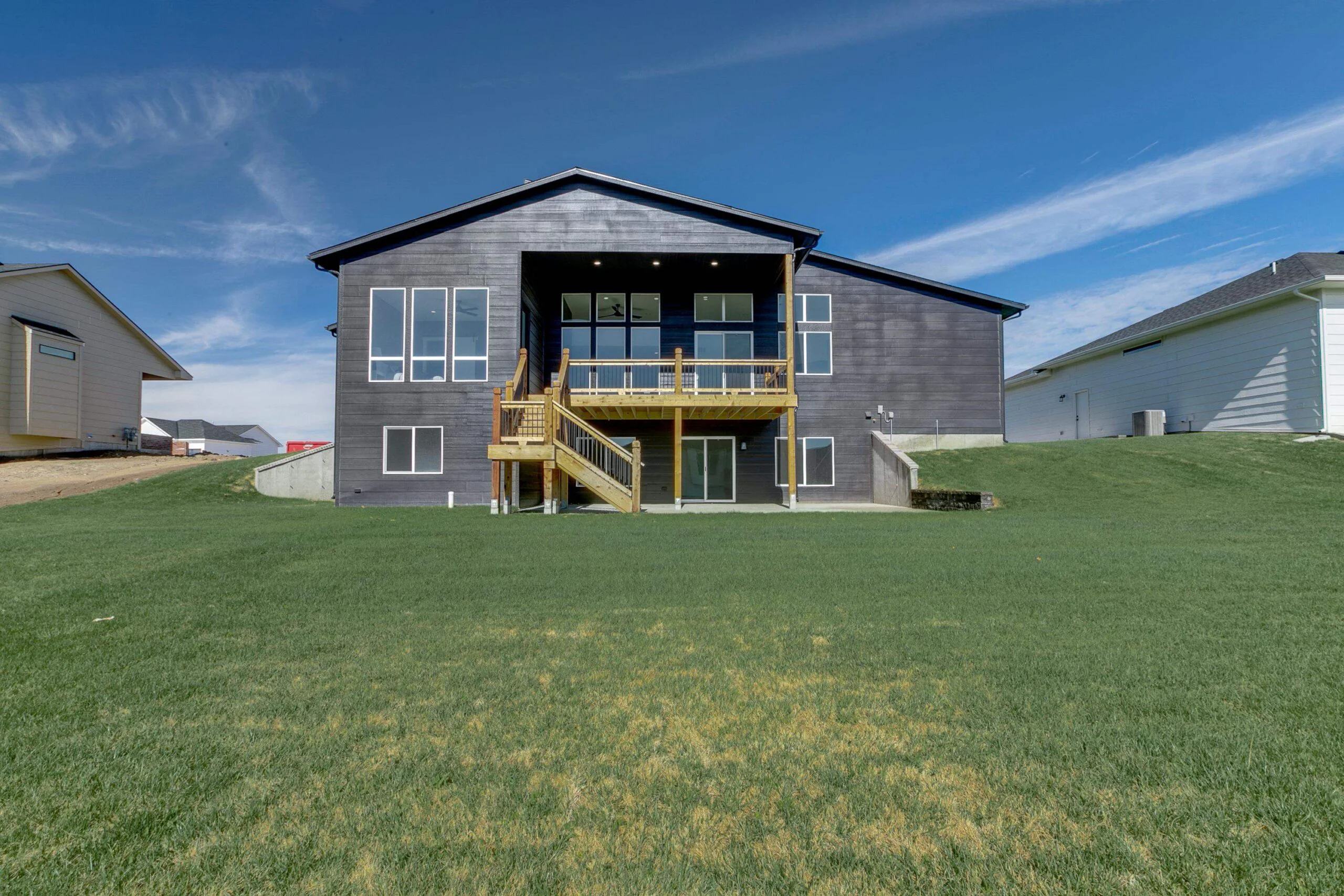 The Whitney floor plan by T.W. Custom Homes features 5 bedrooms, 3 bathrooms, 1 half bathroom, and over 3400 square feet. The sleek and modern front elevation flows from the outside in on this gorgeous home. With feature walls throughout and a floor to ceiling fireplace making a huge statement in the main living area. The master suite comes equipped with access to the large covered deck, a massive tiled shower with multiple rain shower heads, and a soaker tub. The bar area in the basement is the perfect entertaining spot to watch your favorite teams play. Enjoy your morning coffee on the spacious covered deck. Another well done home by T.W. Custom Homes.