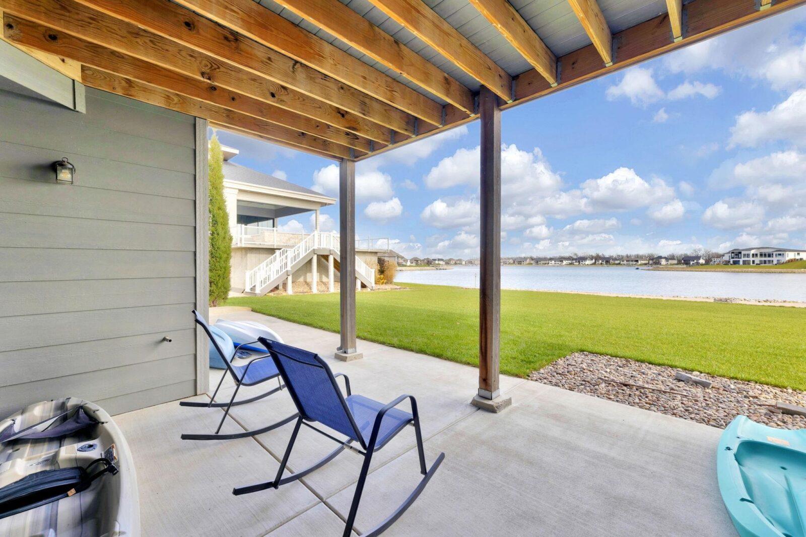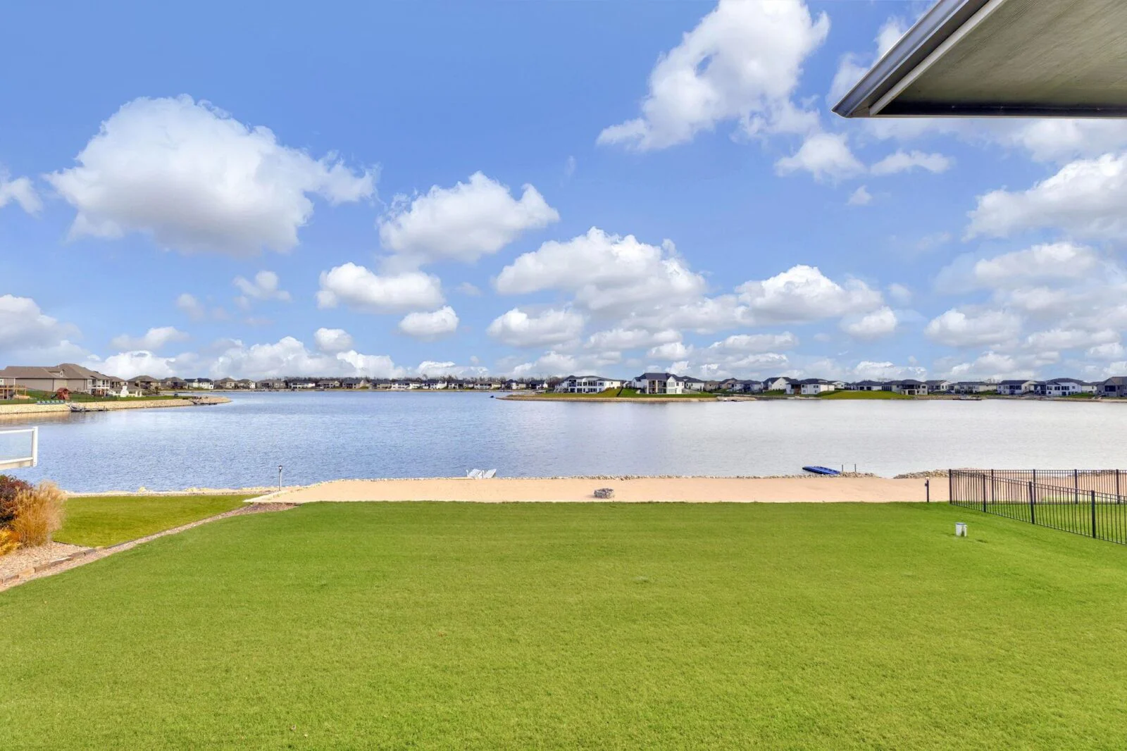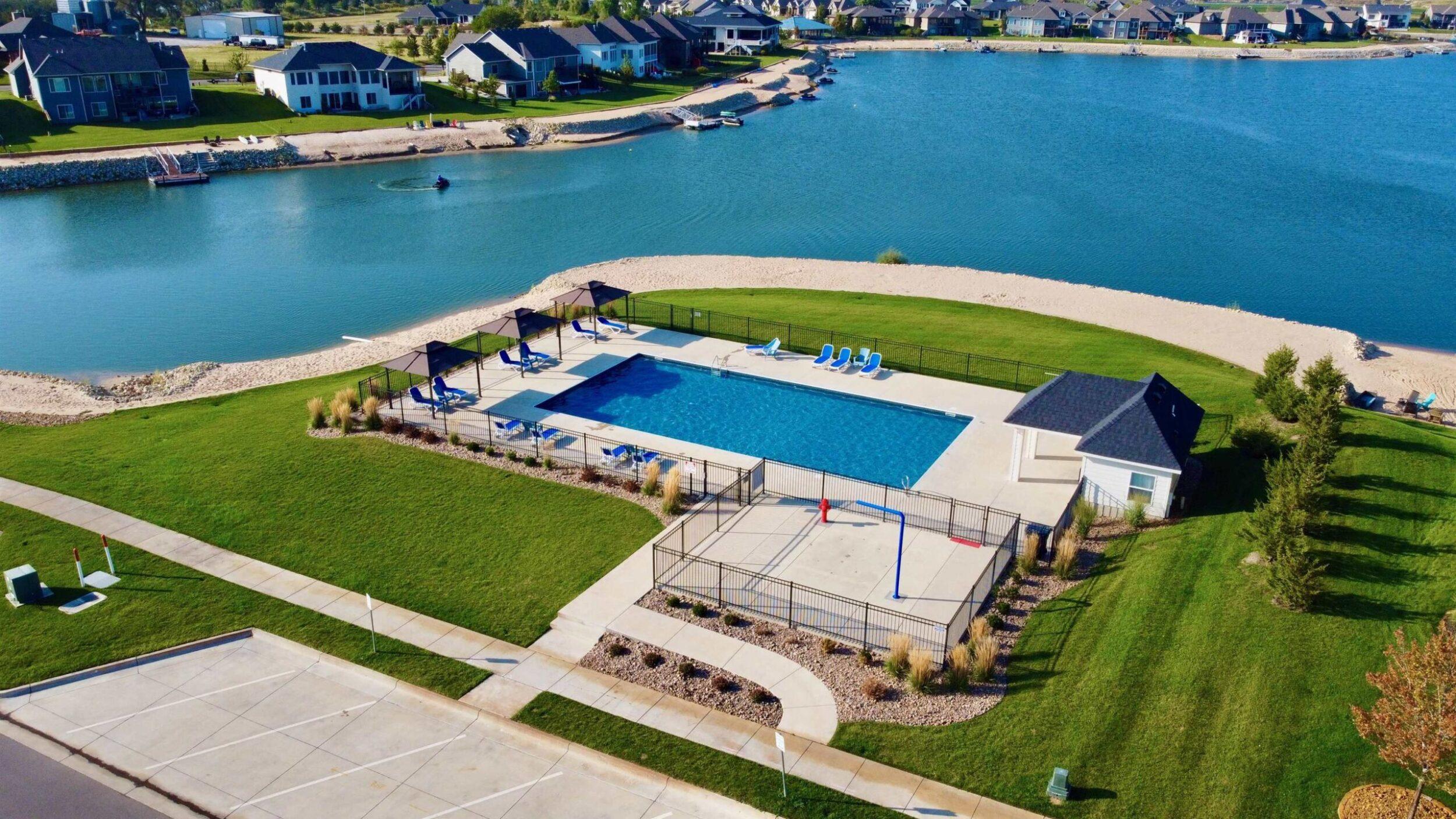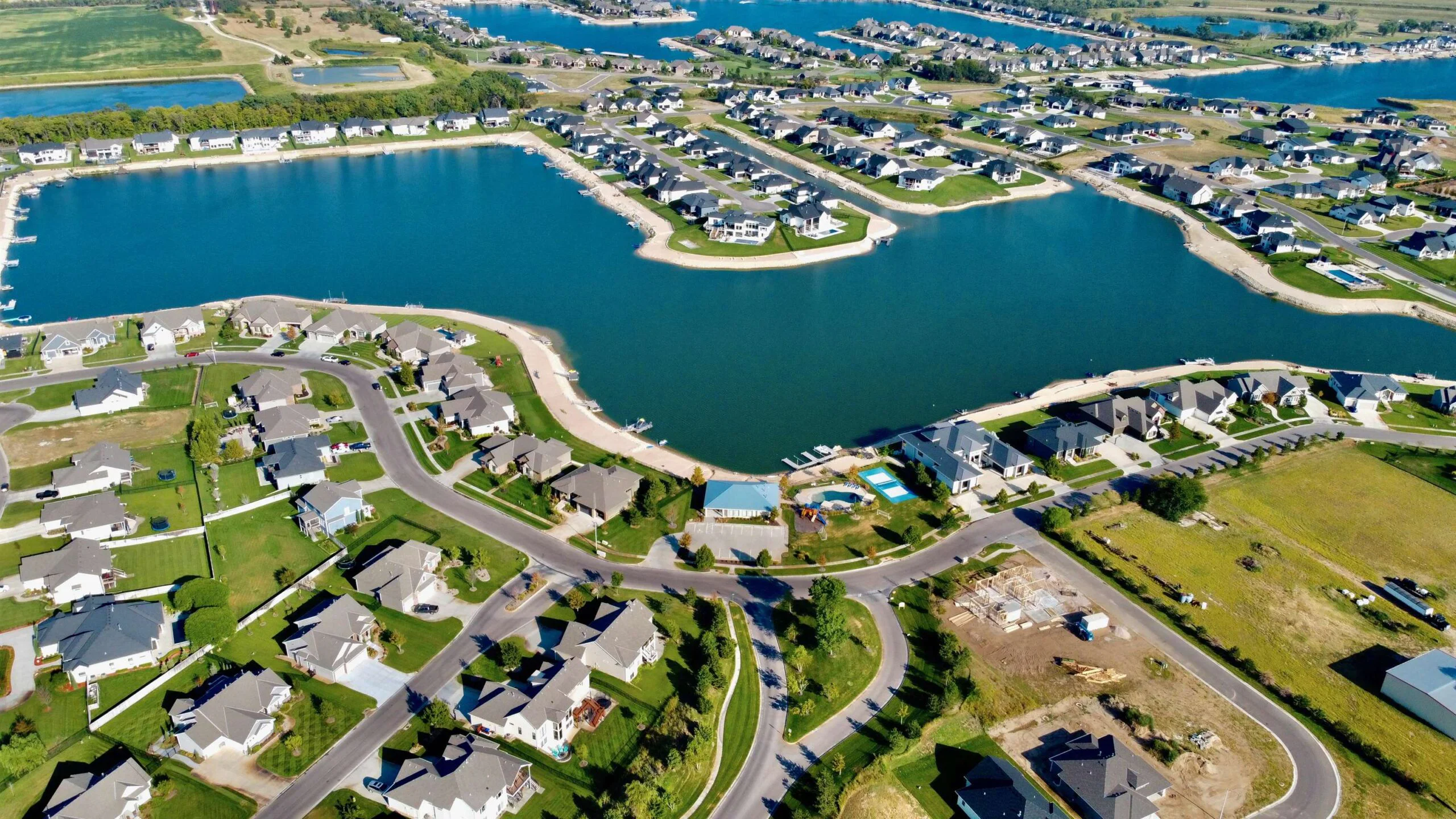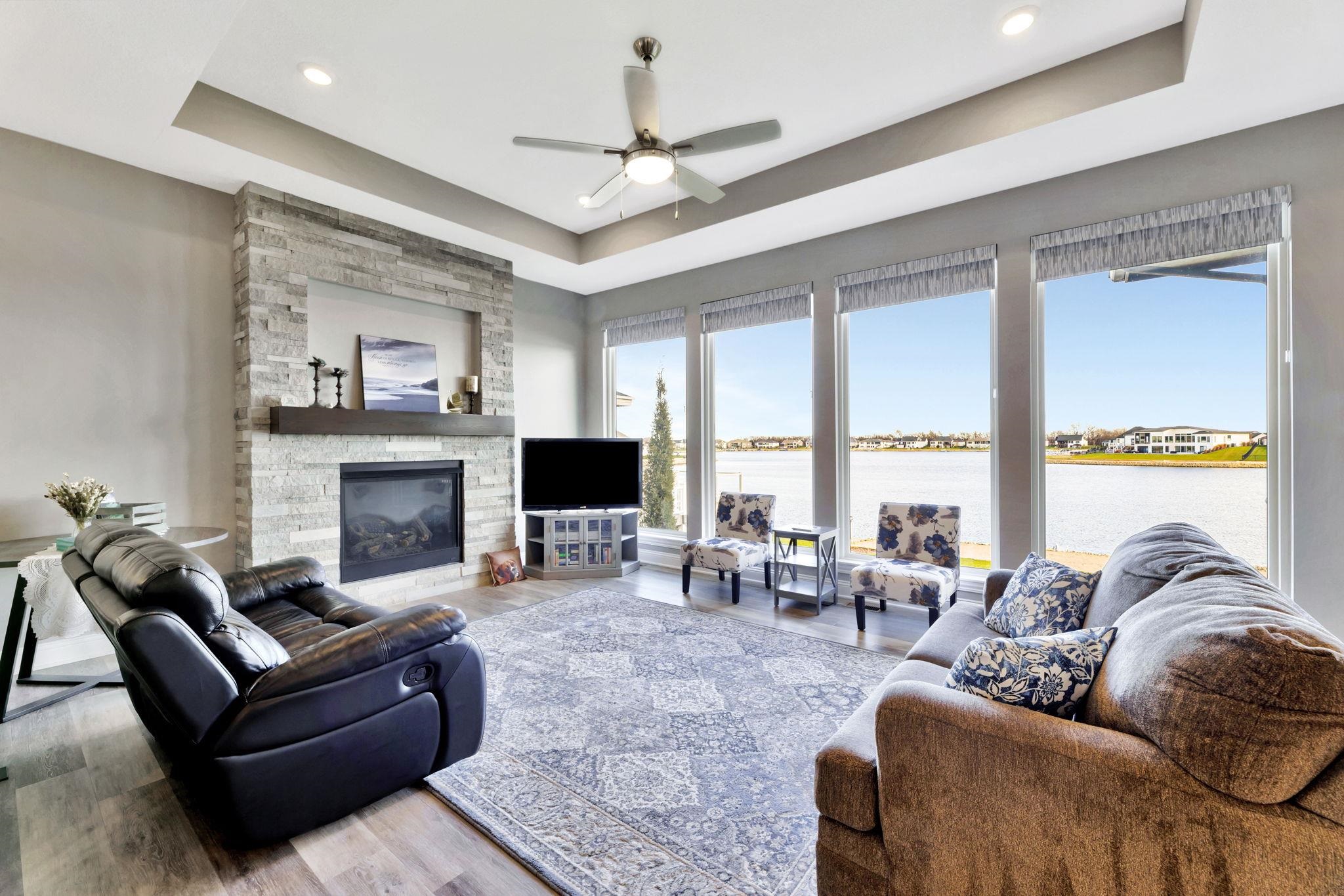 Experience luxury lakeside living at its finest in this meticulously maintained home on an extraordinary lake lot in Sandcrest. Perfectly positioned just a short walk from the lakefront clubhouse, resort-style pool, playground, soccer field, and pickleball court, this home blends incredible amenities with true modern elegance. A stunning mid-century modern elevation welcomes you inside, where the spacious living room features dramatic picture windows showcasing panoramic lake views and a gorgeous stone-surround gas fireplace. The rear-facing kitchen is a chef’s delight, offering granite countertops, abundant cabinetry, and a generous walk-in pantry. The adjoining dining room—also framed by expansive windows—opens directly to the covered deck, delivering some of the best vantage points in the neighborhood. Retreat to the luxurious master suite with a spacious bedroom, spa-inspired bath featuring dual granite-topped vanities and a full tile shower, and an impressive walk-in closet with direct access to the laundry room. A second main-floor bedroom, full hall bath, and a convenient front office complete the main level. The fully finished walk-out lower level continues to impress with a large family room highlighted by LVP flooring, a walk-out to the covered patio, and a stylish pub-style wet bar—ideal for entertaining. Three additional bedrooms and a full bath offer plenty of space for family and guests. Outside, the expansive backyard is your own private lakeside sanctuary. Enjoy a large beach area, included jet-ski dock, and ample room for a future pool. You can even add your own private boat dock along your beach frontage. Don’t miss this rare opportunity to own one of the prime lots in Sandcrest—one of Wichita’s premier lakeside communities and located within the Maize South school district. This home is the perfect blend of luxury, lifestyle, and breathtaking views. Come see it today! Some information may be estimated and is not guarnteed. Please verify schools with USD 266.