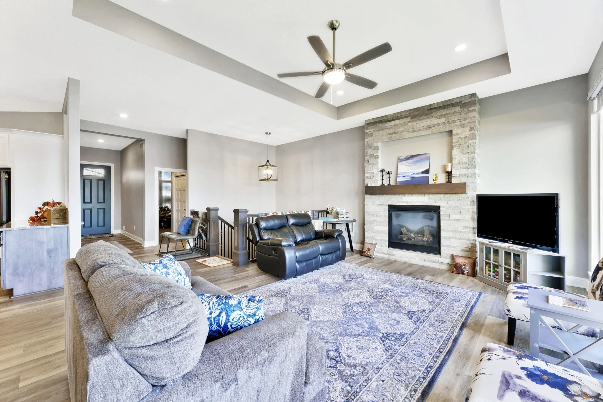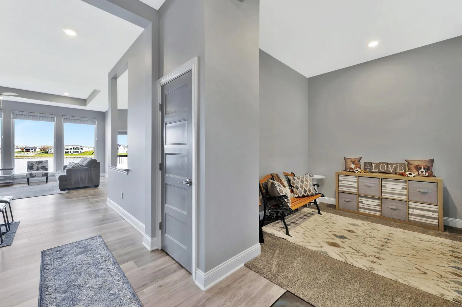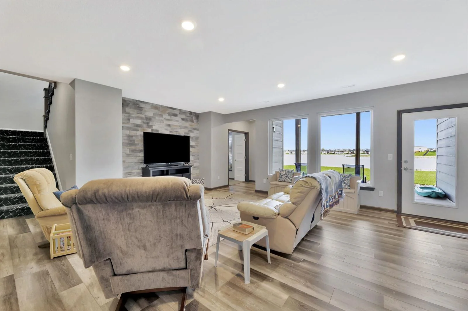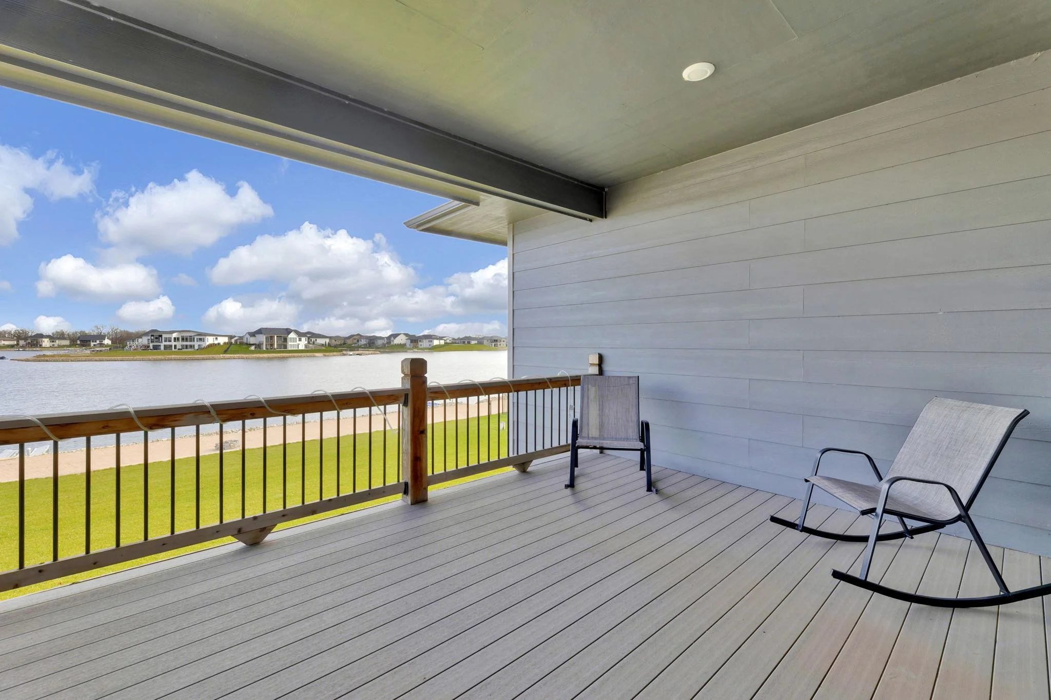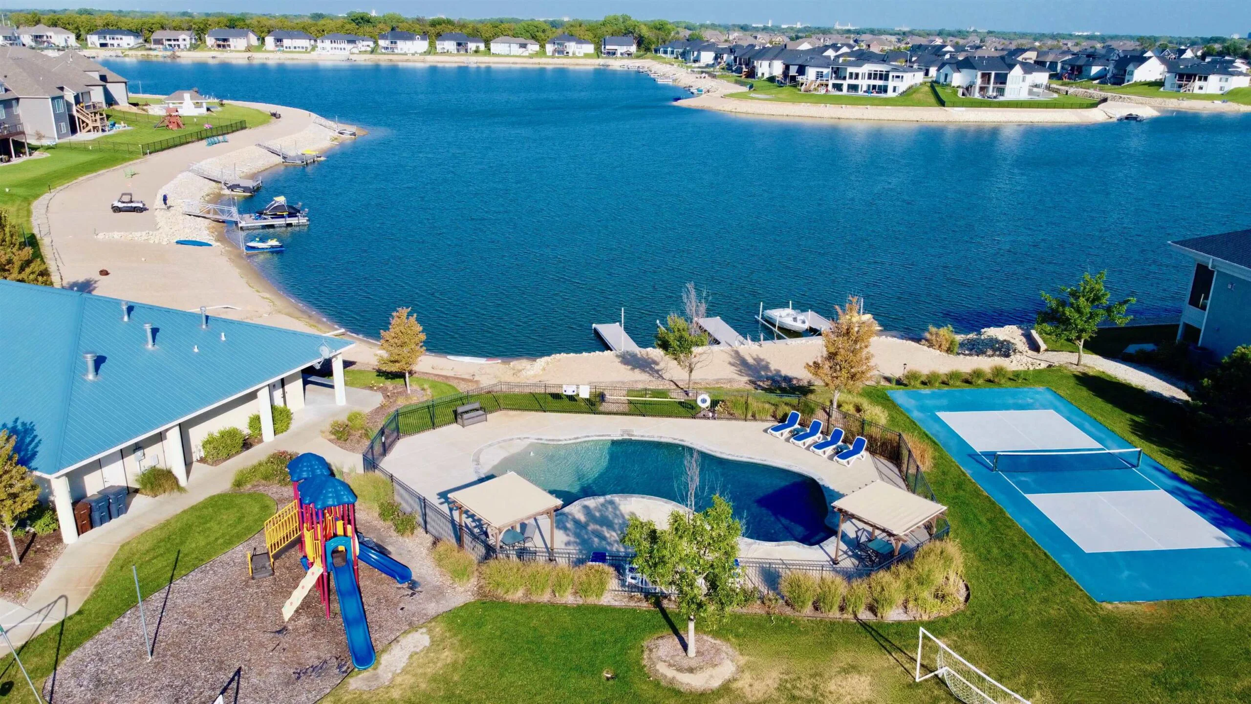 Experience luxury lakeside living at its finest in this meticulously maintained home on an extraordinary lake lot in Sandcrest. Perfectly positioned just a short walk from the lakefront clubhouse, resort-style pool, playground, soccer field, and pickleball court, this home blends incredible amenities with true modern elegance. A stunning mid-century modern elevation welcomes you inside, where the spacious living room features dramatic picture windows showcasing panoramic lake views and a gorgeous stone-surround gas fireplace. The rear-facing kitchen is a chef’s delight, offering granite countertops, abundant cabinetry, and a generous walk-in pantry. The adjoining dining room—also framed by expansive windows—opens directly to the covered deck, delivering some of the best vantage points in the neighborhood. Retreat to the luxurious master suite with a spacious bedroom, spa-inspired bath featuring dual granite-topped vanities and a full tile shower, and an impressive walk-in closet with direct access to the laundry room. A second main-floor bedroom, full hall bath, and a convenient front office complete the main level. The fully finished walk-out lower level continues to impress with a large family room highlighted by LVP flooring, a walk-out to the covered patio, and a stylish pub-style wet bar—ideal for entertaining. Three additional bedrooms and a full bath offer plenty of space for family and guests. Outside, the expansive backyard is your own private lakeside sanctuary. Enjoy a large beach area, included jet-ski dock, and ample room for a future pool. You can even add your own private boat dock along your beach frontage. Don’t miss this rare opportunity to own one of the prime lots in Sandcrest—one of Wichita’s premier lakeside communities and located within the Maize South school district. This home is the perfect blend of luxury, lifestyle, and breathtaking views. Come see it today! Some information may be estimated and is not guarnteed. Please verify schools with USD 266.