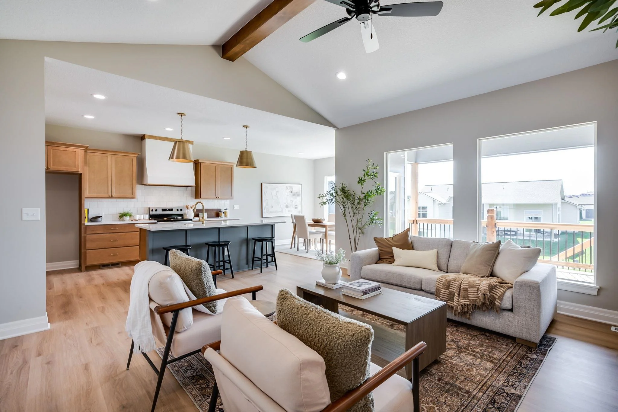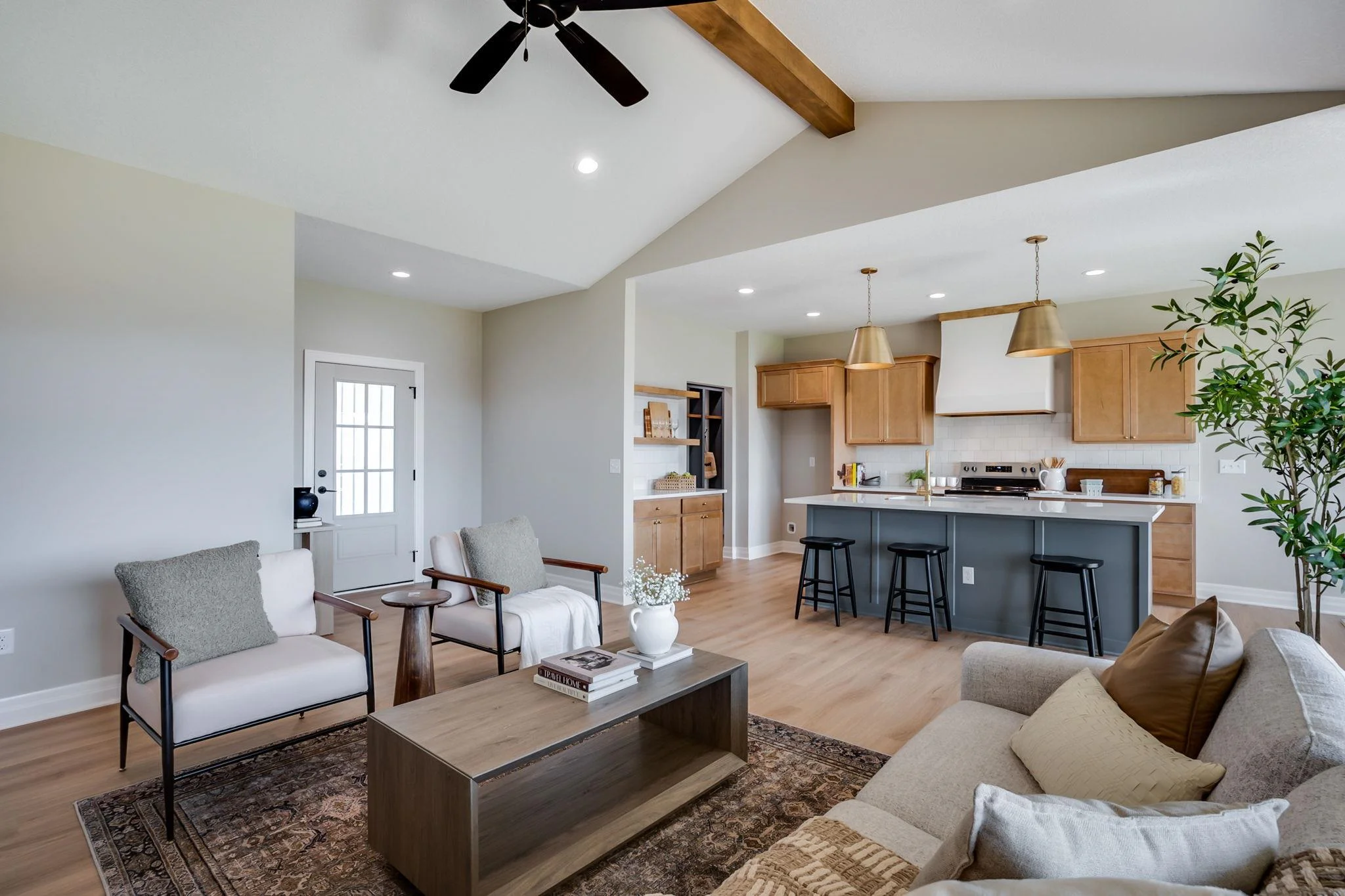 The beautiful new "Braxton" by T.W. Custom homes features 3 bedrooms, 2 bathrooms, and over 1,600 square feet on the main floor. Additional features include an oversized 4-car garage, open floor plan, spacious kitchen with quartz island, walk-in pantry, covered deck, beams, and open shelving. The master suite includes a walk-in shower, dual sinks, and a walk-in closet. Finish out the basement and make this a 5 bedroom, 3 bath home with a large family room with a wet bar.