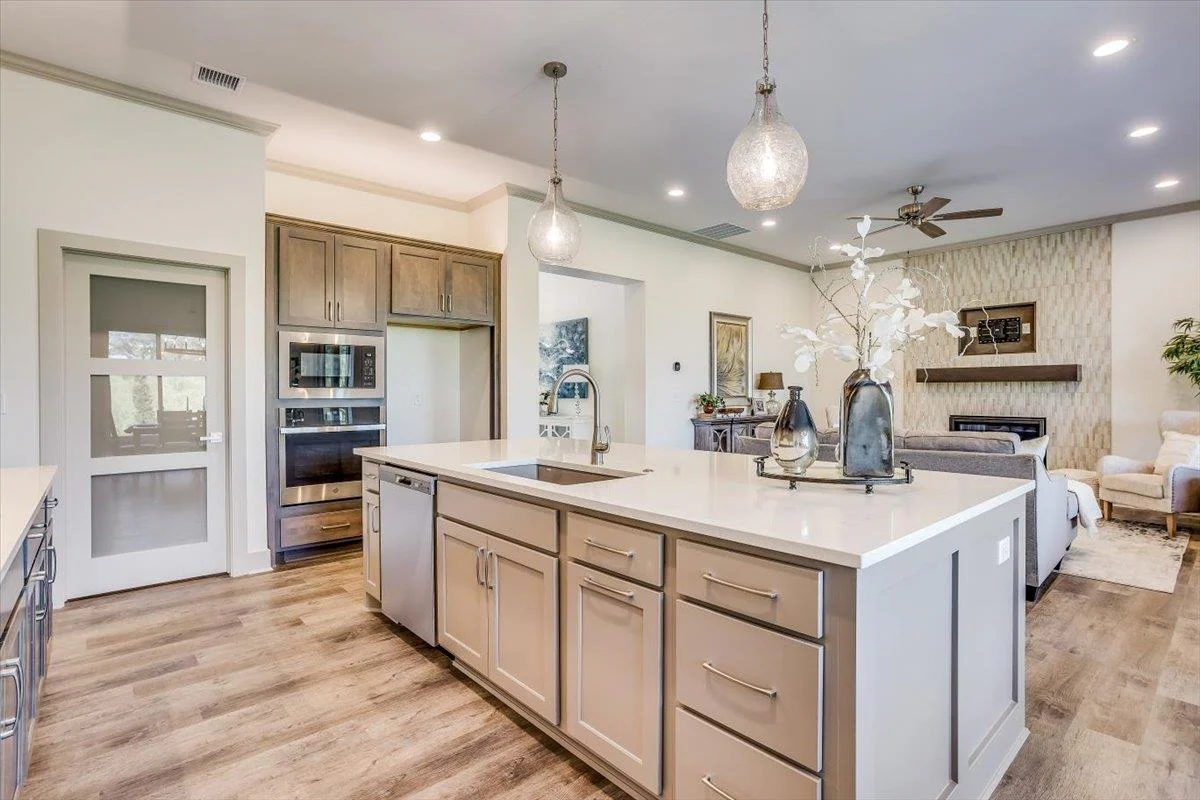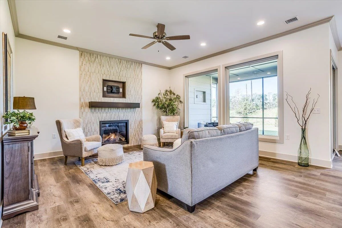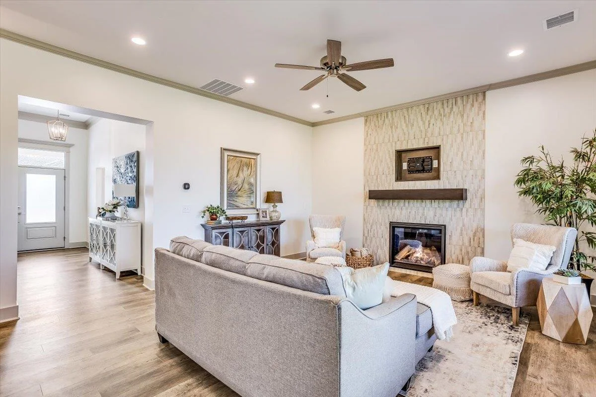 New zero entry home by H & H Homebuilders. This three bedroom two bath home features a large entry foyer, leading to the great room with crown molding and fireplace, open to the kitchen and dining area overlooking the large covered patio. The kitchen features a large island, walk-in pantry which is also the safe room, crown molding, gas cook top, built-in oven and microwave, pull out shelving in the lower cabinets and luxury vinyl flooring. Owner's suite has crown molding, wood paneled accent wall, large walk-in closet, tile shower, double vanities and is connected to the laundry room. This home also has a large covered front porch, three car garage, well, sprinkler system, lawn and landscaping. Sandcrest amenities include the clubhouse with firepit, boating lake, two pools, pickleball court, and playground. MOVE IN READY! Taxes are estimated and the information is deemed reliable but not guaranteed and may be changed without prior notice.