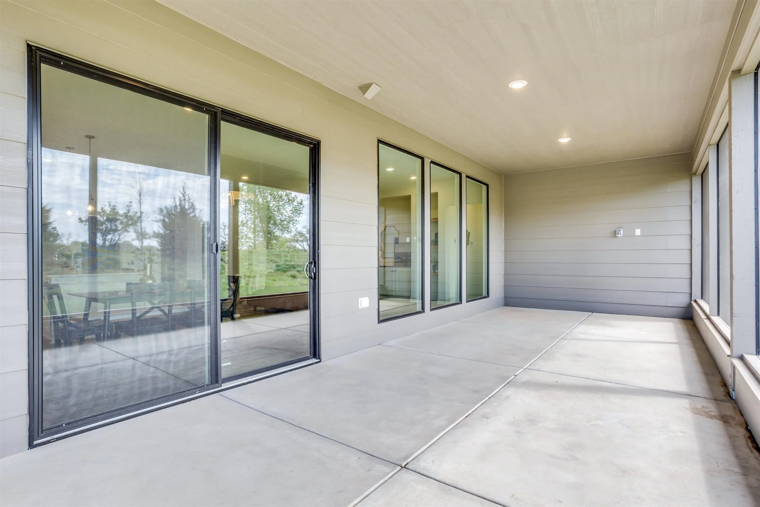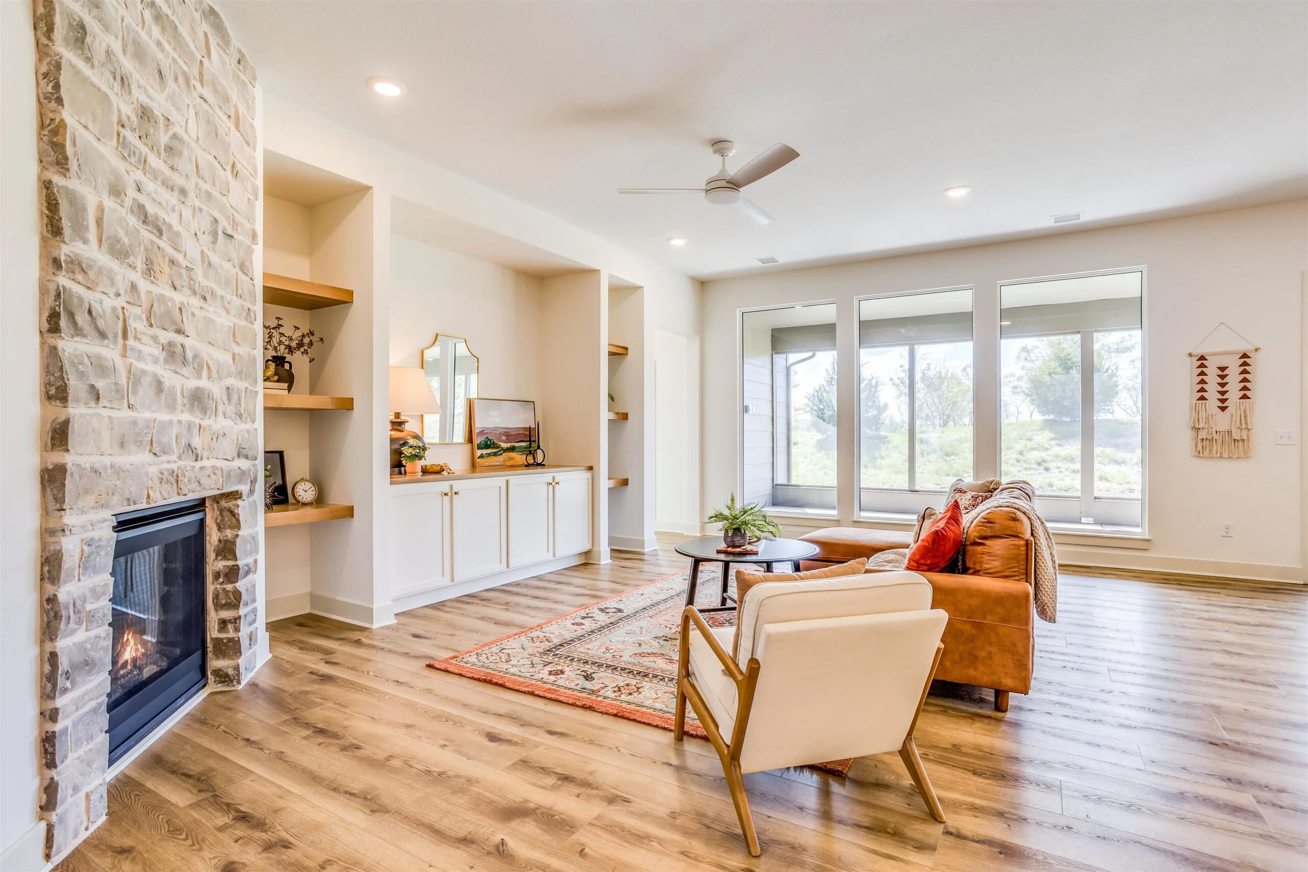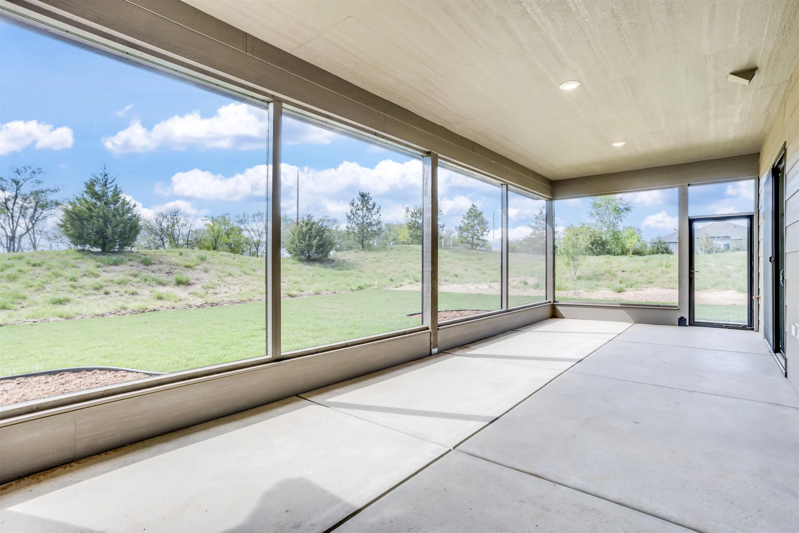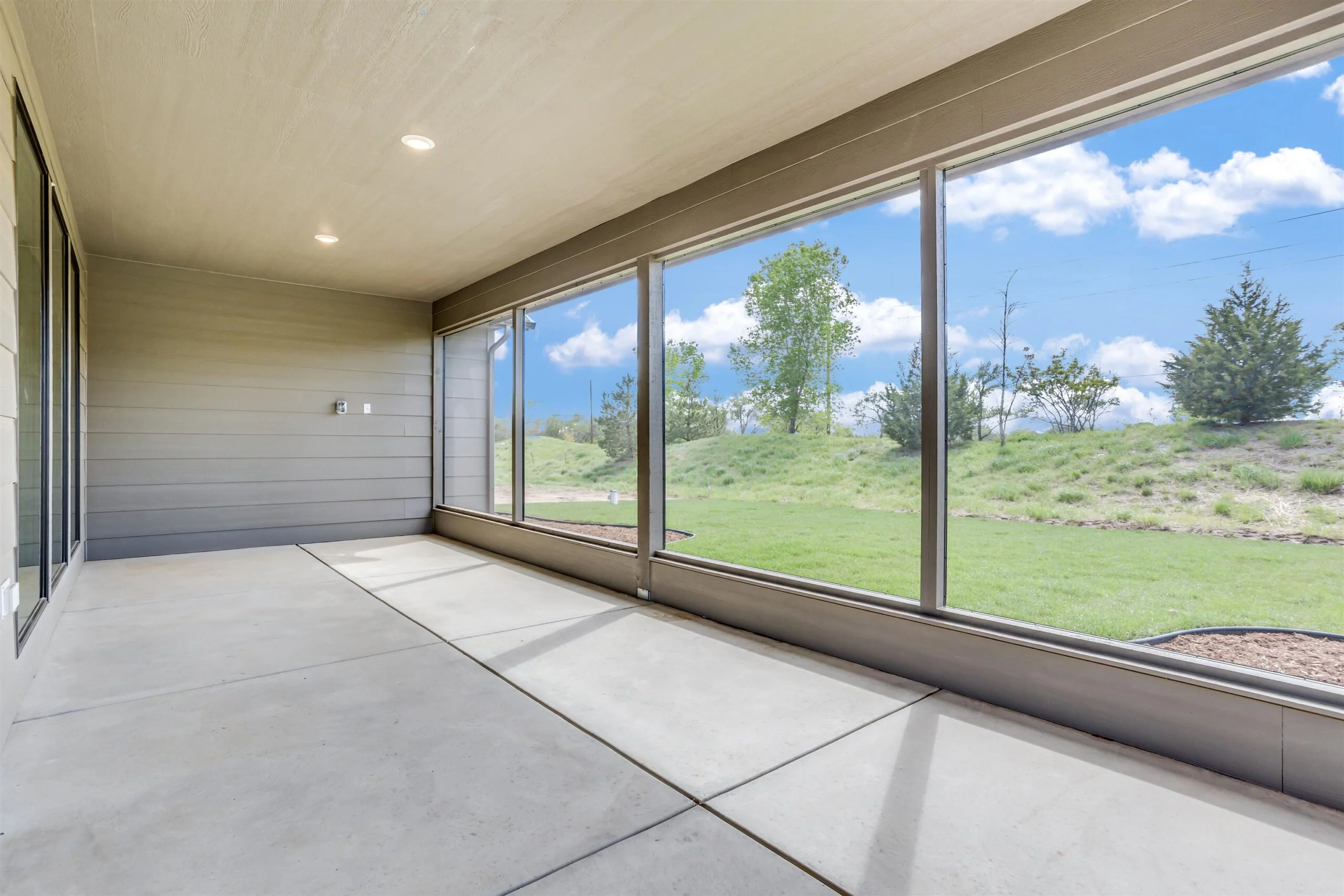 New zero entry home by Robl Building Co. You enter this home with a large covered porch, entry foyer with curved walls to the great room. The great room features a stone fireplace, built-in cabinets, luxury vinyl flooring and large windows overlooking the screened porch. This plan is open to the kitchen and dining. The kitchen features a center island, walk-in pantry, abundant counter space and cabinets. The primary bedroom has a decorative wood paneled wall, and the bath has a custom tile shower, water closet, large walk-in closet, and double vanities. The primary bedroom connects to the laundry room as does the other bedroom and office. Price includes a concrete safe room, large oversized three car garage, water well, sprinkler, lawn and landscaping. Don't miss out on this beautiful home. MOVE IN READY! Information deemed reliable but not guaranteed and may be changed without prior notice. Taxes estimated.