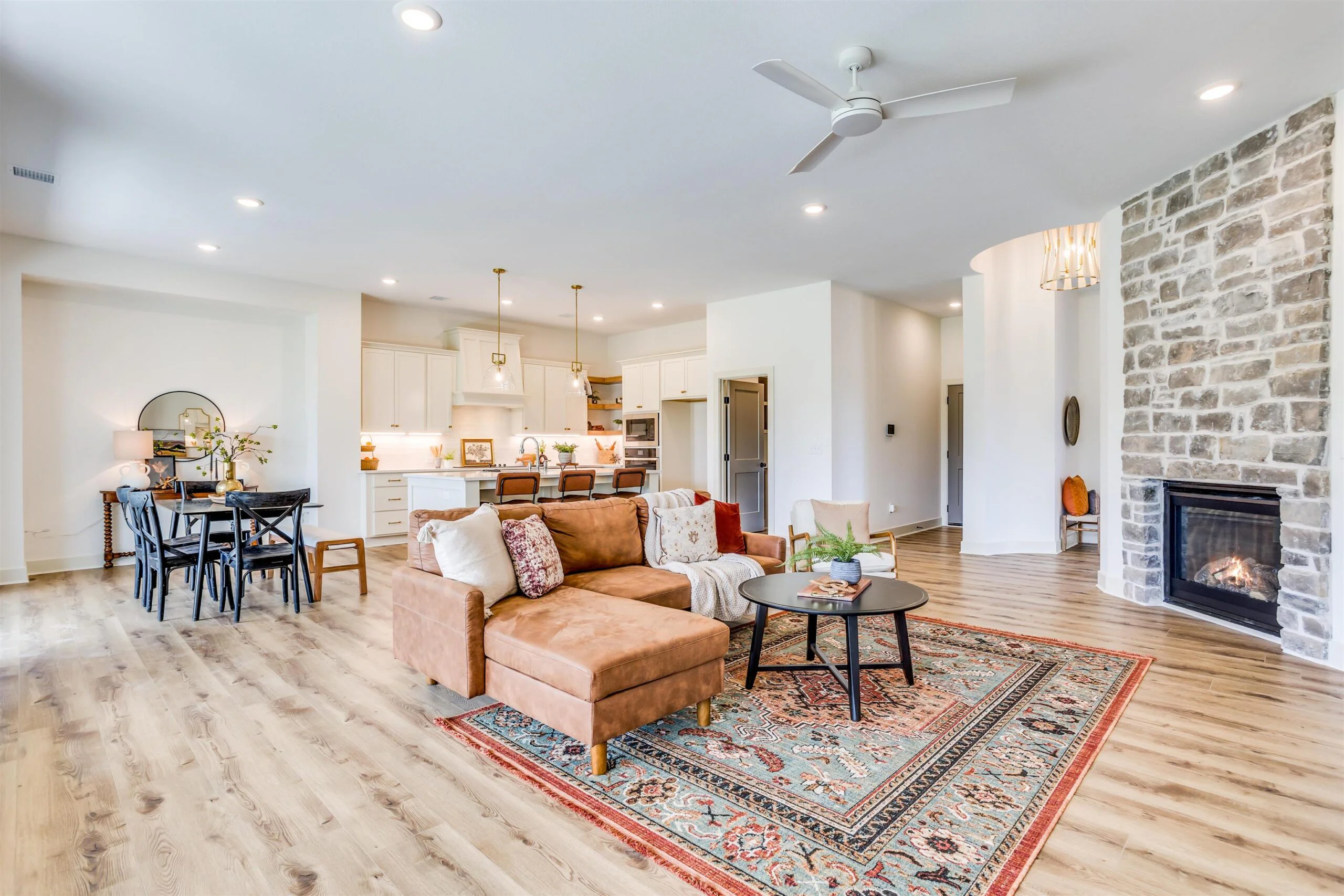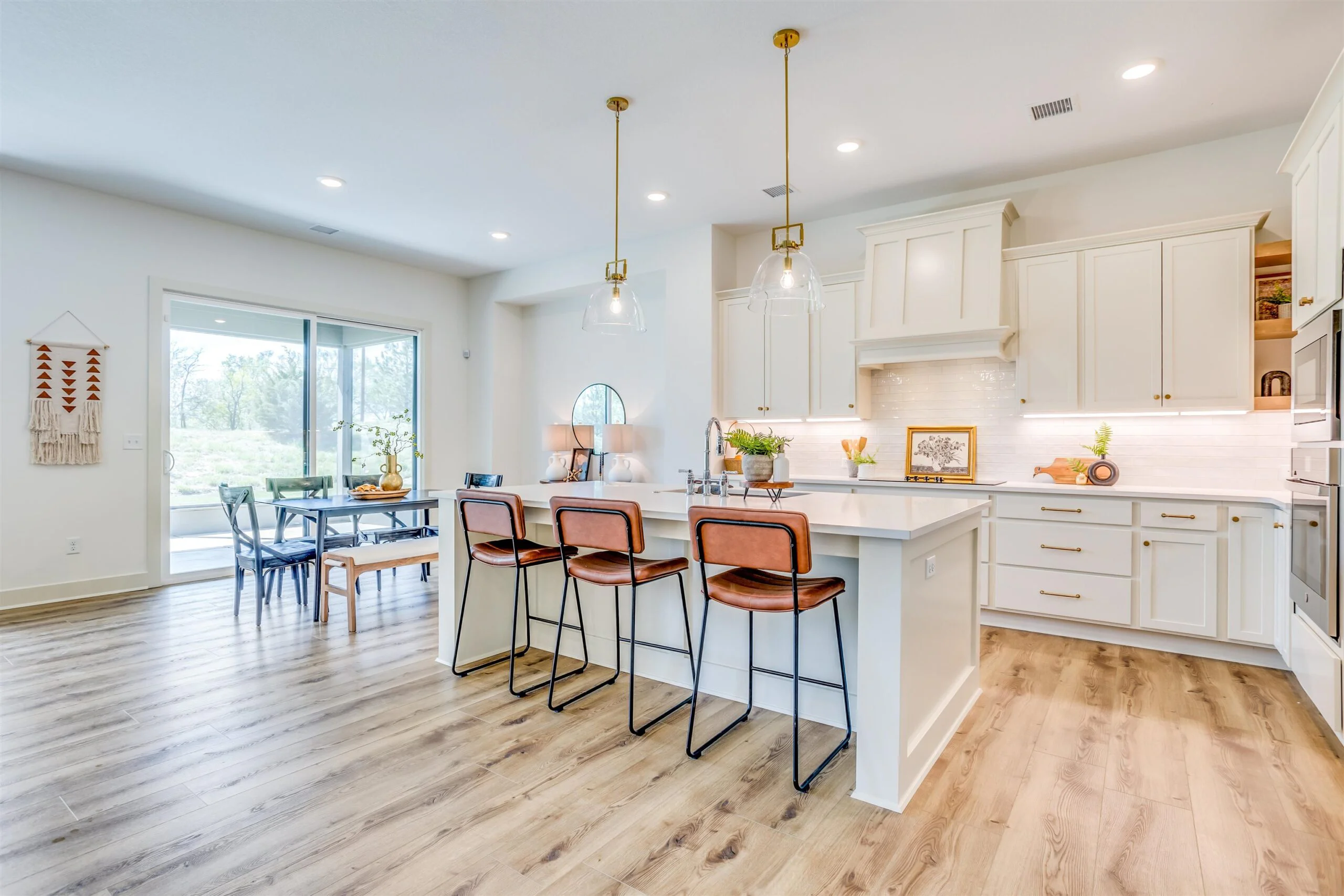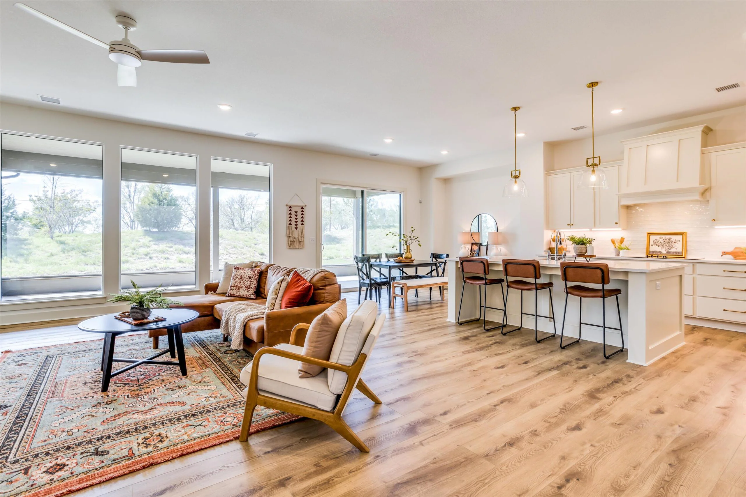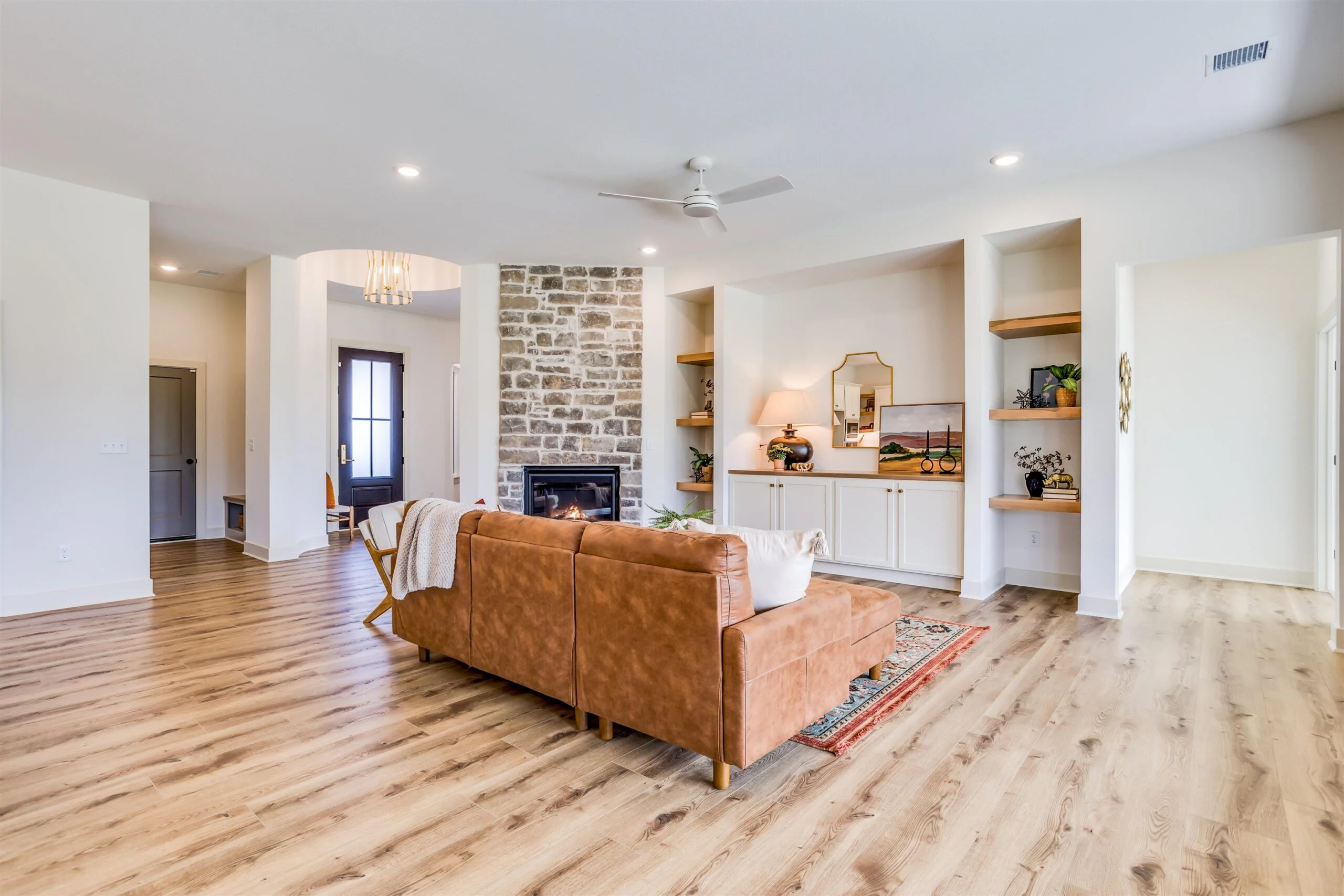 New zero entry home by Robl Building Co. You enter this home with a large covered porch, entry foyer with curved walls to the great room. The great room features a stone fireplace, built-in cabinets, luxury vinyl flooring and large windows overlooking the screened porch. This plan is open to the kitchen and dining. The kitchen features a center island, walk-in pantry, abundant counter space and cabinets. The primary bedroom has a decorative wood paneled wall, and the bath has a custom tile shower, water closet, large walk-in closet, and double vanities. The primary bedroom connects to the laundry room as does the other bedroom and office. Price includes a concrete safe room, large oversized three car garage, water well, sprinkler, lawn and landscaping. Don't miss out on this beautiful home. MOVE IN READY! Information deemed reliable but not guaranteed and may be changed without prior notice. Taxes estimated.
