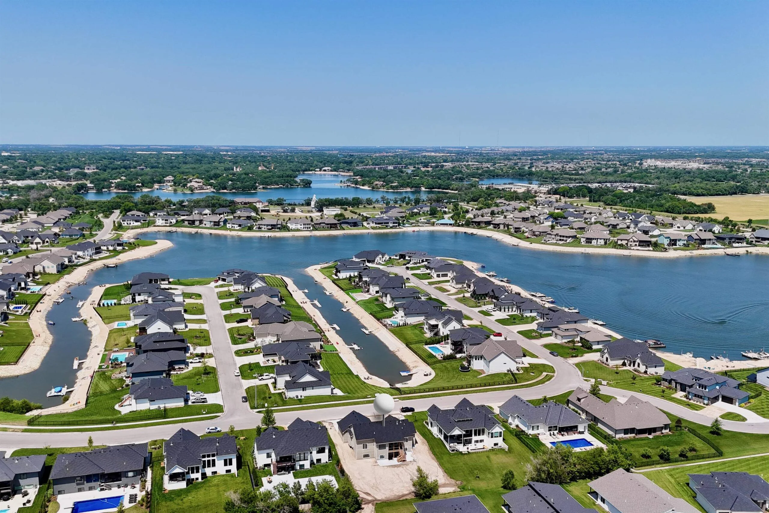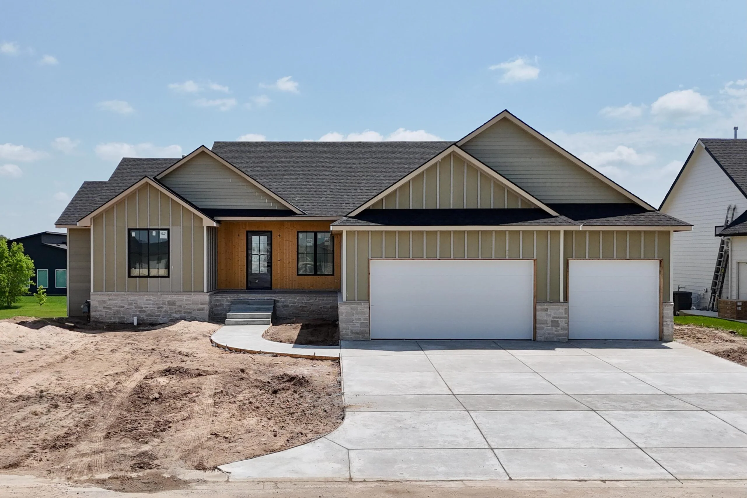Step into timeless design and modern luxury in one of Wichita’s most sought-after neighborhoods – Sandcrest. The Driftwood Plan by Buckert Contracting delivers an extraordinary living experience with a striking front elevation featuring natural wood accents and clean architectural lines. Inside, the main floor boasts a spacious, light-filled living room with grand picture windows, vaulted flat ceilings adorned with wood beams, a cozy gas fireplace, and custom built-in cabinets with floating shelves. The heart of the home—an expansive kitchen—offers a massive island, custom range hood, walk-in pantry, and ample cabinetry, all perfectly suited for entertaining and everyday living. Enjoy gathering in the large dining room, which flows seamlessly to a covered deck with stairs to a ground-level patio—perfect for outdoor living and entertaining. Retreat to the luxurious primary suite featuring a spacious bedroom, spa-style bath with dual vanities, soaker tub, fully tiled shower with rain head, and an enormous walk-in closet with direct access to the laundry room. Two additional main floor bedrooms each include walk-in closets and share a stylish Jack & Jill bath, with a separate guest half bath for convenience. The fully finished walk-out lower level expands your living space with a generous family room, an elegant wet bar, and walk-out access to a covered sunken patio with steps up to the backyard. The basement also includes two large bedrooms, a full bath, and abundant storage. All of this is set in Sandcrest, a resort-style community featuring a 45-acre spring-fed boating lake, lakefront clubhouse, two lakeside pools with beach access, playground, soccer field, pickleball court, and more! This home is currently under construction and pricing is subject to change without notice. Some information may be estimated and is not guaranteed. Please verify schools with USD 266.