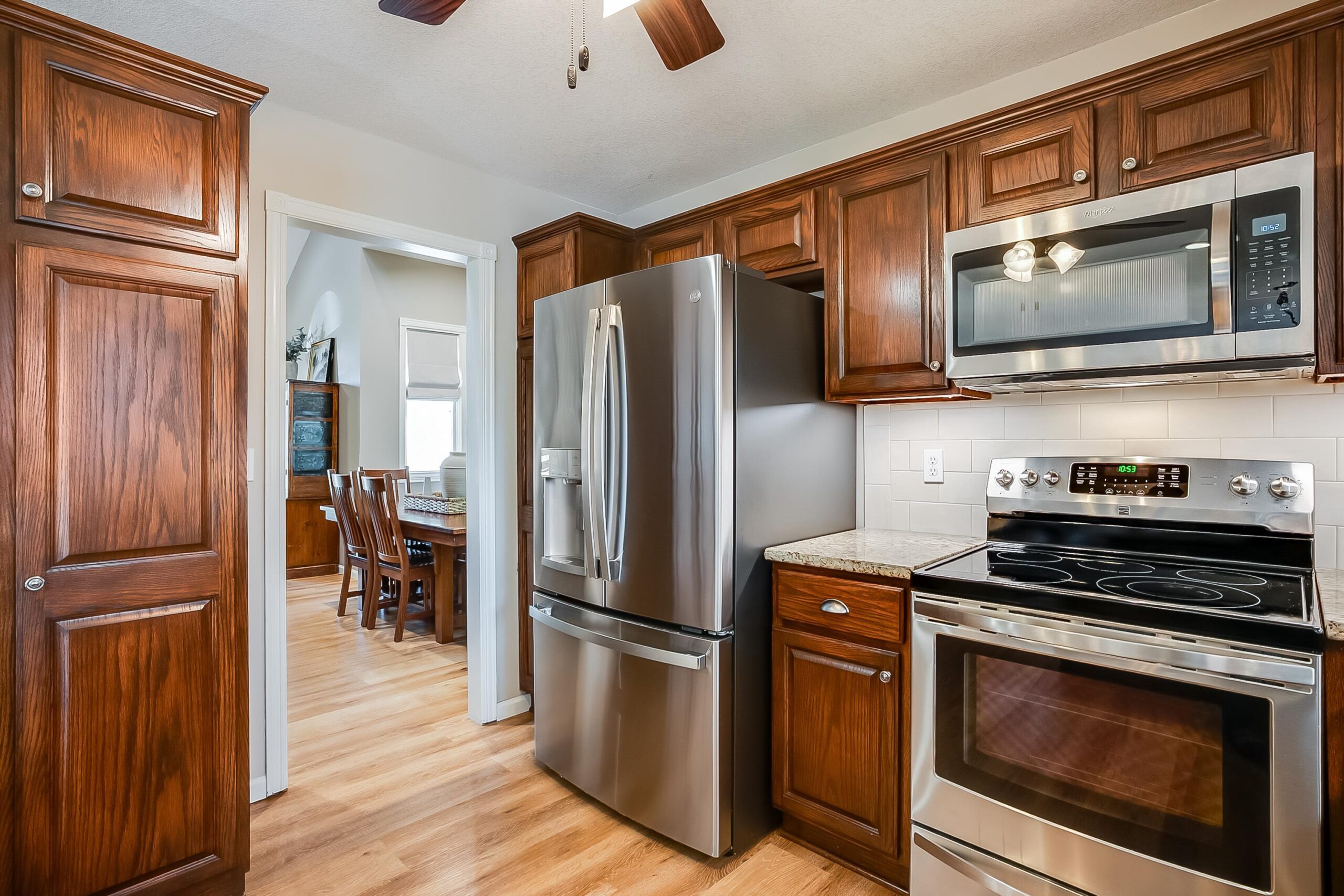 - Description: Beautifully Maintained, Move-In Ready Home in Maize South Schools! Welcome home to this stunning property that blends timeless charm with modern updates. From the moment you arrive, the classic front elevation, lush landscaping, and mature trees set the tone for what awaits inside. Step into a spacious living room with soaring vaulted ceilings, abundant natural light, and recently updated LVP flooring that flows throughout the main level. The large kitchen features sleek granite countertops, plenty of cabinet space, and a sunny breakfast nook, while a separate dining area provides the perfect spot for gatherings. The main floor also boasts a cozy family room with a gas fireplace and walkout access to a low-maintenance composite deck with aluminum railing—ideal for entertaining or relaxing outdoors. A convenient half bath and a well-designed laundry room with built-in cabinetry complete this level. Upstairs, you’ll find a versatile loft space perfect for a home office or playroom, plus a luxurious master suite with a spacious bedroom, walk-in closet, and spa-like bath featuring dual granite vanities, a corner jacuzzi tub, and a separate onyx shower. Two additional bedrooms and a full bath complete the upper level. The fully finished walkout basement offers even more living space with a large family room, wet bar (with room for a full-size fridge), a huge bedroom, and a full bath. Recently updated LVP flooring adds a fresh, modern touch throughout. Enjoy a fully fenced backyard with direct access to the oversized 3rd-car garage bay. This home comes complete with custom blinds, kitchen refrigerator, washer, and dryer—all included for your convenience. Located in the highly sought-after Maize South School District, this home truly has it all. With countless updates and thoughtful details throughout, it’s the perfect blend of comfort, style, and function. Don’t miss the chance to make this move-in ready gem yours—schedule a showing today! Some information may be estimated and is not guaranteed. Please verify schools with USD 266.