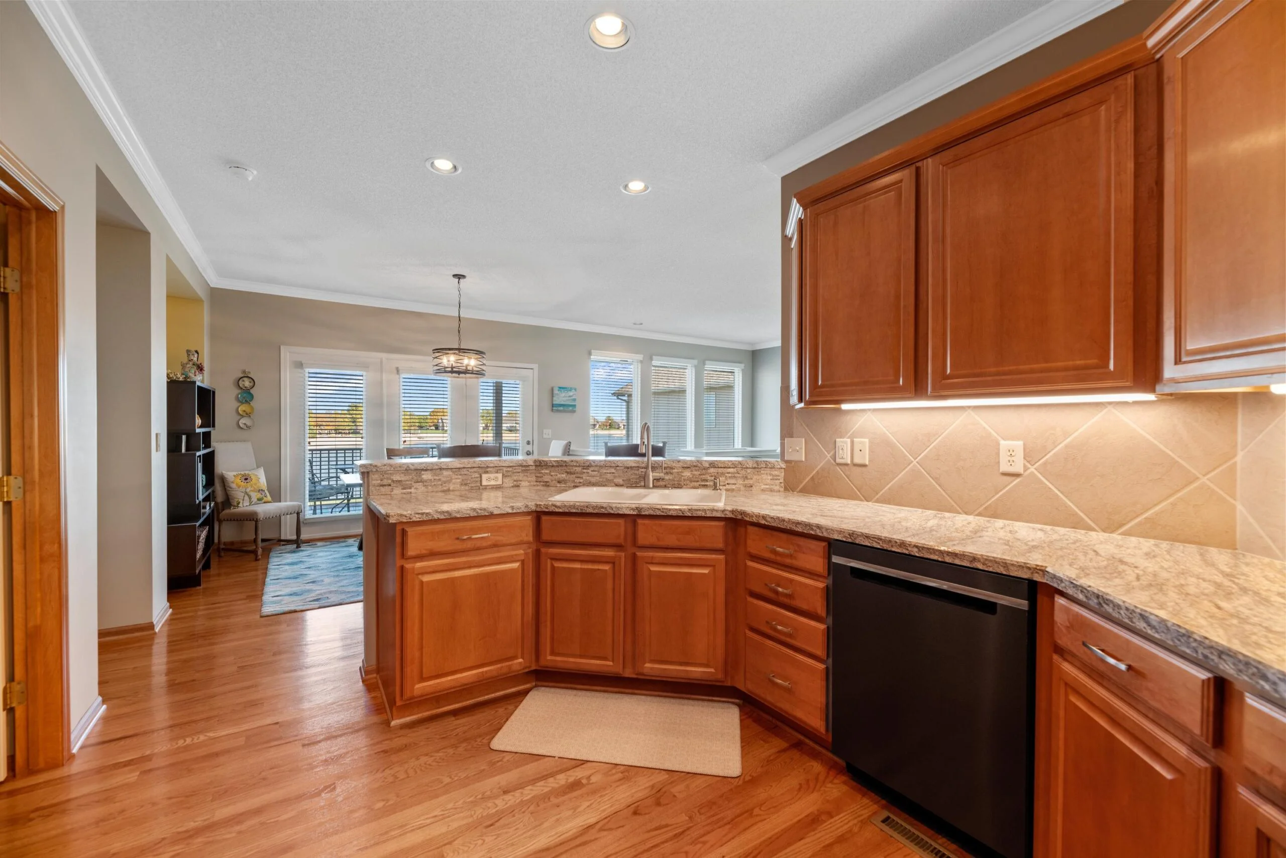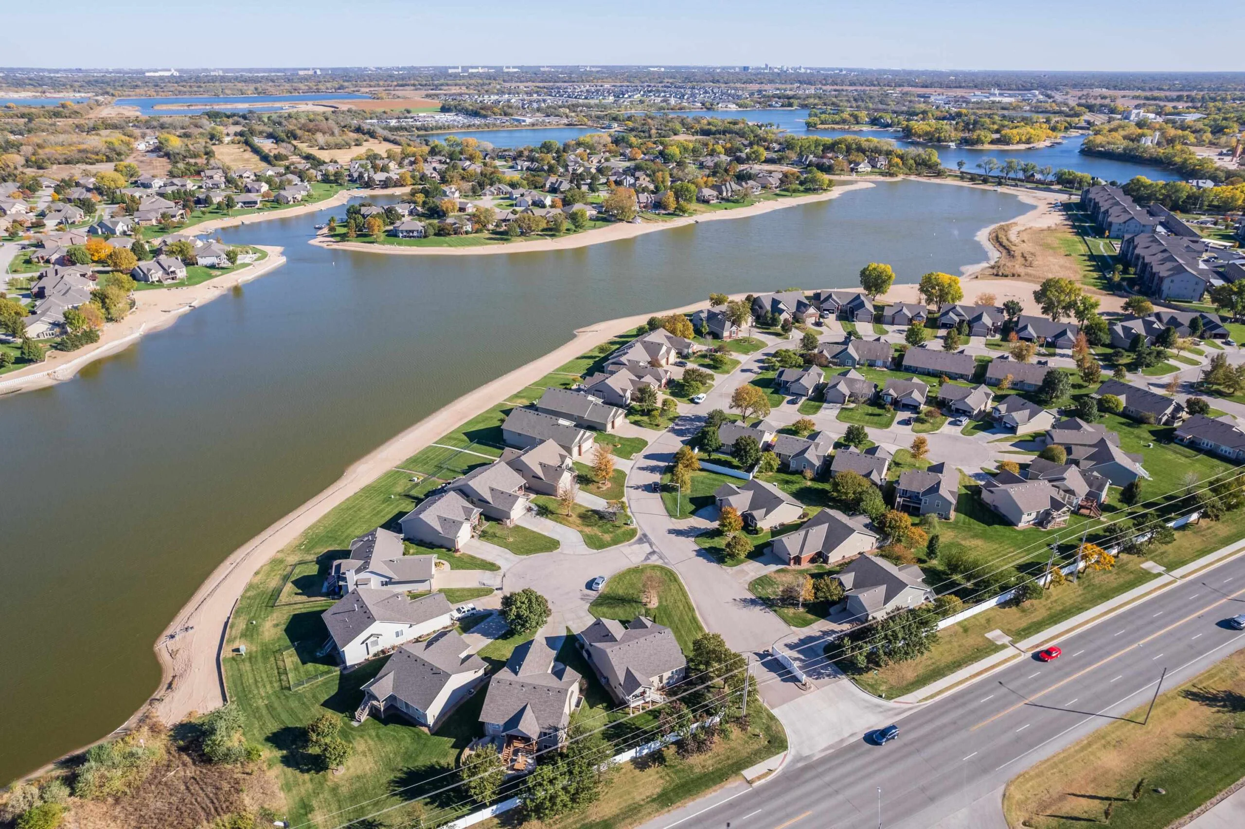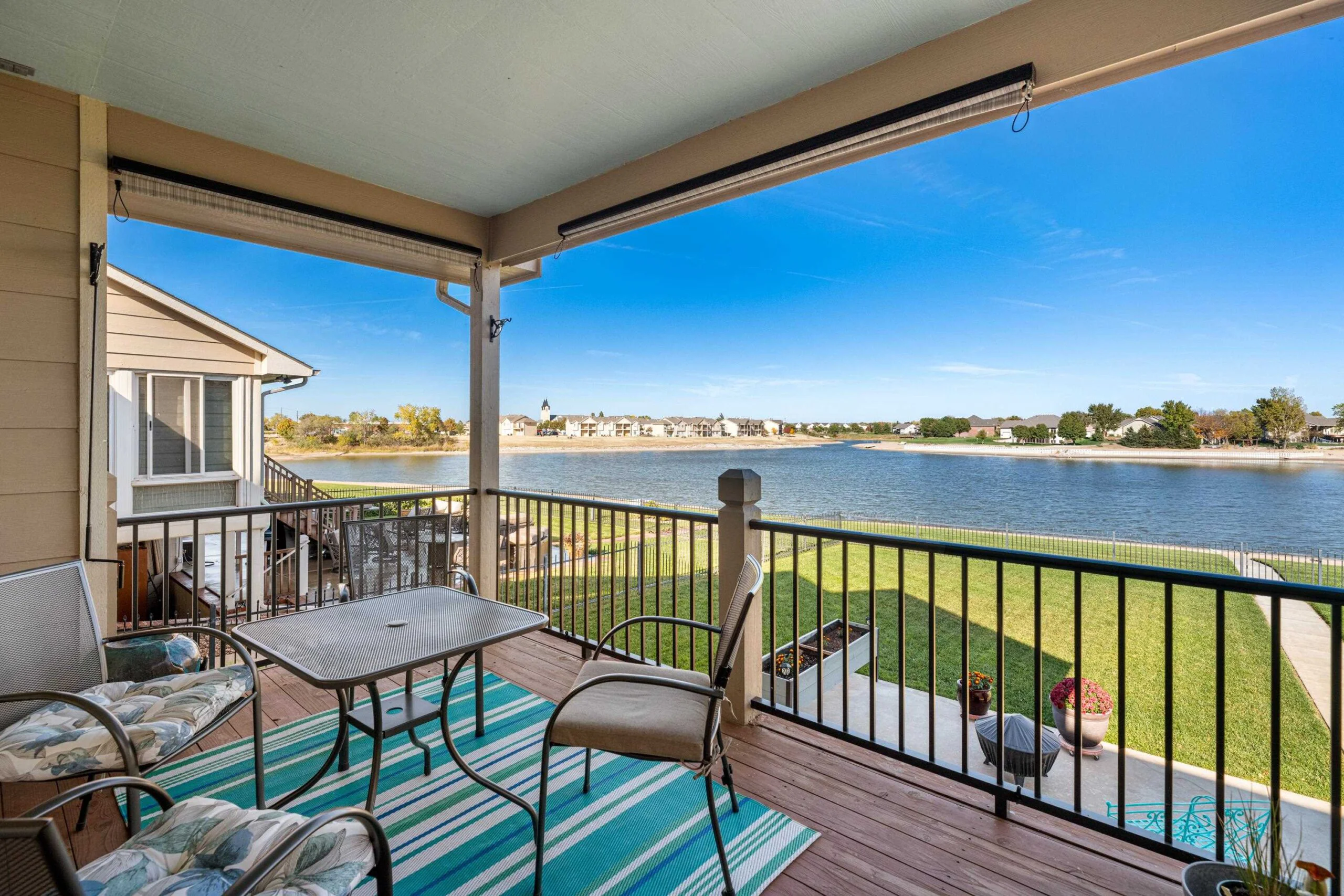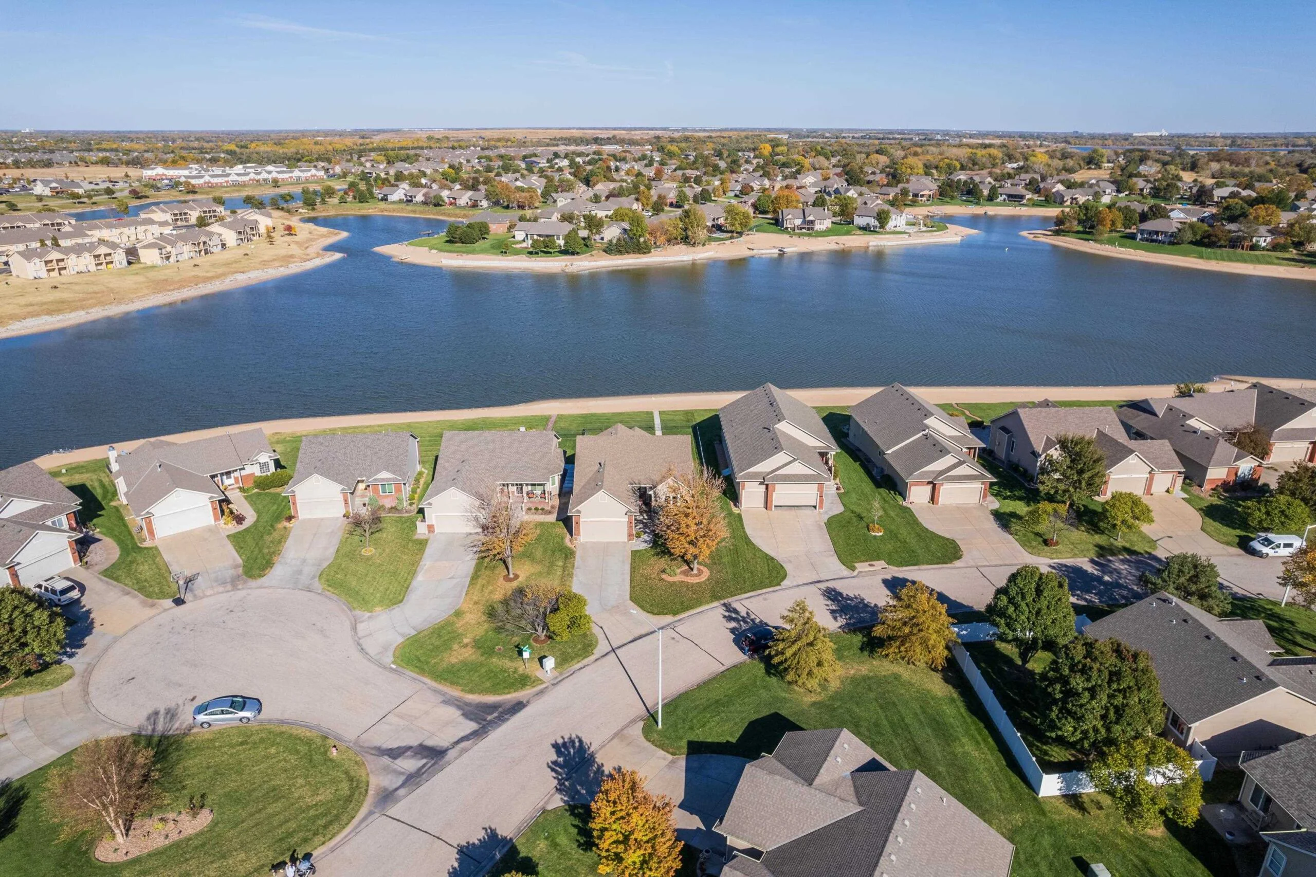 This lakefront home in The Cloisters at Ridgepoint won’t last long! You will feel like you are on vacation with beautiful views and lake access. This well maintained home includes many updates throughout including new Pella windows in 2024. Master suite design includes convenient access from walk through closet to laundry. En-suite bath updated with new flooring, dual onyx sinks and countertops. Enjoy the large kitchen with eating bar. Sip your coffee while enjoying lake views from the dining room or your large covered deck. The living room features lots of natural light and a decorative gas fireplace. Motorized sunscreen installed on east living room windows. Entertain family and friends in the basement family room with gas fireplace. Access the large patio from your mid-level walkout. Wrought iron fenced yard with sidewalk to the beach. HOA dues cover lawn care, trash, and snow removal. Lake access for your personal watercraft or boat via community boat ramp. Maize schools, close to great shopping and restaurants. Schedule your showing today!
