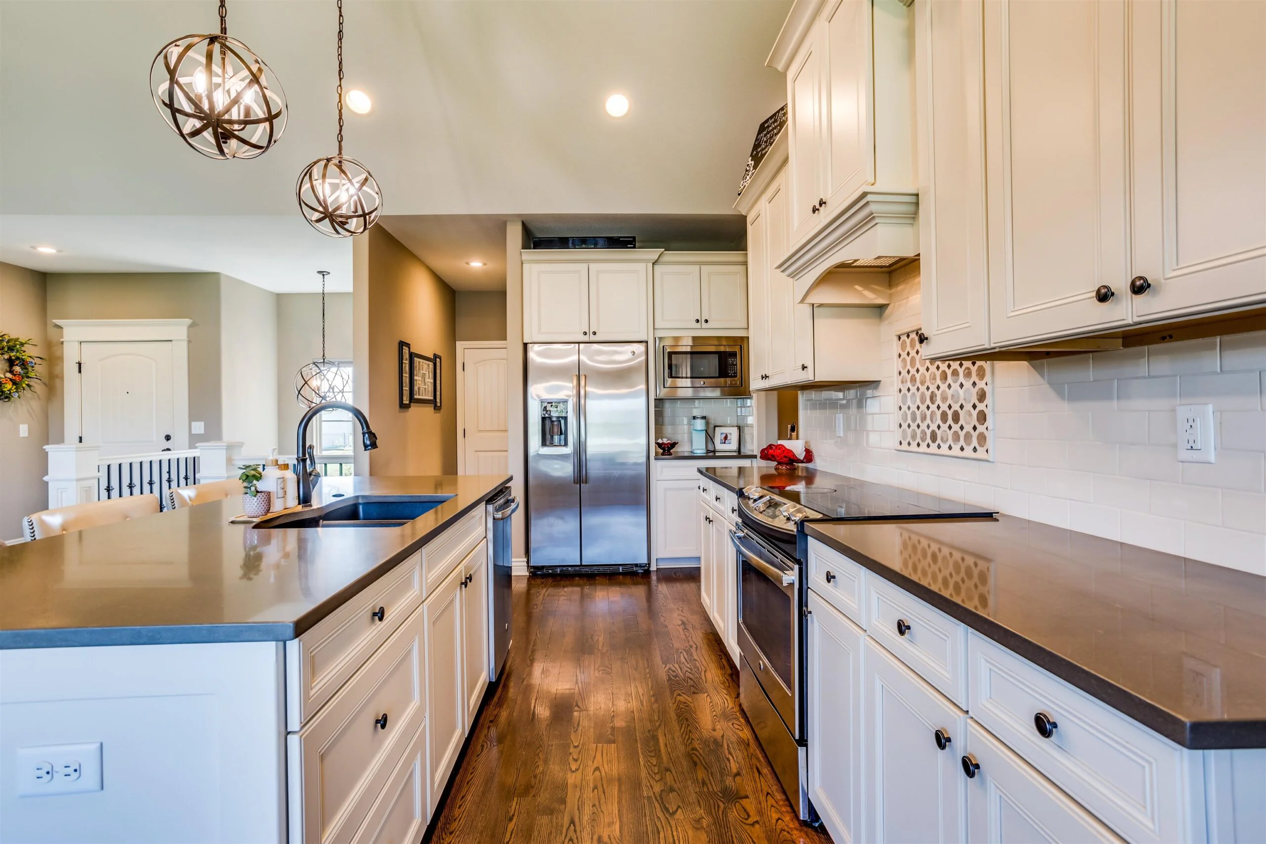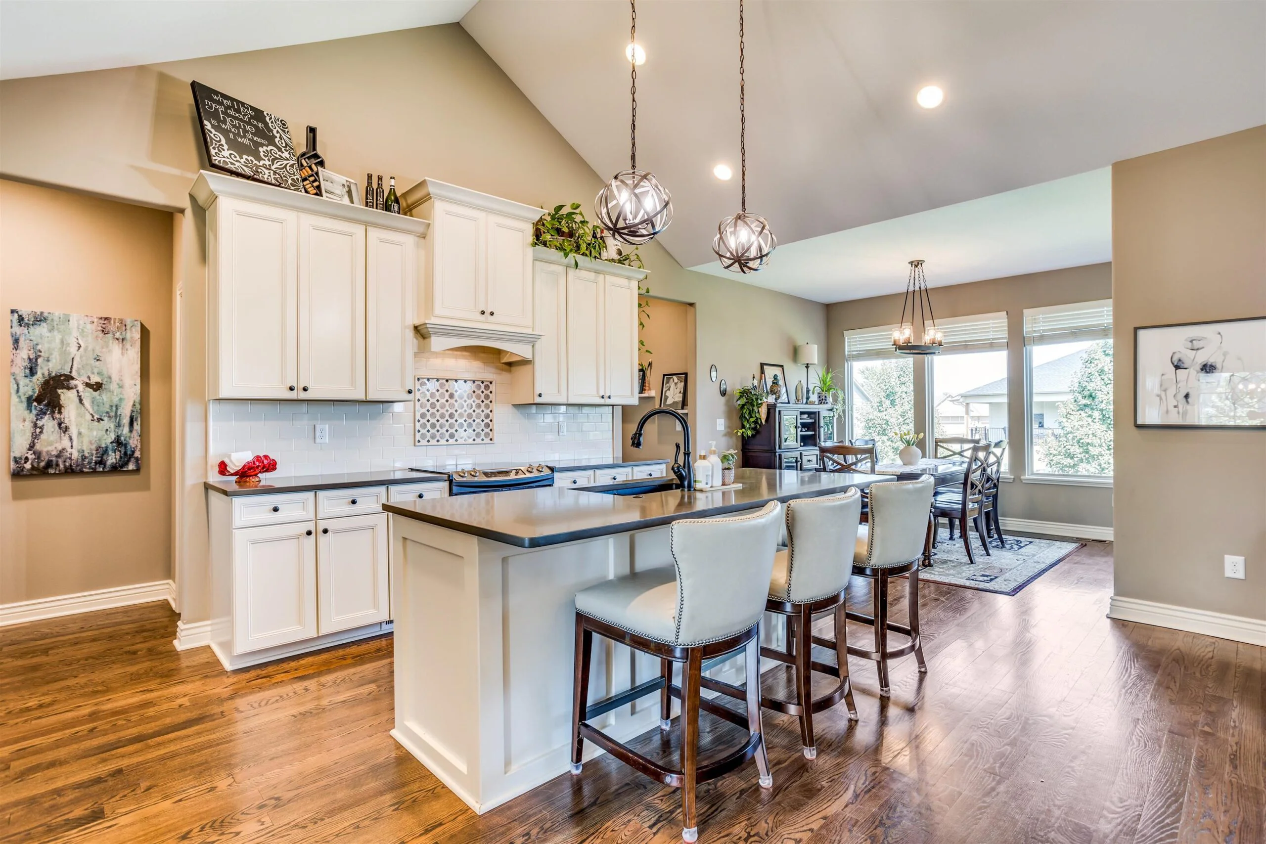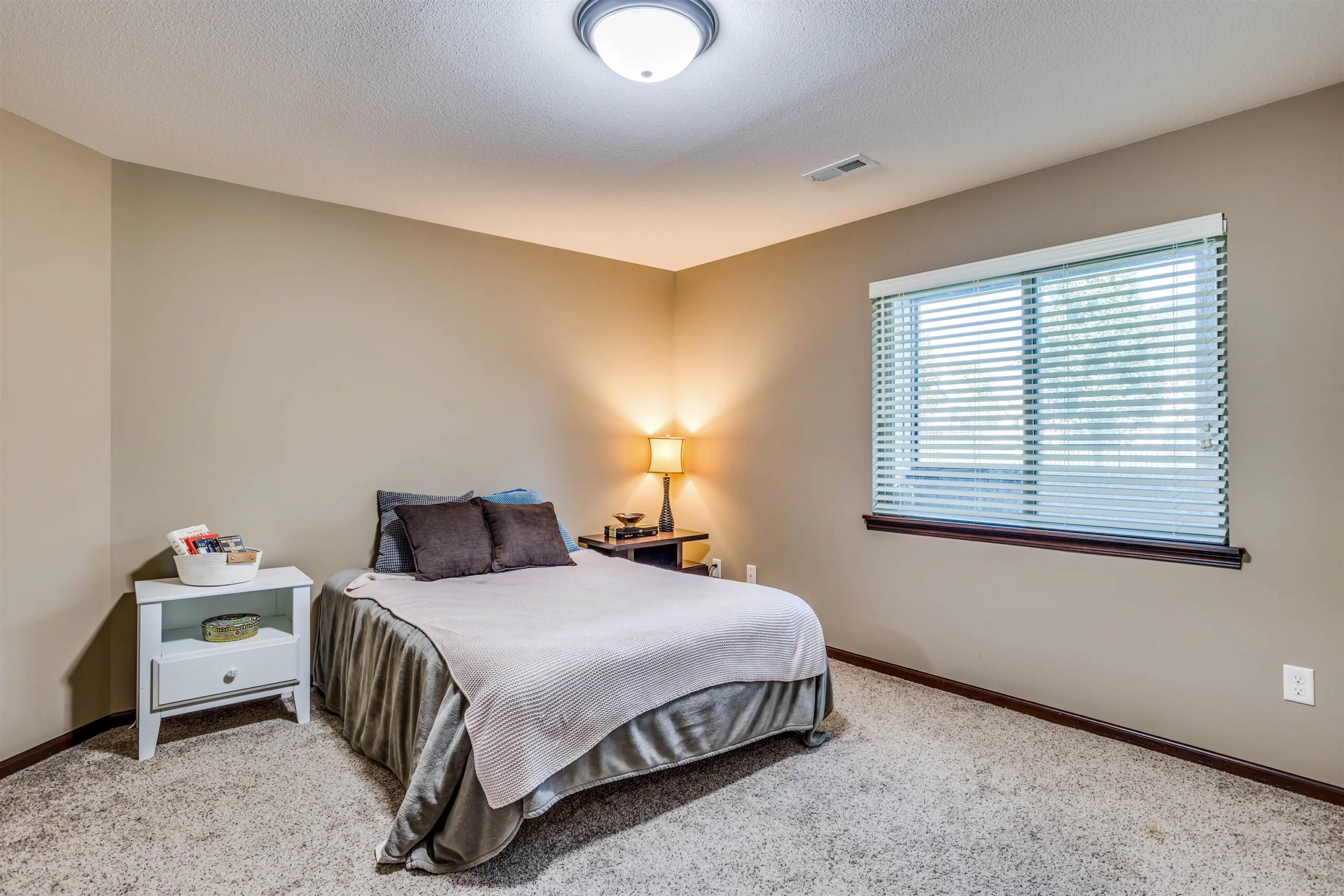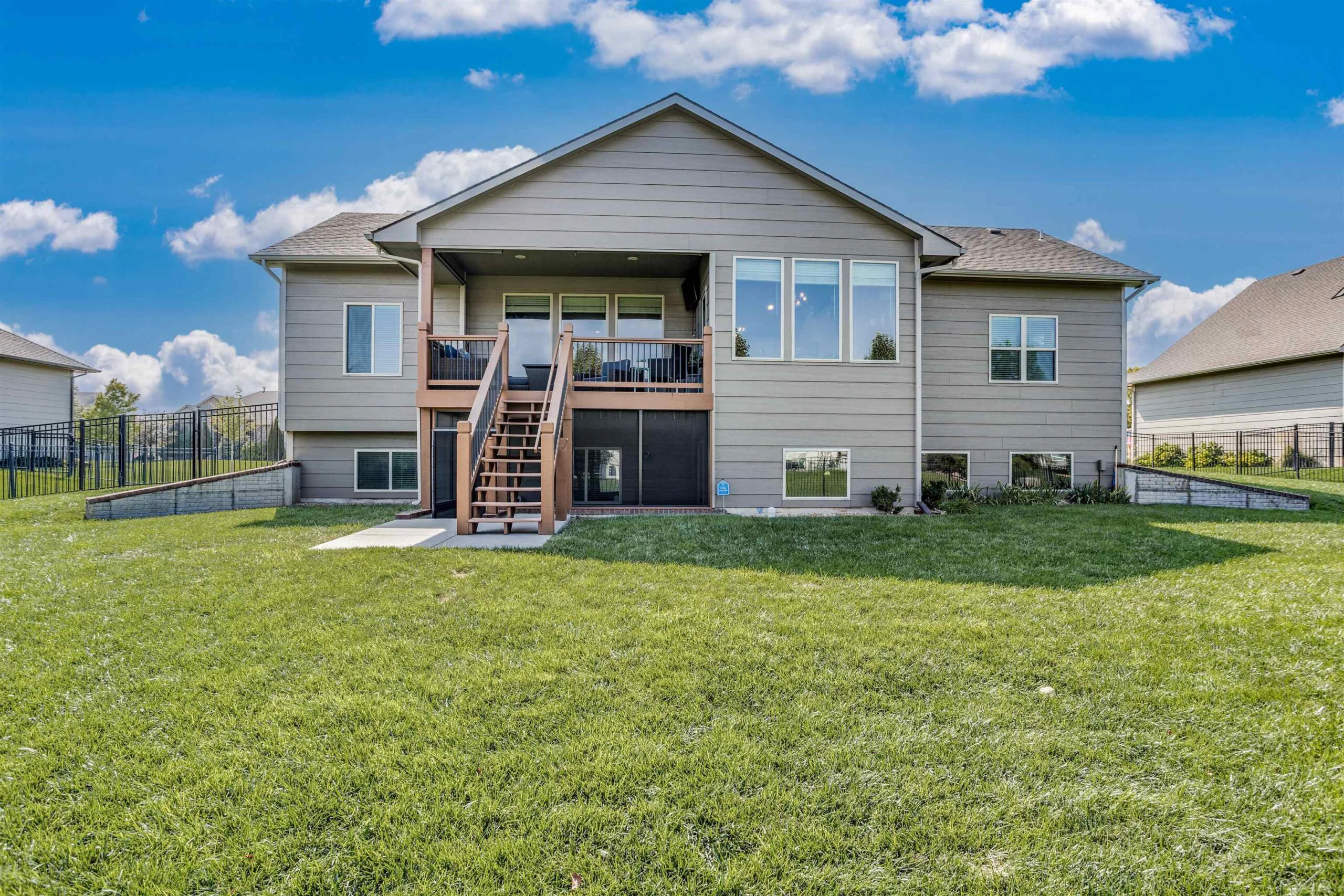 Welcome to your dream home in the highly sought-after neighborhood of Fontana, located int the city of Wichita and within the esteemed Maize school district. This meticulously maintained residence features 5 spacious bedrooms and 3 full bathrooms, offering ample space for family and guests. As you enter, you'll be captivated by the living room's vaulted ceilings and large picture windows that flood the space with natural light. The cozy gas fireplace, adorned with a stunning stone surround and mantle, creates the perfect atmosphere for relaxation. The heart of the home is the expansive kitchen, complete with a large island, elegant quartz countertops, and a walk-in pantry with an e-station—ideal for meal prep and organizing. Retreat to the luxurious master suite, which boasts a private bath featuring a soothing soaker tub, a beautiful tile wall shower, and a generous walk-in closet with convenient access to the laundry room. Step outside to enjoy the covered deck, perfect for outdoor gatherings, and take advantage of the fully finished walk-out lower level that includes a large family room with a wet bar—ideal for entertaining. This level also offers two spacious bedrooms and a well-appointed hall bath, along with plenty of storage space for all your needs. The covered, screened-in patio provides a serene spot to unwind, while steps lead you up to a fenced backyard, perfect for children or pets to play freely. This home truly combines comfort, style, and functionality in a prime location—don’t miss your chance to make it yours! Some information may be estimated and is not guranteed. Please verify schools with USD 266.