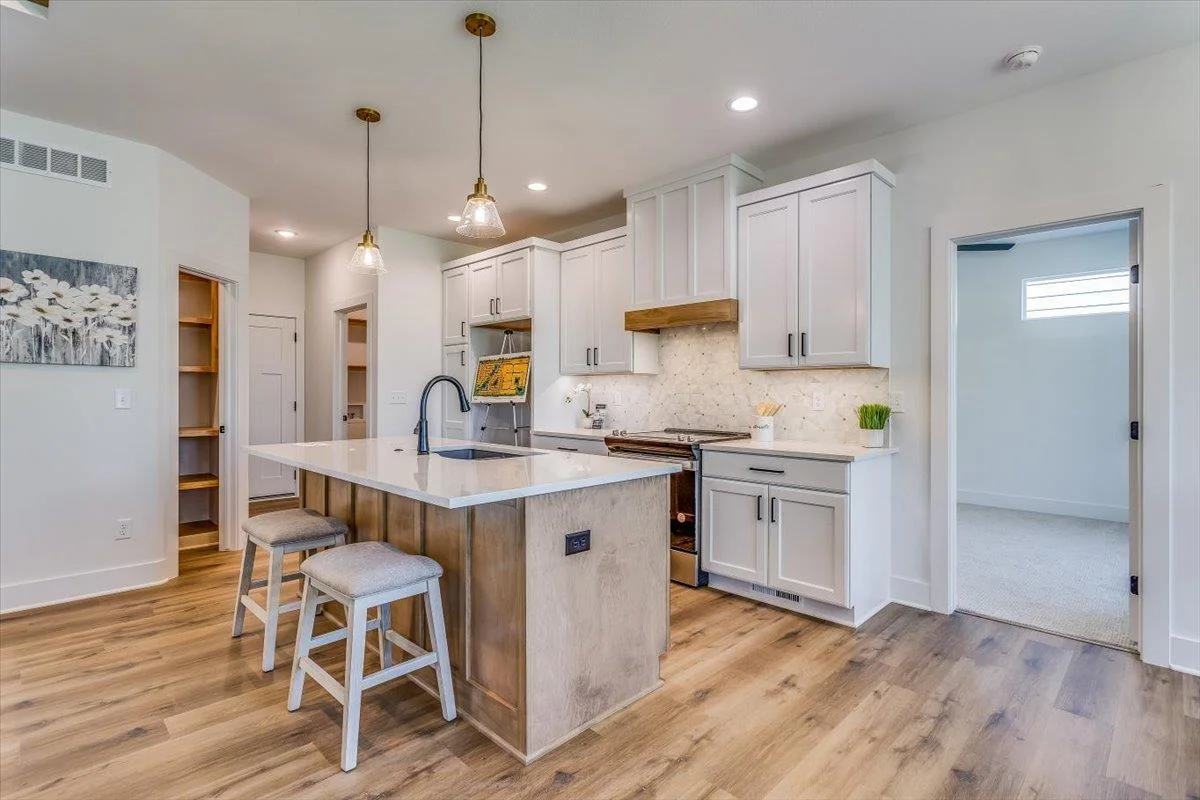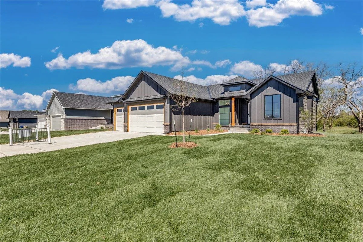 $7,000 Fall Parade of Homes Incentive! (discount already taken off MLS price.)Ultra Modern, functional and practical split bedroom home. 3 bedroom, 2 bath 3 car garage with open kitchen, living dining combo! Kitchen Island overlooks dining and living space with plenty of space to entertain. Kitchen features a walk-in pantry with plenty of storage and space to move around while cooking. Living room features access to covered deck overlooking back yard. Both kids rooms are on the other side of home. Master bedroom overlooks back yard with custom ceiling feature. Master bath has large shower with his and her vanities with nice size walk-in closet. Basement is unfinished with a possible family room, bathroom and 2 more bedrooms that can be finished for additional cost. Custom landscaping and sprinklers are included! Home is new construction and taxes have not been levied yet, you must call county to get accurate property tax info. All information deemed reliable, but not guaranteed.