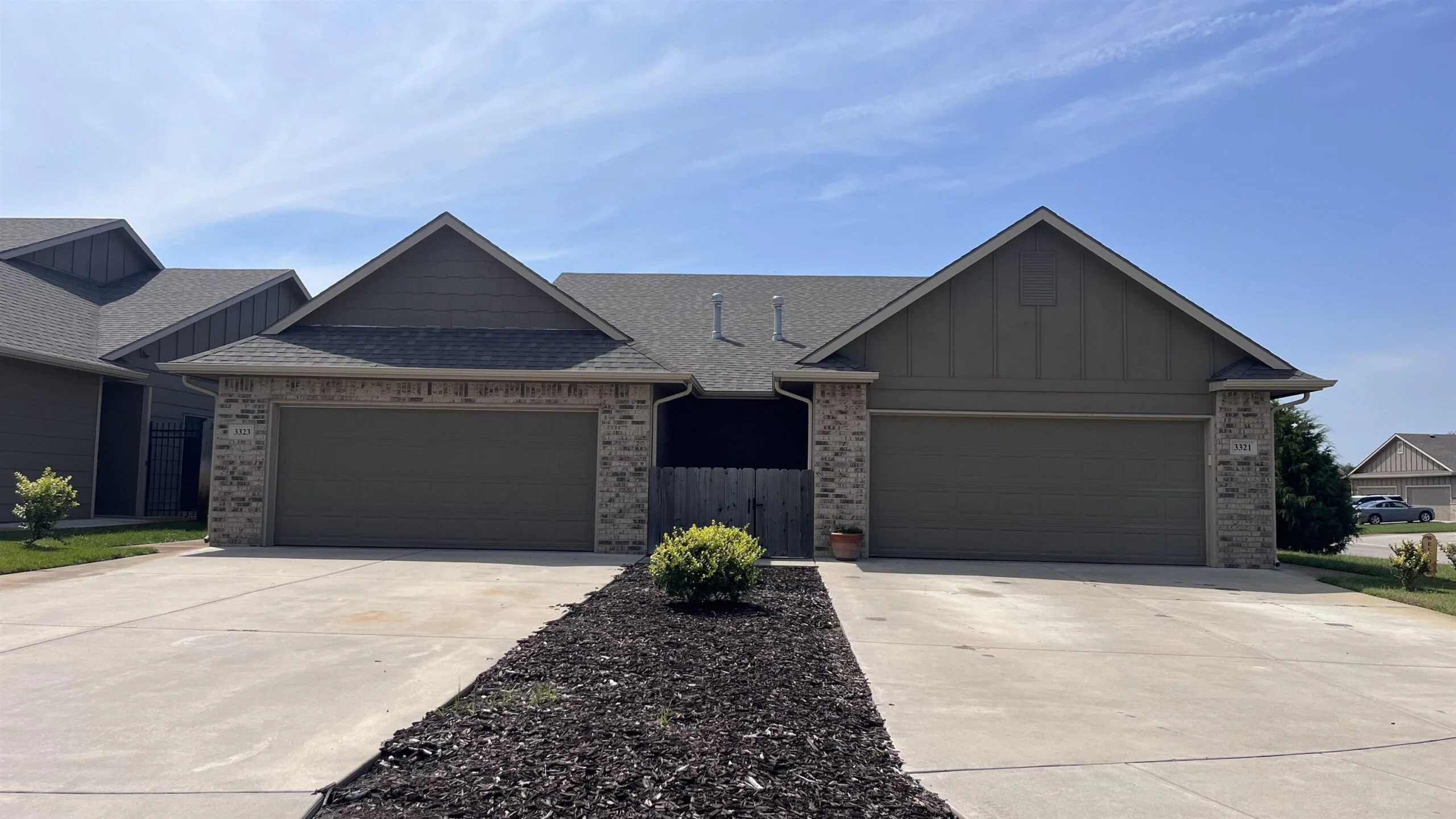 This is a great investment property between Wichita and Derby. Both sides are currently rented. This is a 3 bedroom, 2 bathroom, 2 car garage duplex. It is a nice corner lot in a quiet and well kept neighborhood. HOA takes care of lawn care and sprinkler maintenance. Due to both sides being occupied by tenants please be courteous about showing times. Must give at least a 24 hour notice for showings. Information is deemed reliable but not guaranteed.