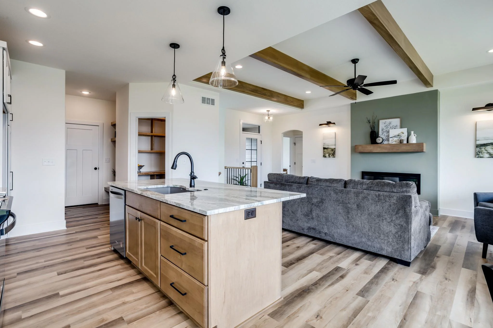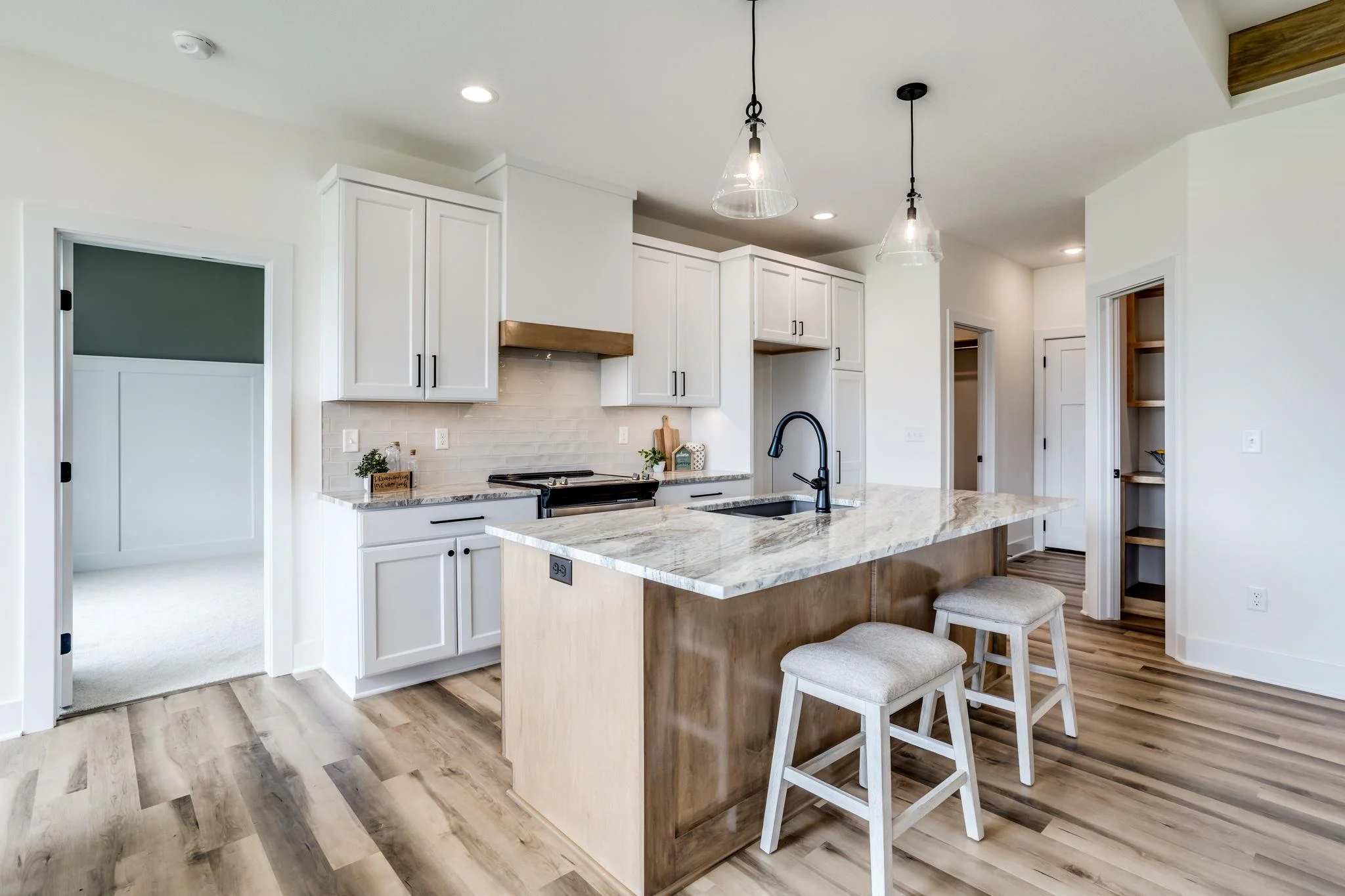Welcome to the Magnus 2 one of the most popular M&M Construction designs. Split three bedroom two full baths on the main floor. Great Room has electric fireplace, wood beams and luxury vinyl flooring and is open to the kitchen and dining. The kitchen features a center island, walk-in pantry, quartz countertops, luxury vinyl flooring and drop zone with bench at the garage entry. Dining is located adjacent to the kitchen and gives you a nice view of your large backyard. Owner's suite and bath have walk-in closet, double vanity with quartz countertop and shower. Lower lever has finished family room, two additional bedrooms, full bath and plumbed for future wet bar. This home has a 3-car garage, covered deck, lower patio, sprinkler system, lawn, and landscaping included in the price. Information deemed reliable but not guaranteed and may be changed without prior notice.