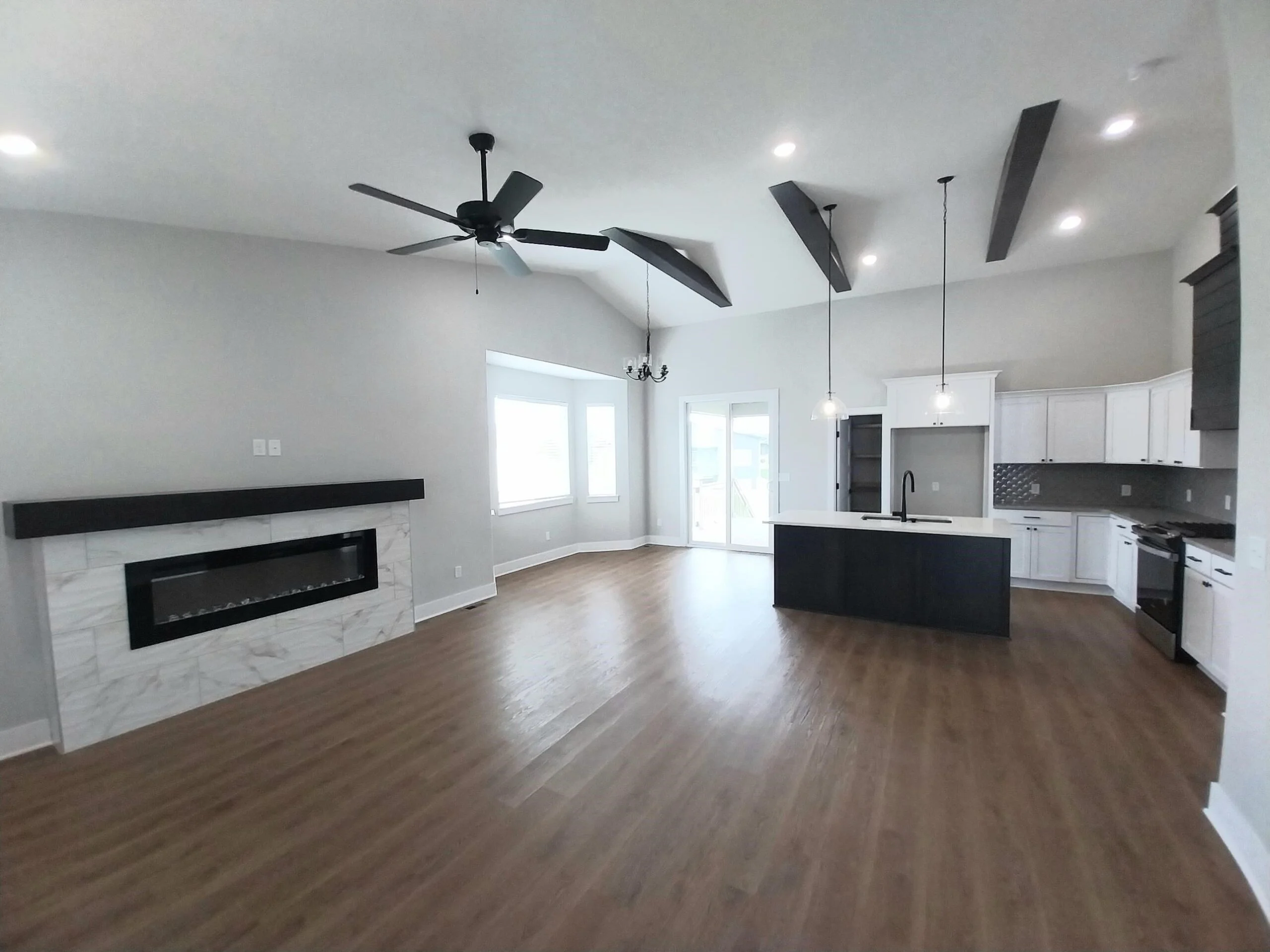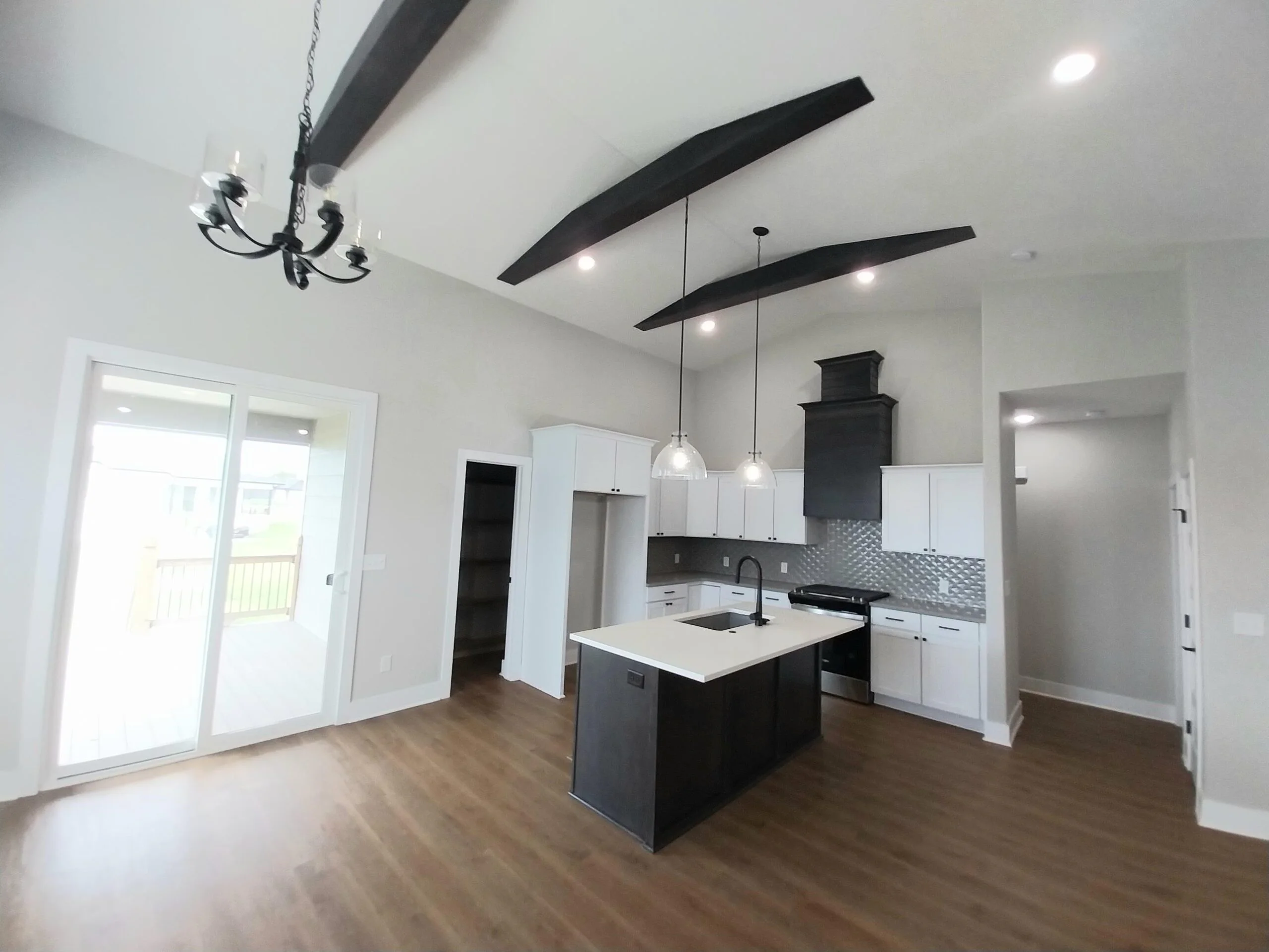 $7,000 Fall Parade of Homes Incentive! (discount already taken off MLS price.)Modern design on this home on a huge lot! Designed for the family in mind! Large Kitchen with open floorplan with slow close cabinets and walk-in pantry. Luxury vinyl flooring in living, kitchen and dining with electric LED fireplace and quartz surround. Iron fencing with walkout basement and covered deck and 2 patios! Master bedroom features his and her sinks, custom tile walk-in shower with walk-in closet. 4 car tandem garage that is 49 foot deep! High efficiency heating and A/C with tankless hot water heater. This home also has 2 more large basement bedrooms for a growing family with large family room in basement and finished wet bar and walk out door to back yard. A must see for any size family. All information deemed reliable, but not guaranteed. Call Realtor for showing