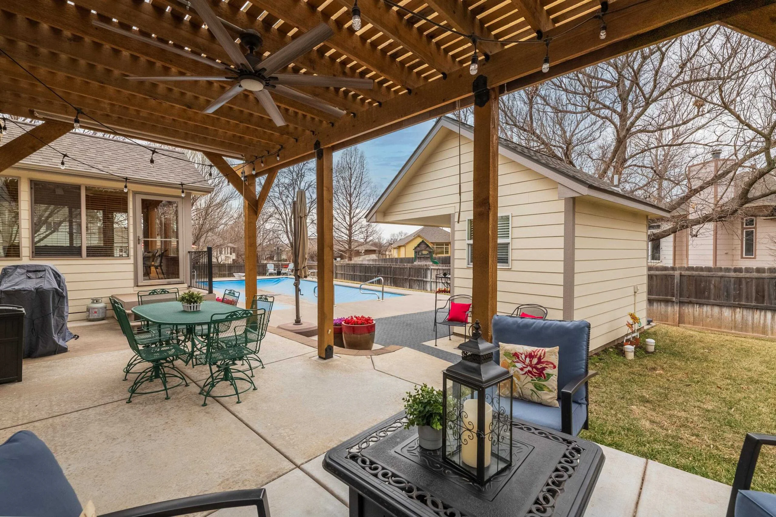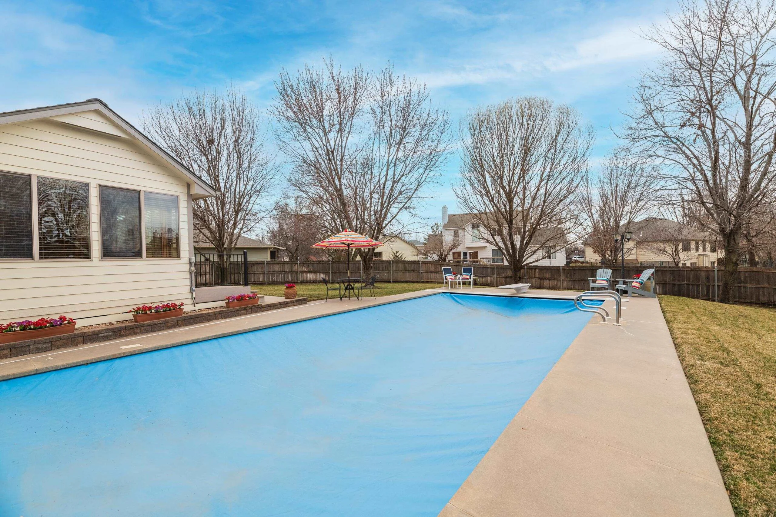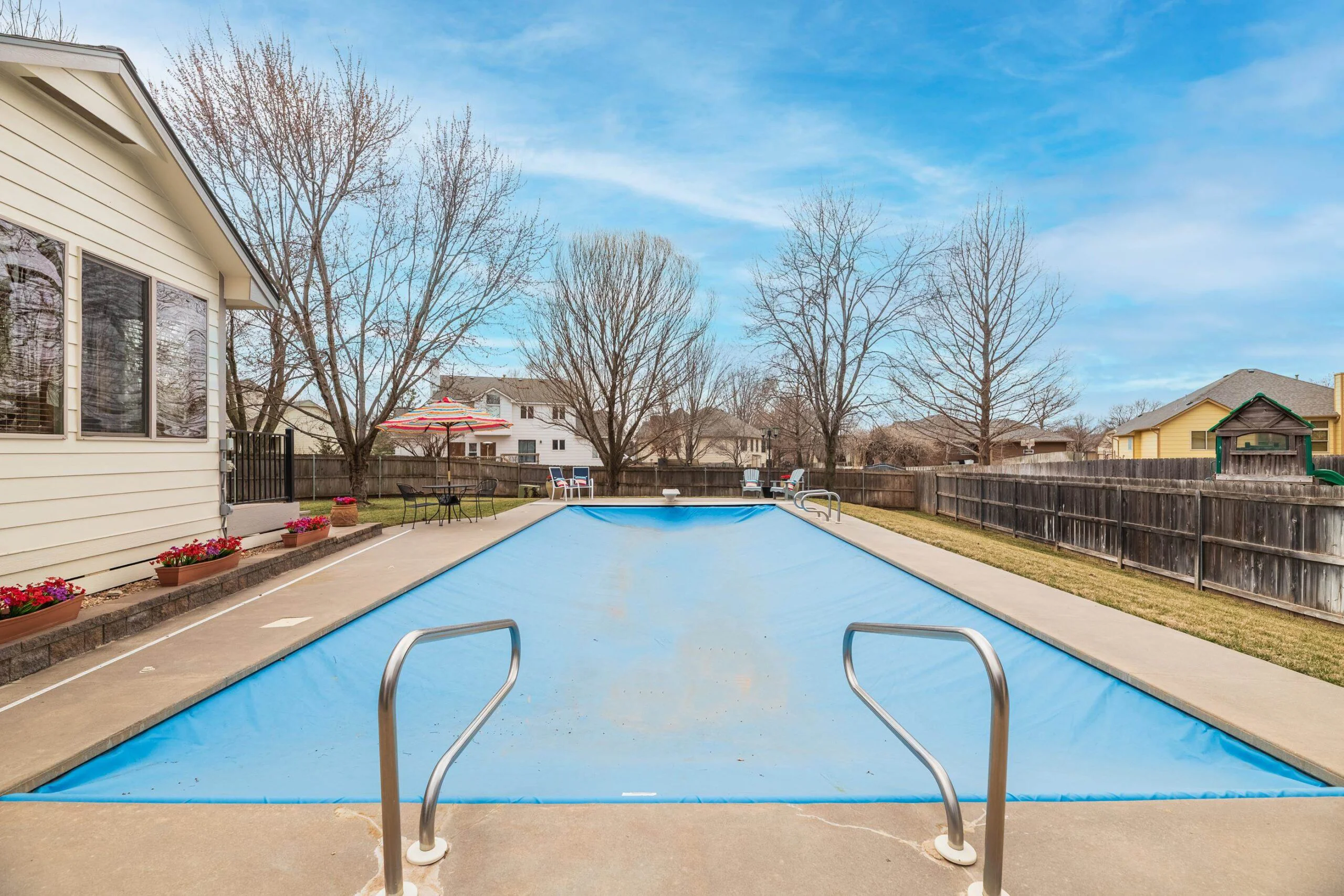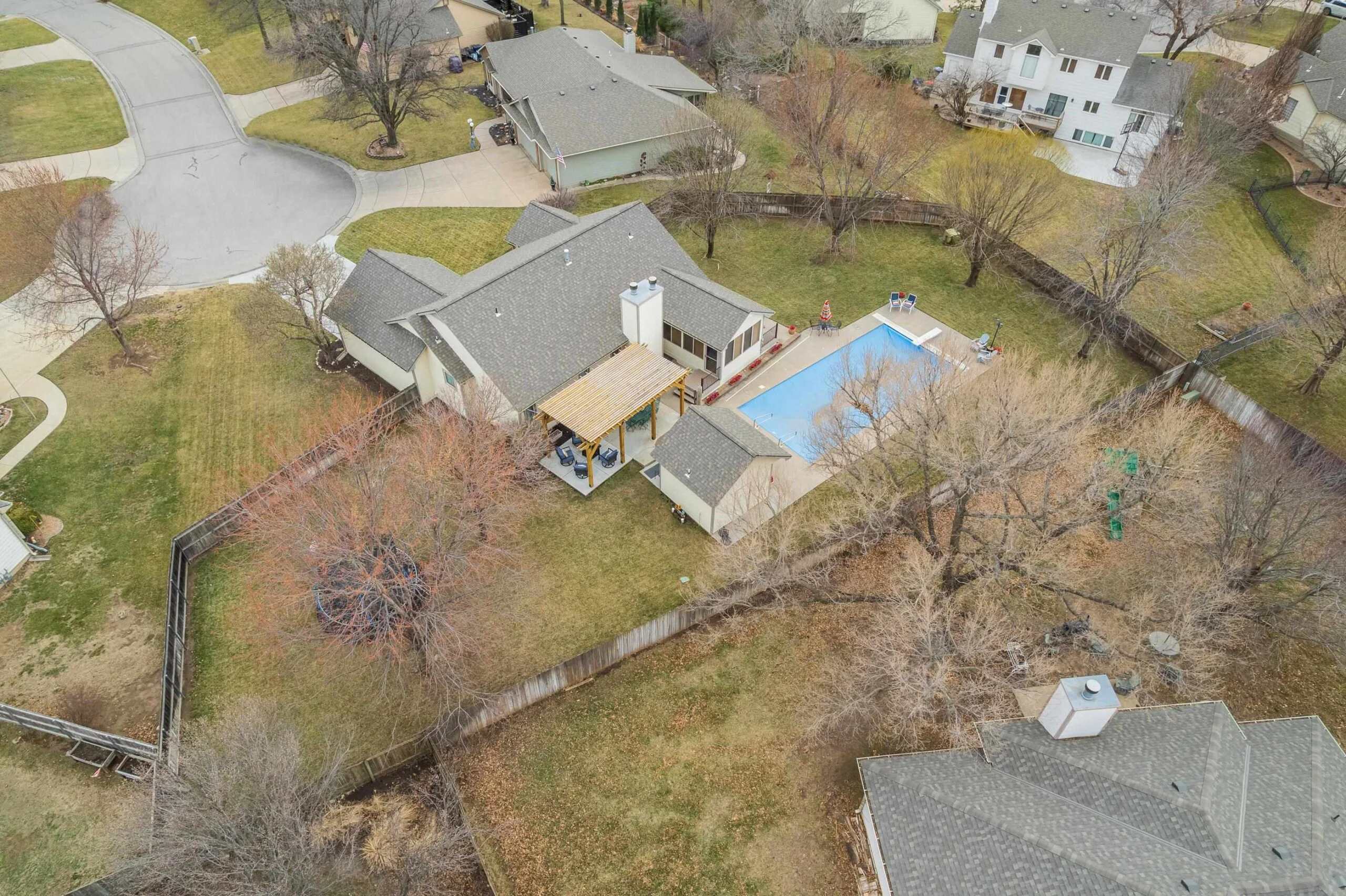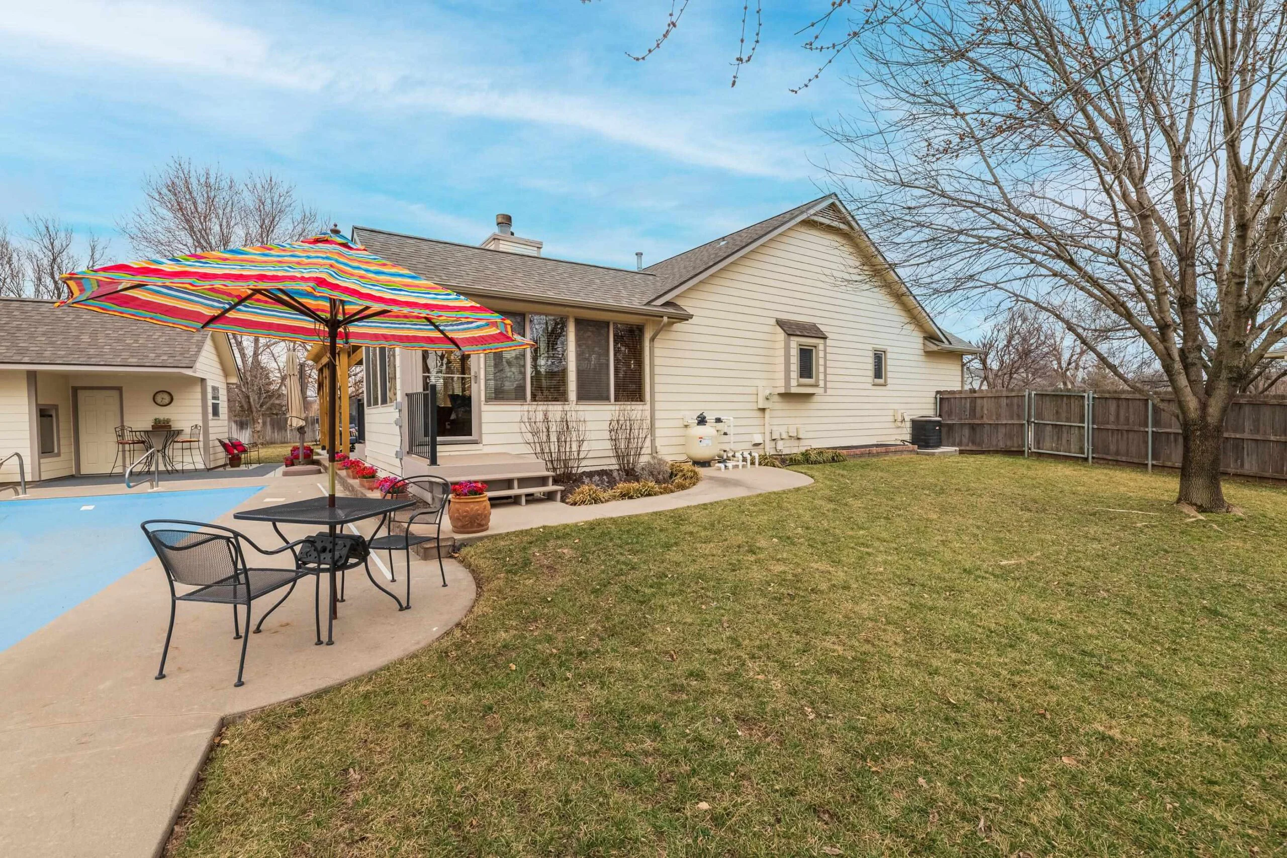 This beautiful home in Bay Country is located within the desirable Goddard school district. Inviting open concept living room with hardwood floors and a wood/gas fireplace. Upgraded kitchen with granite countertops. Retreat to your primary suite, complete with an en-suite bathroom. Basement finish includes a family room with wood/gas fireplace, bedroom and full bath. The large storage area in basement includes an unfinished 5th bedroom with egress. Enjoy a sun-drenched bonus sunroom, an addition off the dining room, perfect for morning coffee or evening cocktails. Step outside into your own private backyard oasis! Imagine endless summer days spent lounging by the sparkling in-ground pool, with a convenient pool house boasting a bathroom and storage. Entertain in style under the expansive pergola-covered patio, all nestled within a sprawling, treed lot. Don't miss a chance to make it yours!