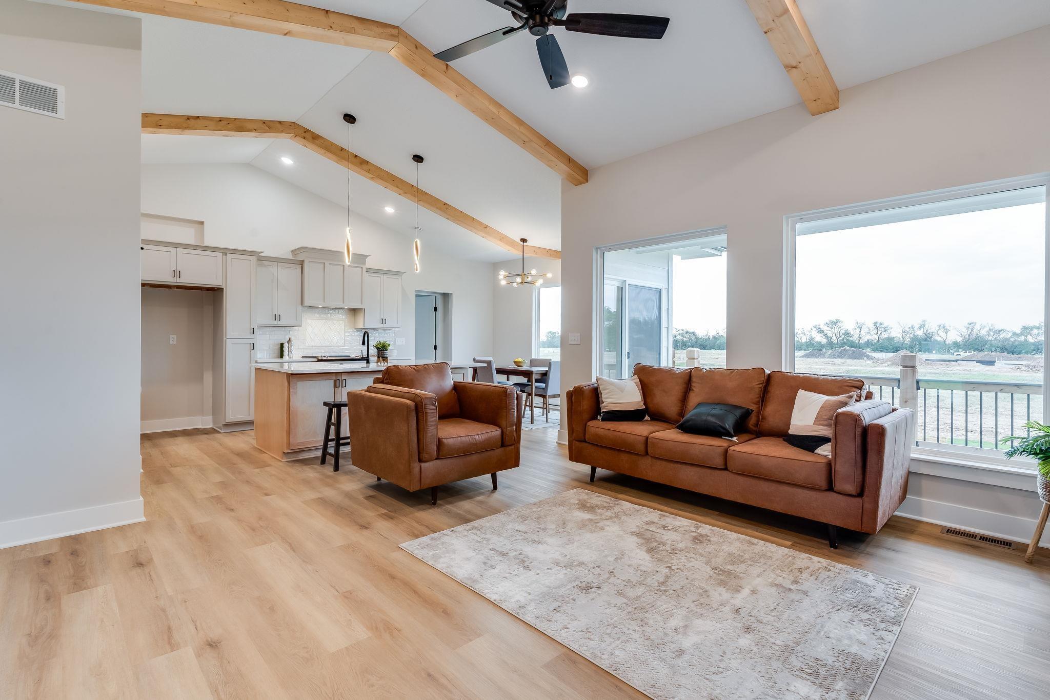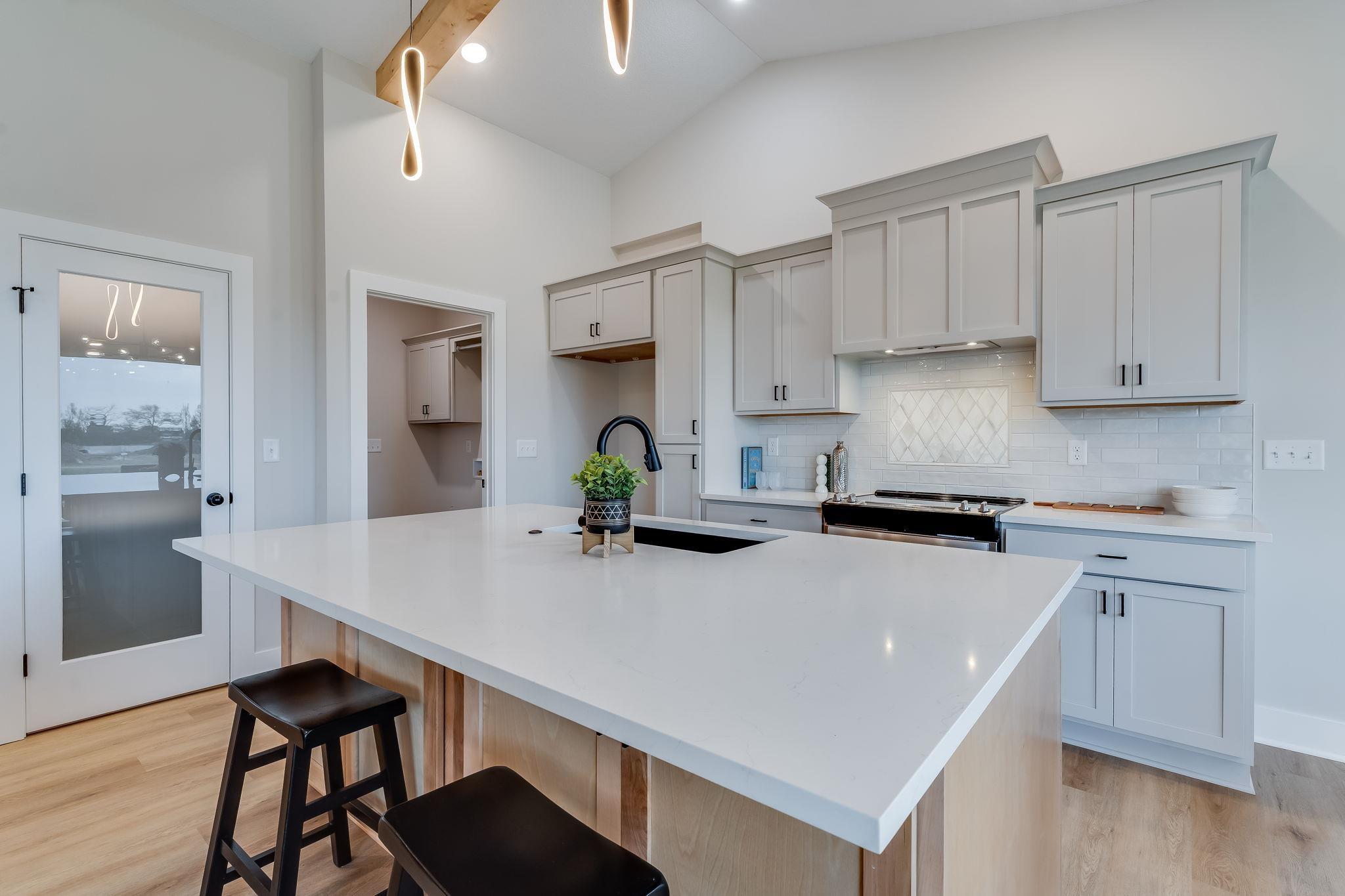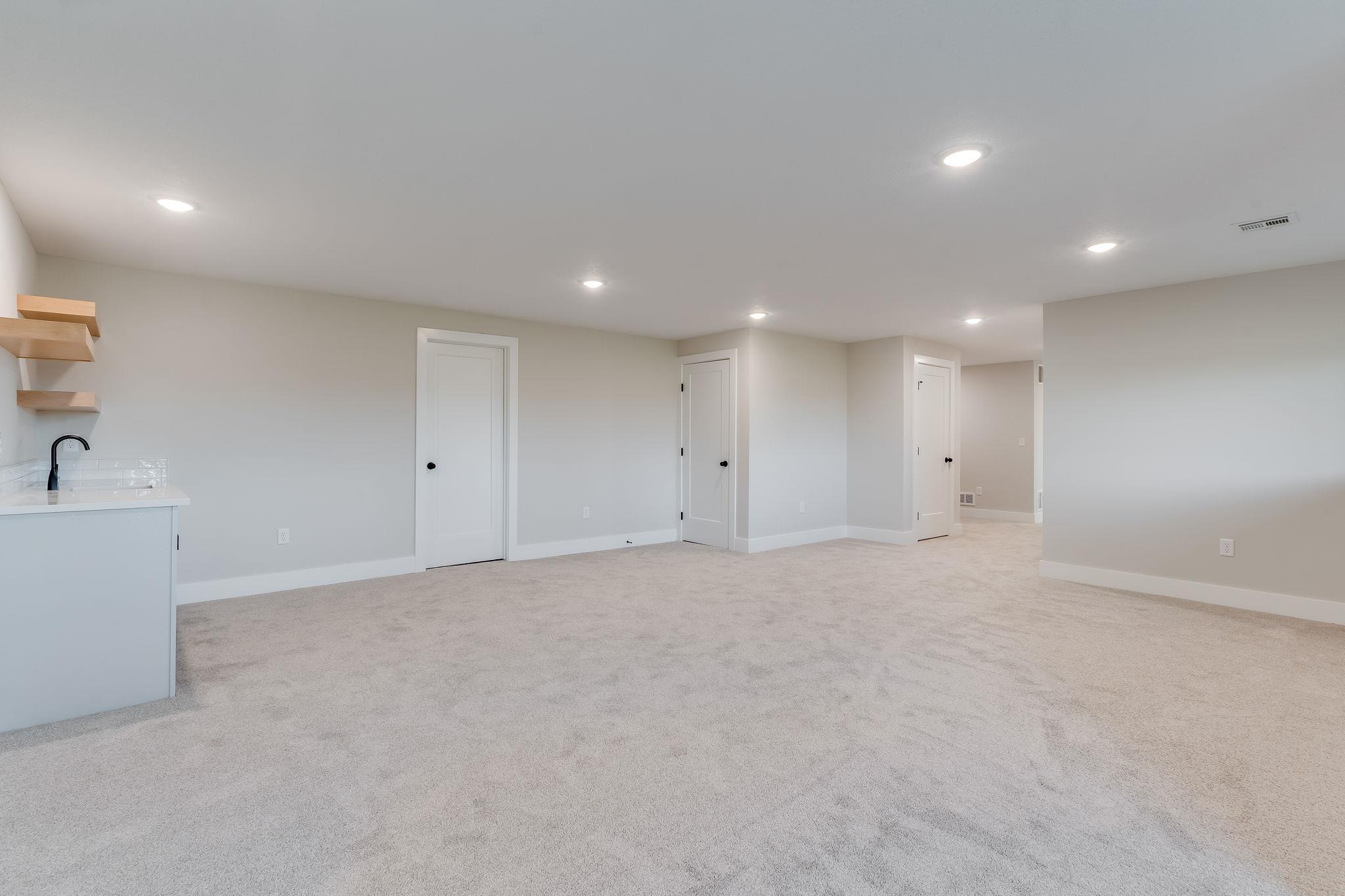 Open Floorplan, great for entertaining! 3 bedroom, 2 bath 3 car garage with open kitchen, living, dining combo. Kitchen Island overlooks dining and Vaulted living space with plenty of space to entertain. Kitchen features a pantry and island. Living room features access to covered deck overlooking back yard. This is a split bedroom plan. Master bedroom has a custom ceiling feature. Master bath has large shower with his and her vanities with nice size walk-in closet. Basement finish includes two additional bedrooms, family room, full bathroom and wet bar. Sod, sprinklers and landscaping is included! Information deemed reliable but not guaranteed.