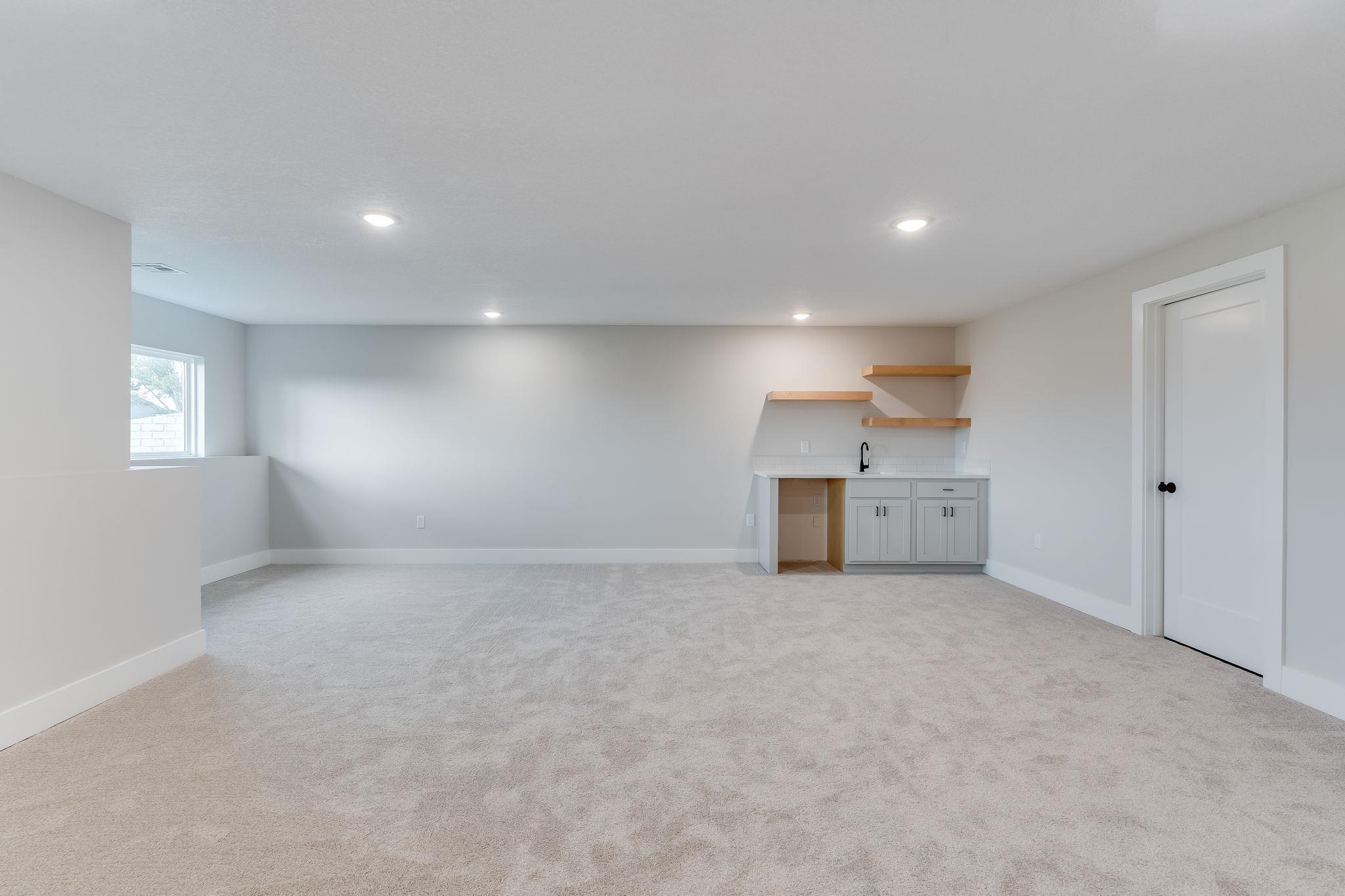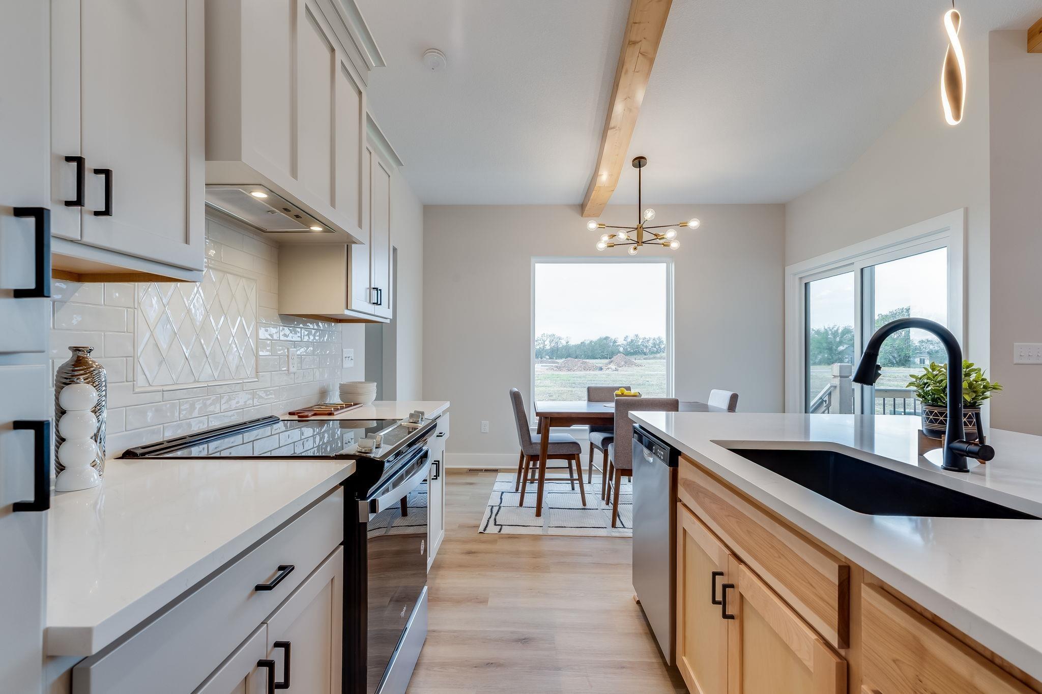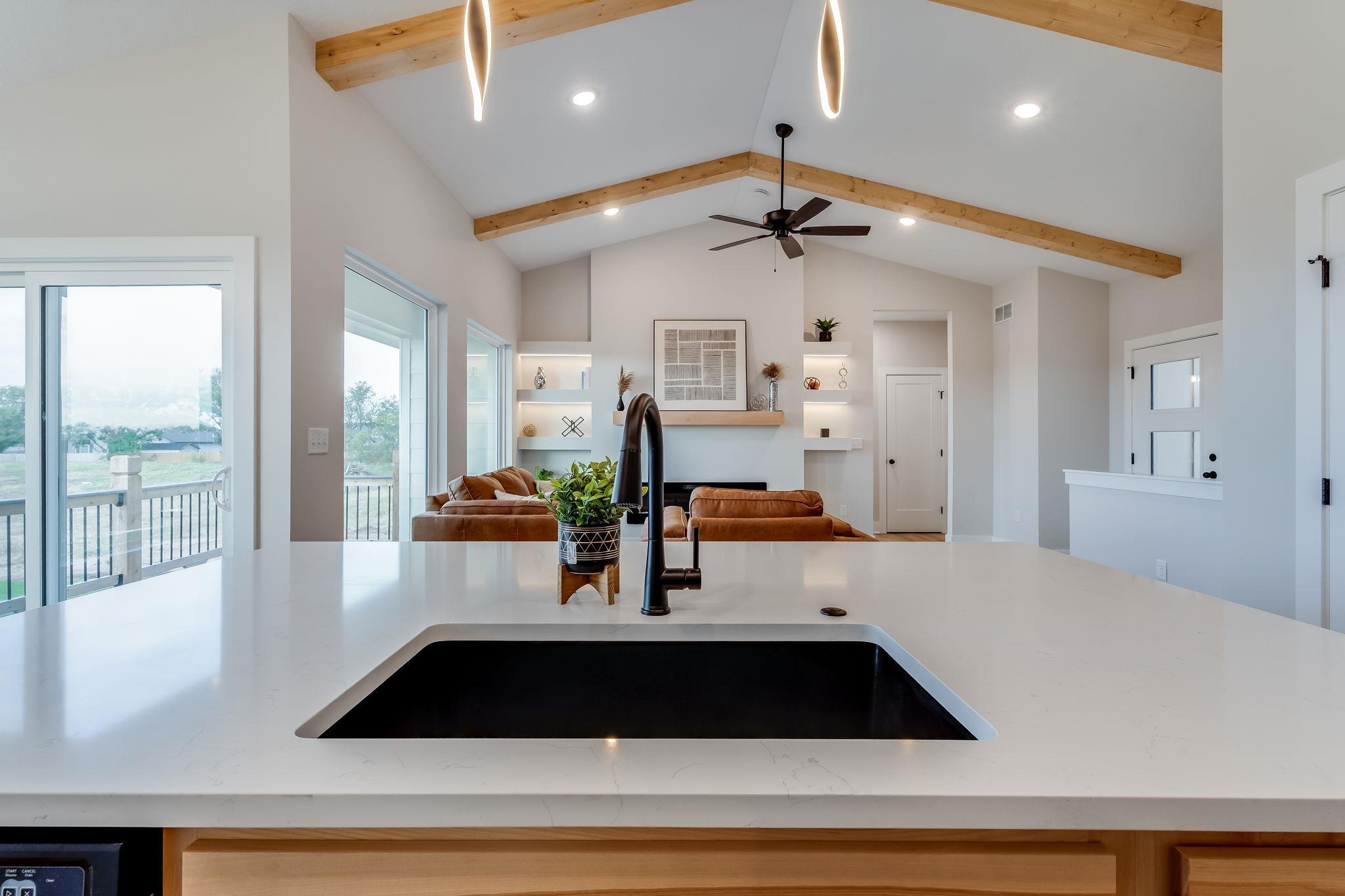Open Floorplan, great for entertaining! 3 bedroom, 2 bath 3 car garage with open kitchen, living, dining combo. Kitchen Island overlooks dining and Vaulted living space with plenty of space to entertain. Kitchen features a pantry and island. Living room features access to covered deck overlooking back yard. This is a split bedroom plan. Master bedroom has a custom ceiling feature. Master bath has large shower with his and her vanities with nice size walk-in closet. Basement finish includes two additional bedrooms, family room, full bathroom and wet bar. Sod, sprinklers and landscaping is included! Information deemed reliable but not guaranteed.