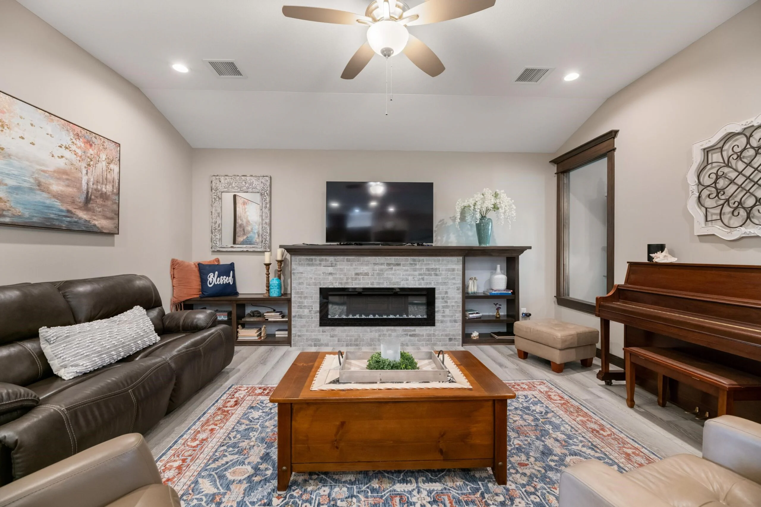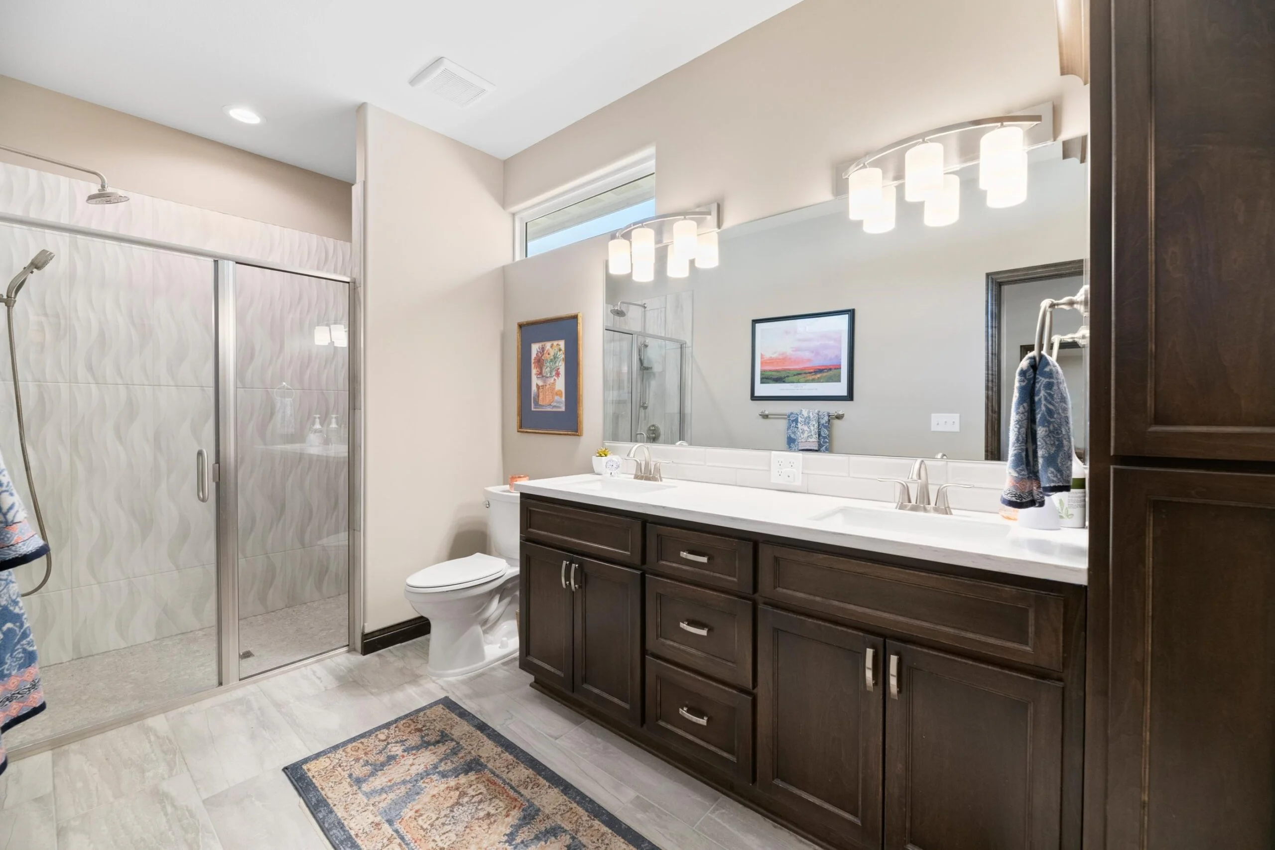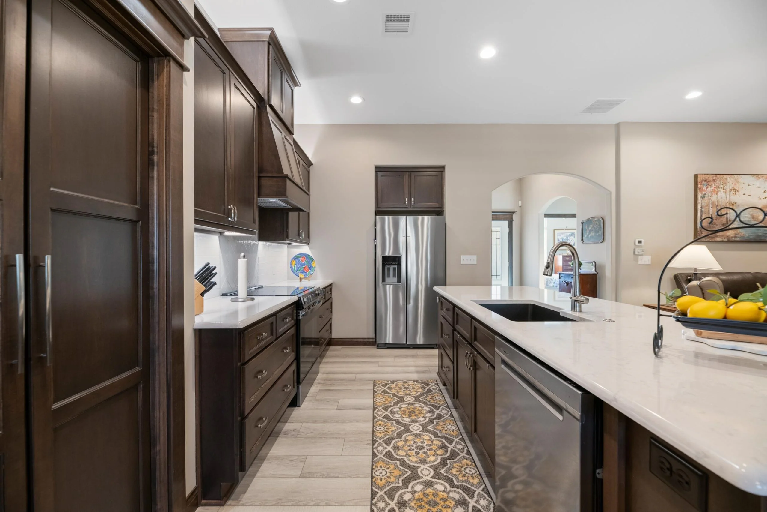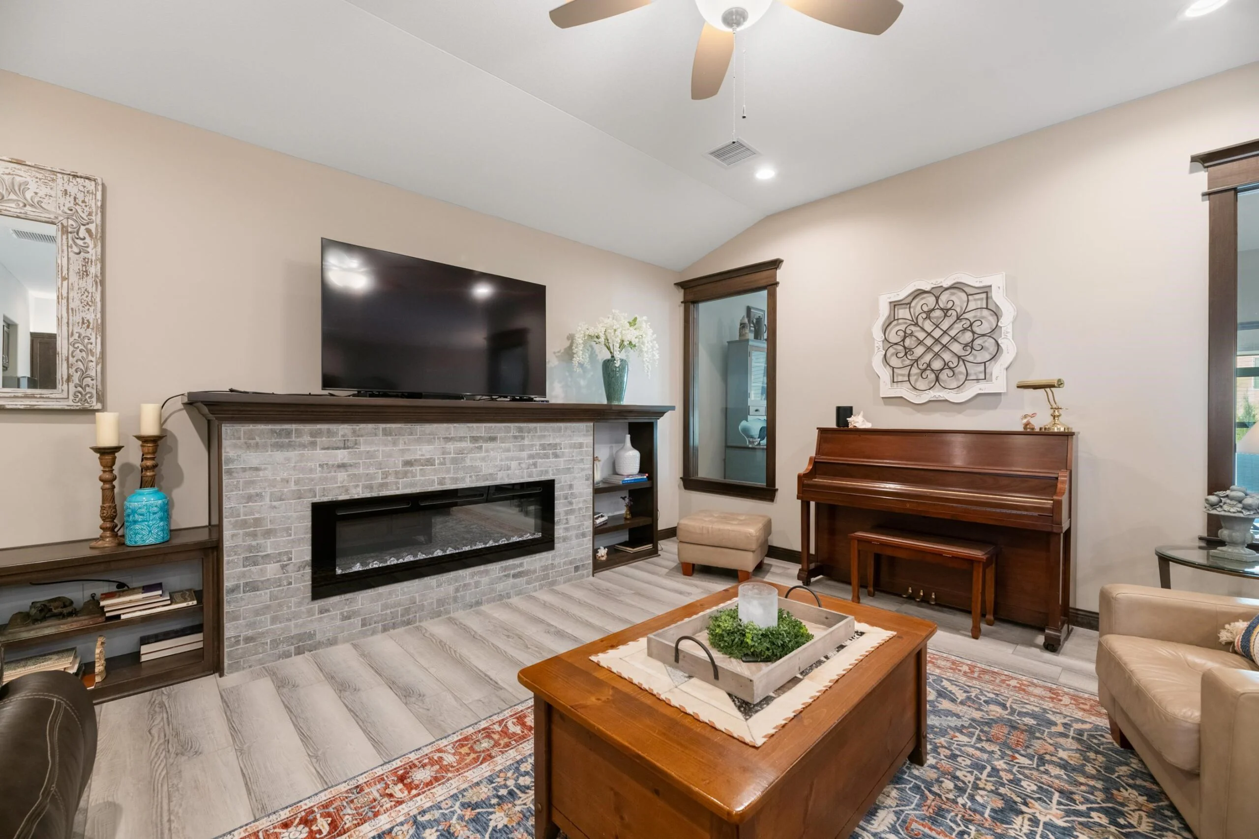 Available Now! This beautiful zero entry Siena by Mullin Inc is ready to call home. Open kitchen, living and dining room. Kitchen with quartz counter tops, huge island for sitting/serving and lots of storage in 7' walk-in pantry. New upgraded stainless steel dishwasher, and range. Living room includes a linear fireplace and built-in bookcases. Primary suite with vaulted ceiling, custom tile shower, double vanities and spacious master closet that doubles as a safe room. Spacious bedrooms will accommodate king sized beds and additional furniture or desk. The added sunroom gives you a bonus space for additional tv/sitting area, office, exercise or hobby room. Relax on your large glass/screened 3 season patio that includes solar shades. Custom light filtering dual window shades stay. Low HOA dues include lawn care and sprinkler maintenance, snow removal, trash service and irrigation (community wells) for yard. Siena Lakes community has walking paths around the lakes and fishing. All information deemed reliable but not guaranteed.