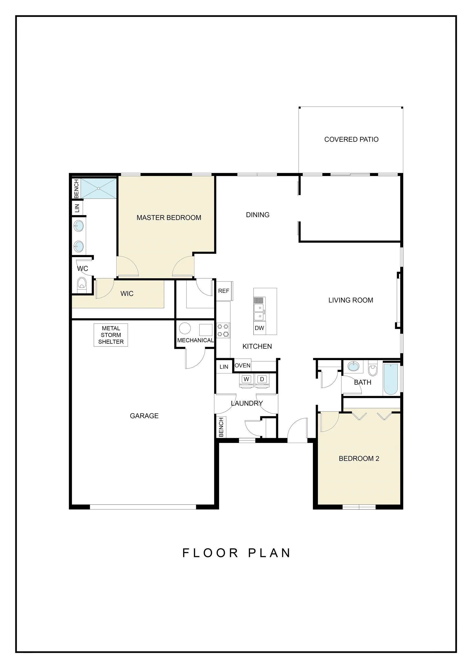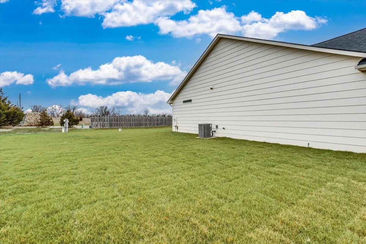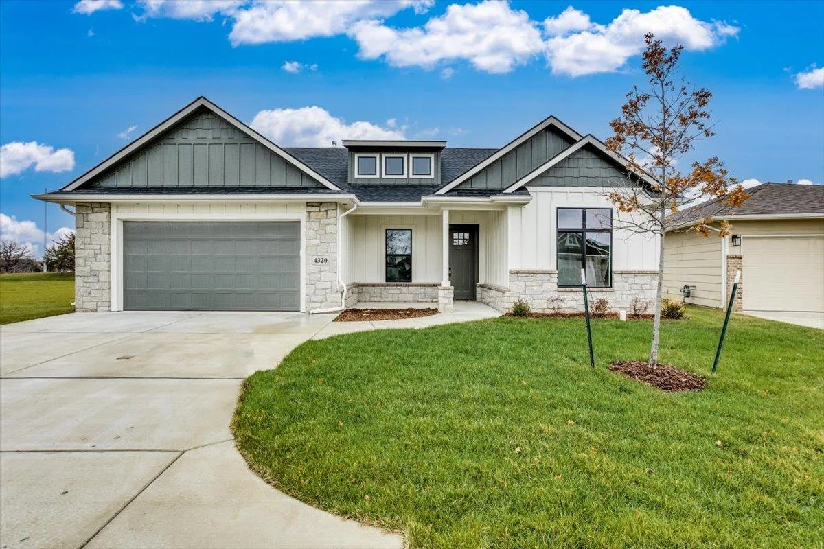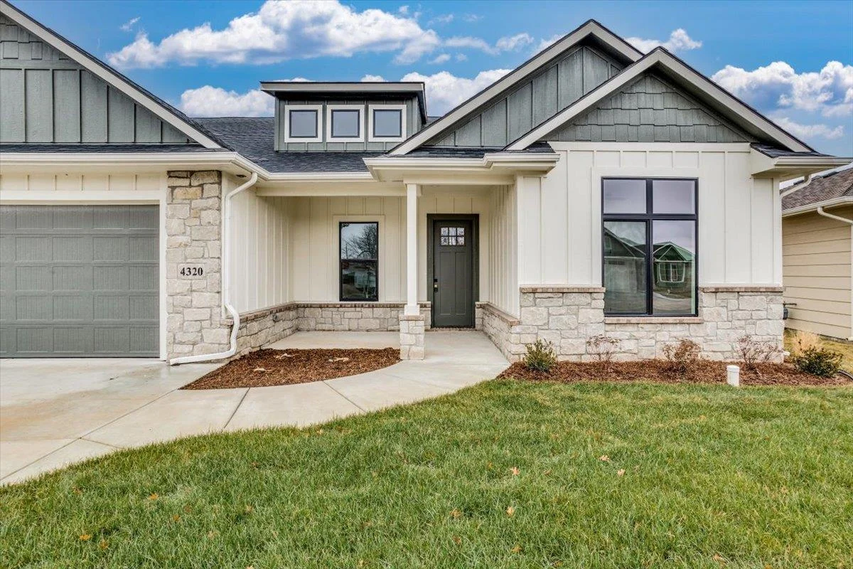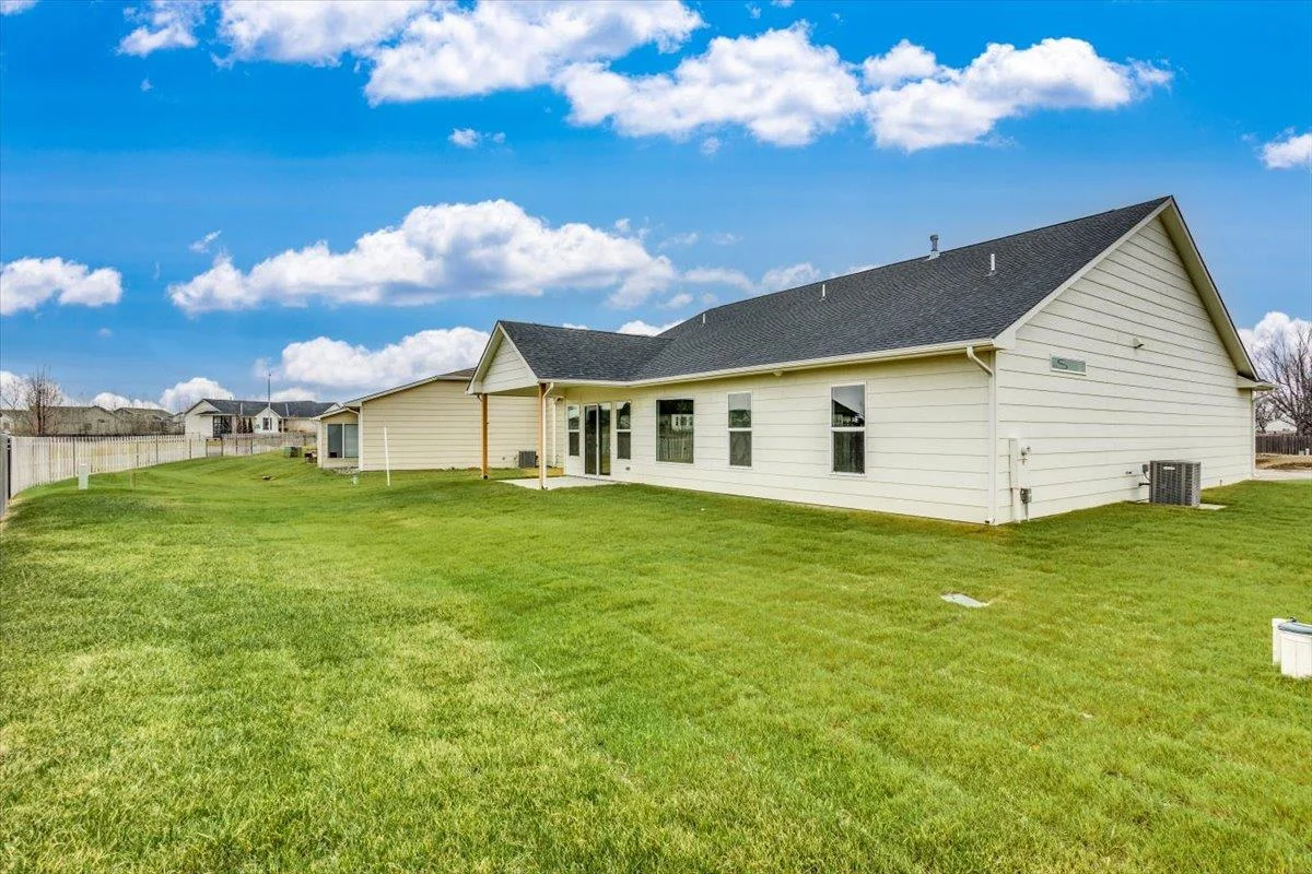 Brand new patio home plan with 2 bedrooms, 2 baths, sunroom, and oversized 2 car garage! Includes storm shelter in garage. In Edgewater Patios, the homeowners have control over their own well and sprinkler systems, so you determine when and how much you water. Information deemed reliable but not guaranteed and may change without notice. Room sizes estimated. Taxes estimated and shown on vacant lot. Specials may not be entirely spread yet on this lot. HOA dues go under annual review and may change. There is a $250 mailbox fee collected at closing. One member of Wells Construction LLC is licensed realtor in state of Kansas.