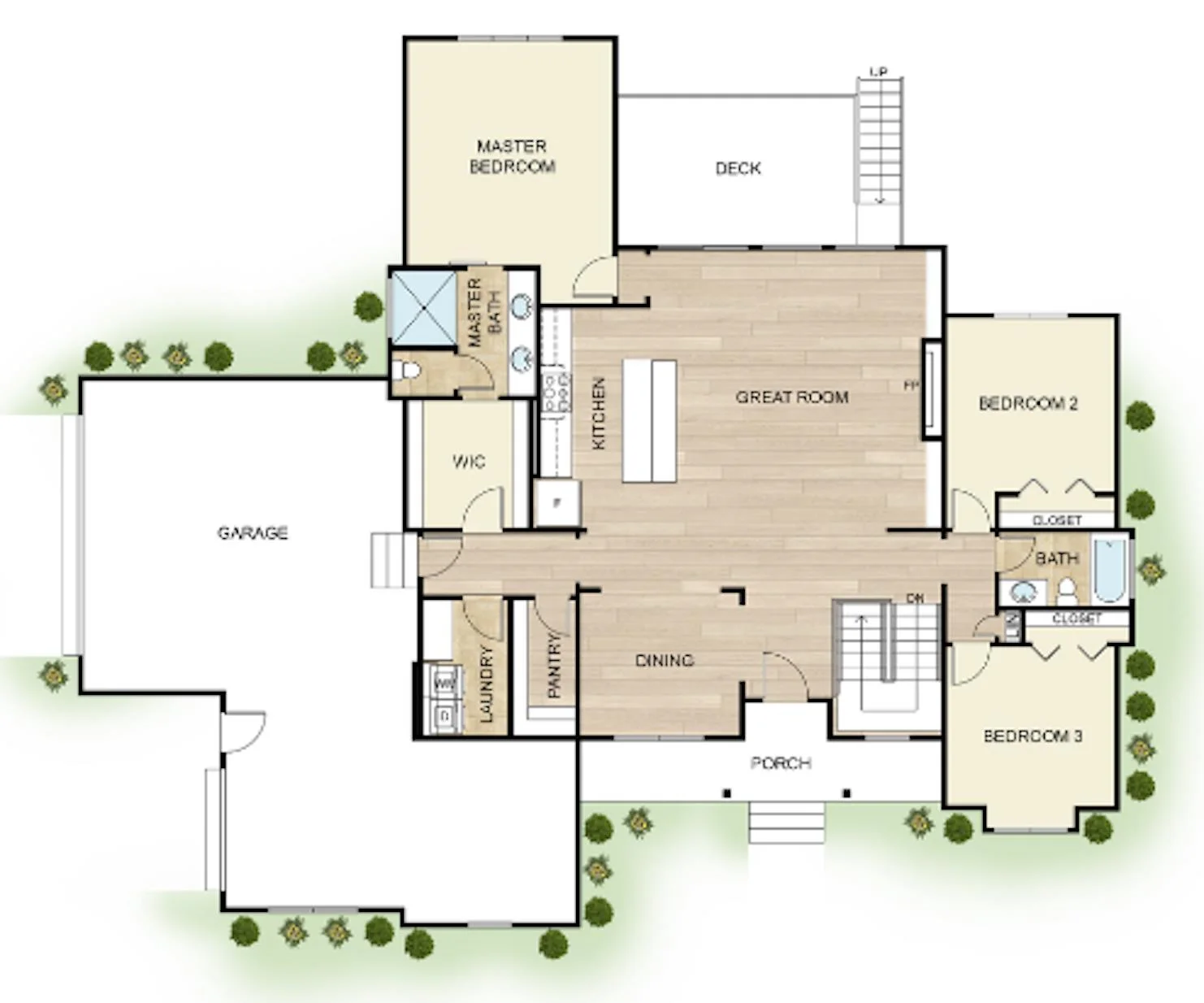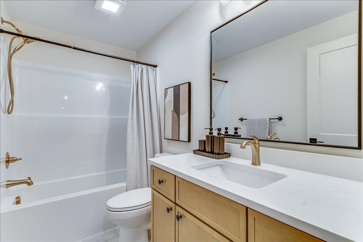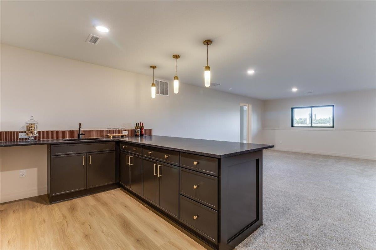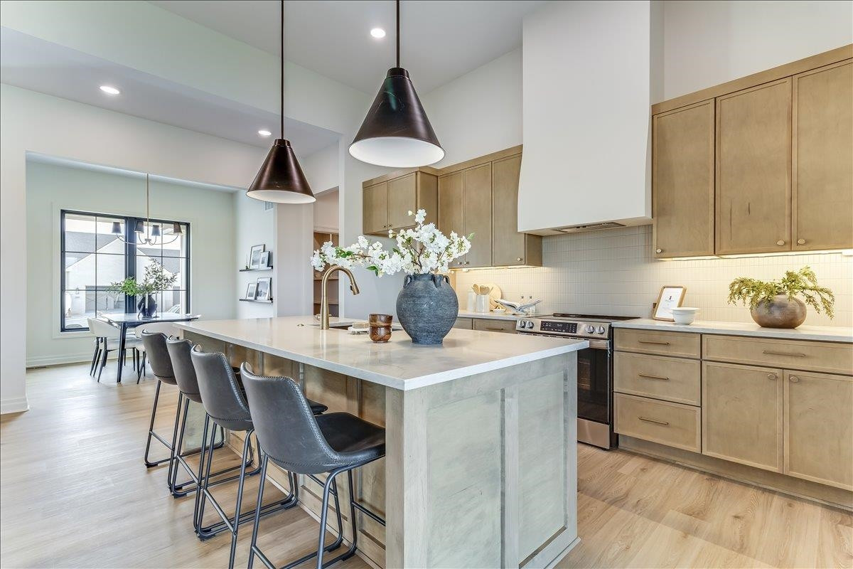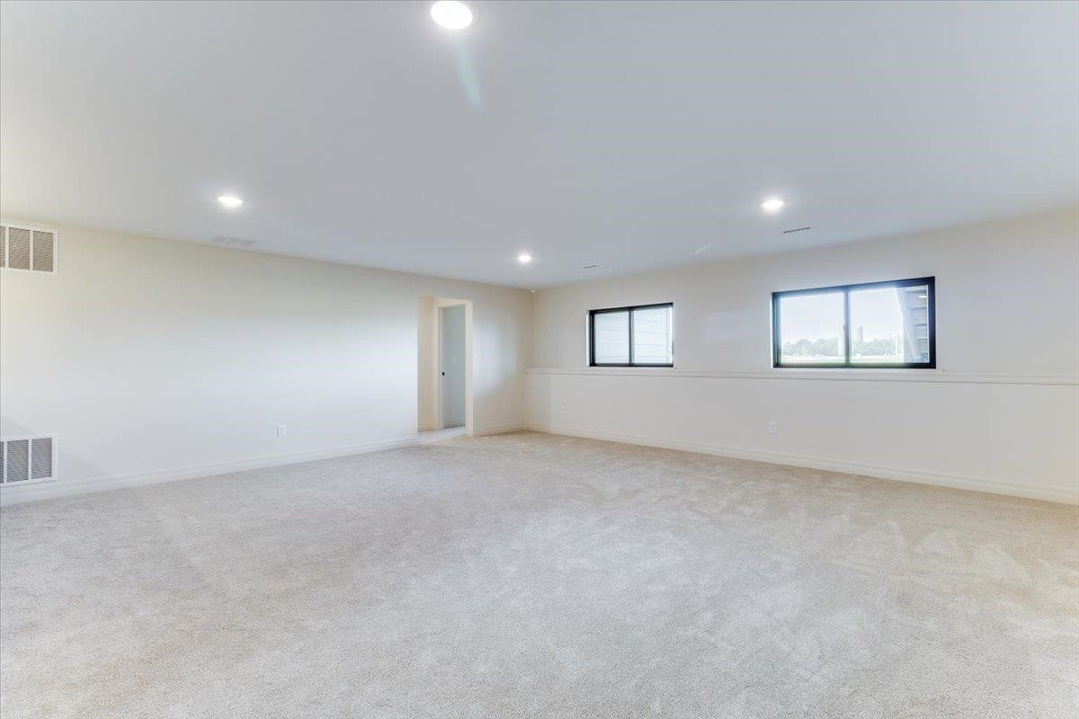 Welcome home to this stunning new floor plan designed for both comfort and style. The inviting dining area is perfectly positioned at the front of the home, creating a warm and welcoming first impression. Exceptional curb appeal is highlighted by a side-load 3-car garage, offering both function and elegance. The heart of the home features a beautiful kitchen that seamlessly overlooks the spacious living room, complete with a large sliding door that opens to a covered deck with breathtaking lake views—perfect for indoor-outdoor living and entertaining. The living room is anchored by a striking electric fireplace, surrounded by custom-built cabinetry and illuminated shelving for a modern, upscale feel. Retreat to the luxurious primary suite, a true oasis with serene lake views. The spa-like bathroom showcases a gorgeous tile shower, floating double vanities, and a spacious walk-in closet conveniently located just across from the dedicated laundry room with folding shelf. The finished basement offers exceptional additional living space, including a large family room with a wet bar and front island seating—ideal for gatherings. Two split bedrooms, each with generous walk-in closets, provide privacy and comfort. Ample storage space throughout the basement adds to the home's functionality. This thoughtfully designed home offers 5 bedrooms, 3 bathrooms, and the perfect blend of style, space, and scenic views. Information deemed reliable but not guaranteed and may change without notice. Specials and generals may not be entirely spread yet on this lot. There is a $250 mailbox fee collected at closing. This is a model home and not for sale at this time