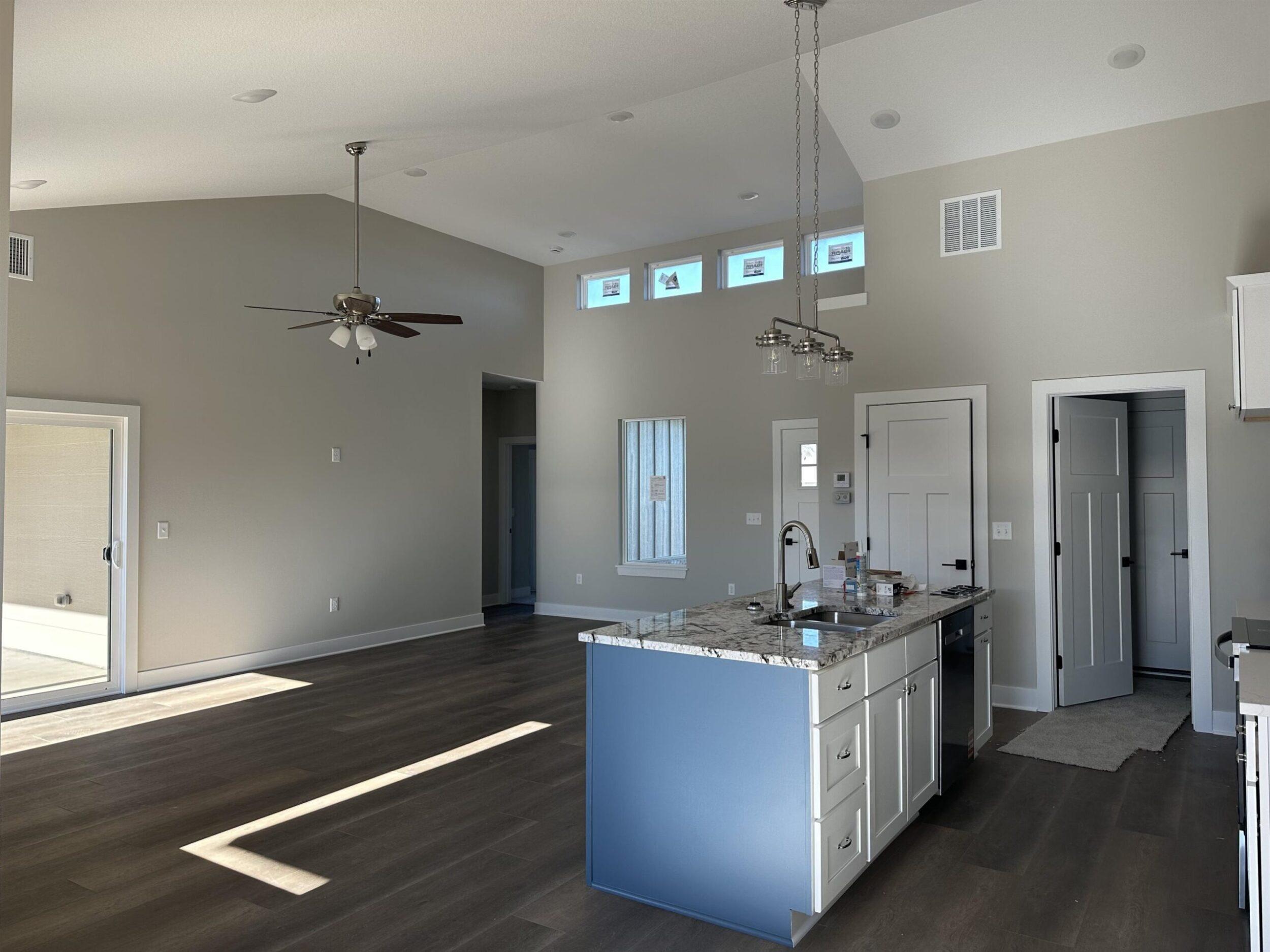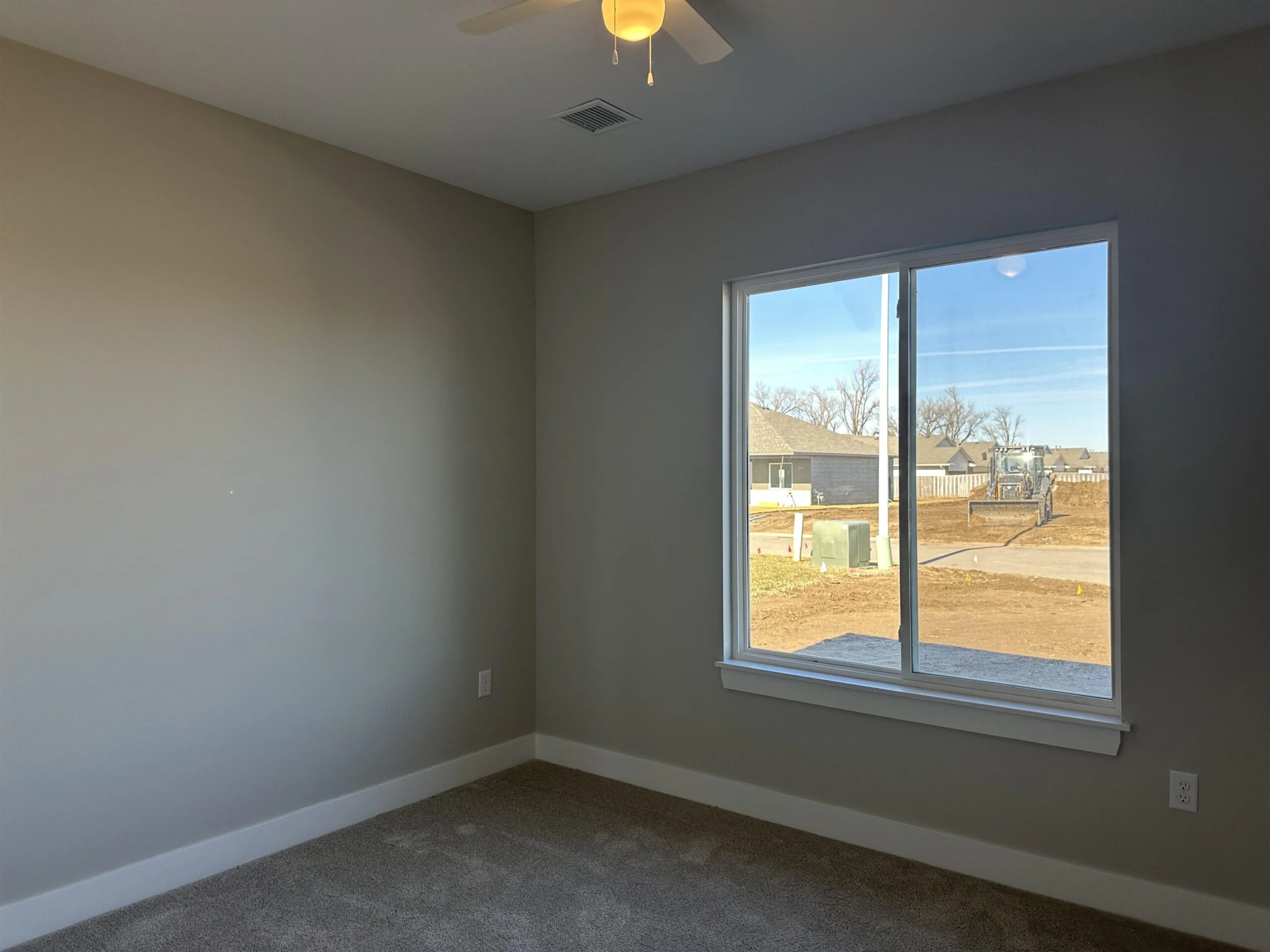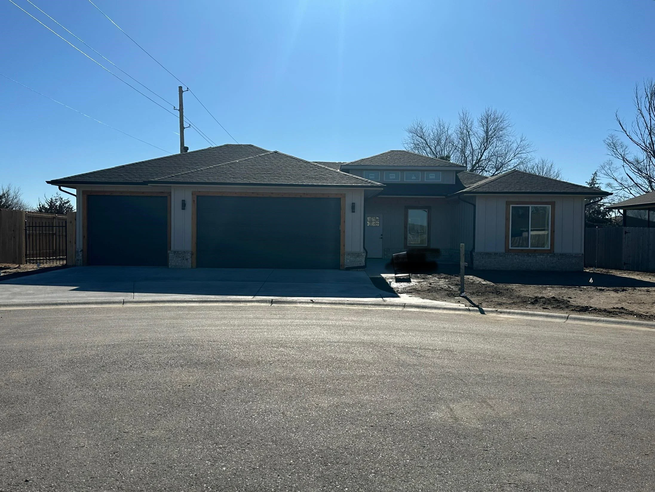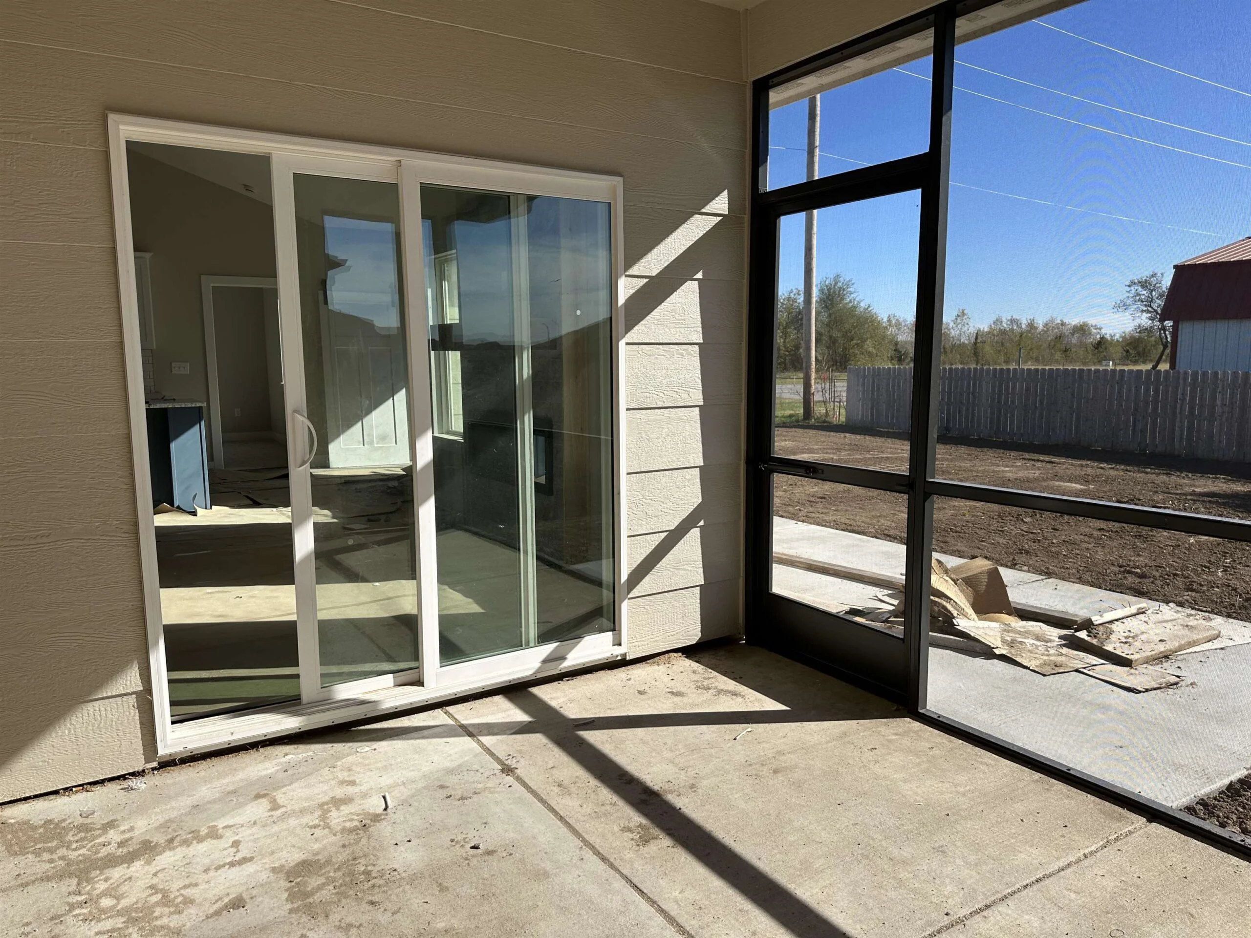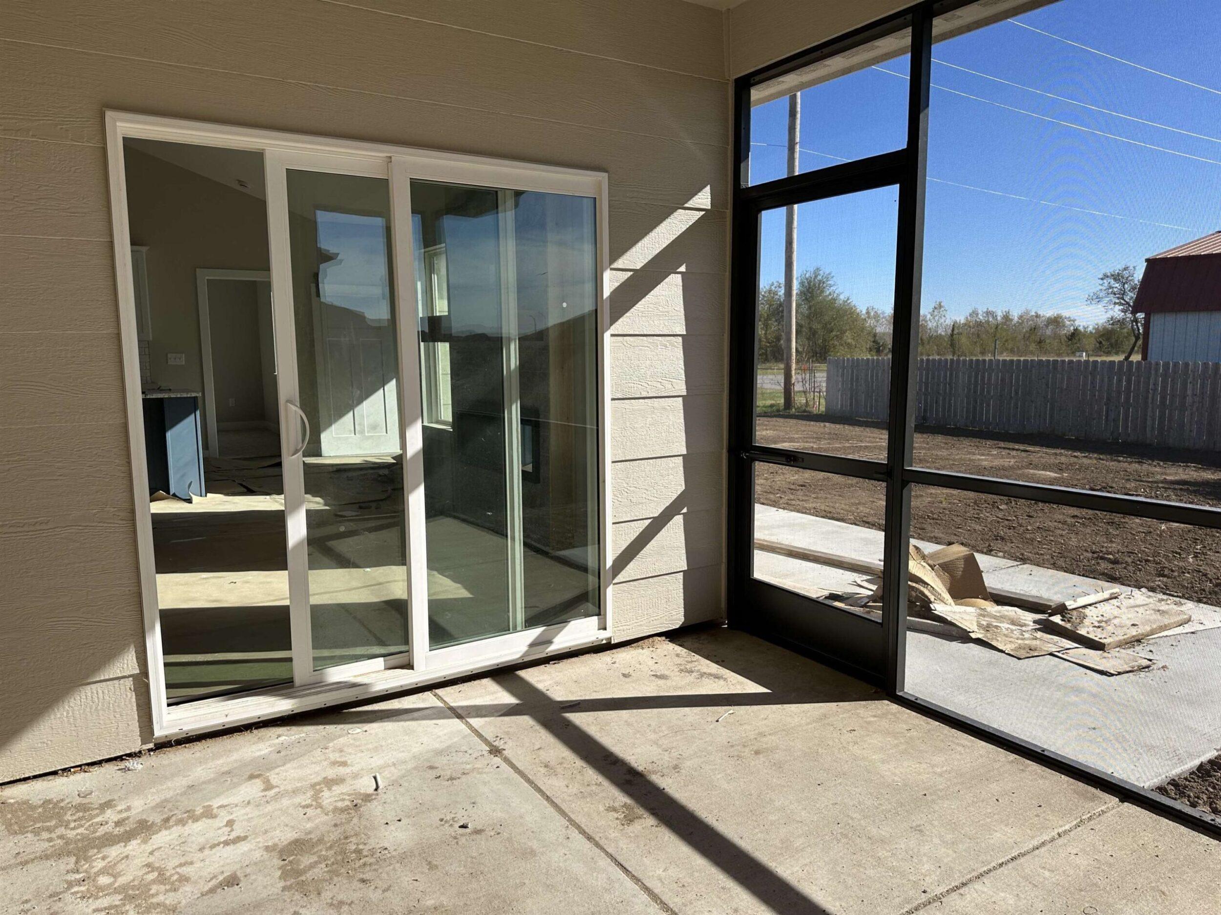 The "Piccolo" plan made larger with 3 bedrooms, 2 baths, and 3 car garage! Lovely kitchen in the very open plan with a nice island with seating overlooking the living room with electric fireplace. You'll love the pretty stone on surrounding the fireplace! Primary suite is spacious with an extra large closet. Off to the side you’ll enjoy the covered and screened in back patio. Spacious 3 car garage includes storm shelter. Curbless shower in primary bath. Fence is included in addition to an extra large concrete patio out back! Includes well, sprinkler, sod, and landscaping. In Edgewater Patios, the homeowners have control over their own well and sprinkler systems, so you determine when and how much you water. Information deemed reliable but not guaranteed and may change without notice. Room sizes estimated. Taxes estimated and shown on vacant lot. Specials may not be entirely spread yet on this lot. There is a $250 mailbox fee collected at closing. One member of Wells Construction LLC is licensed realtor in state of Kansas.