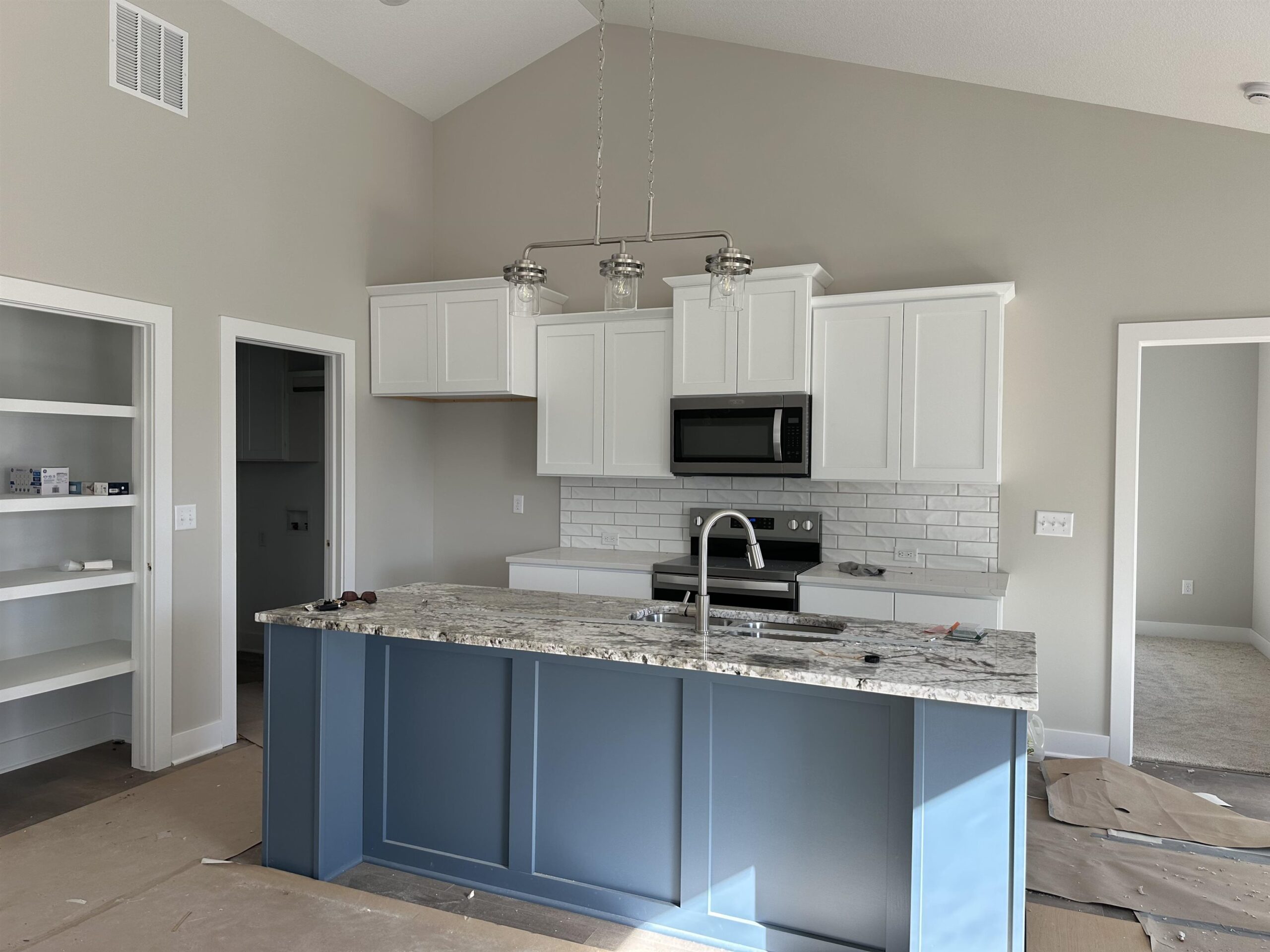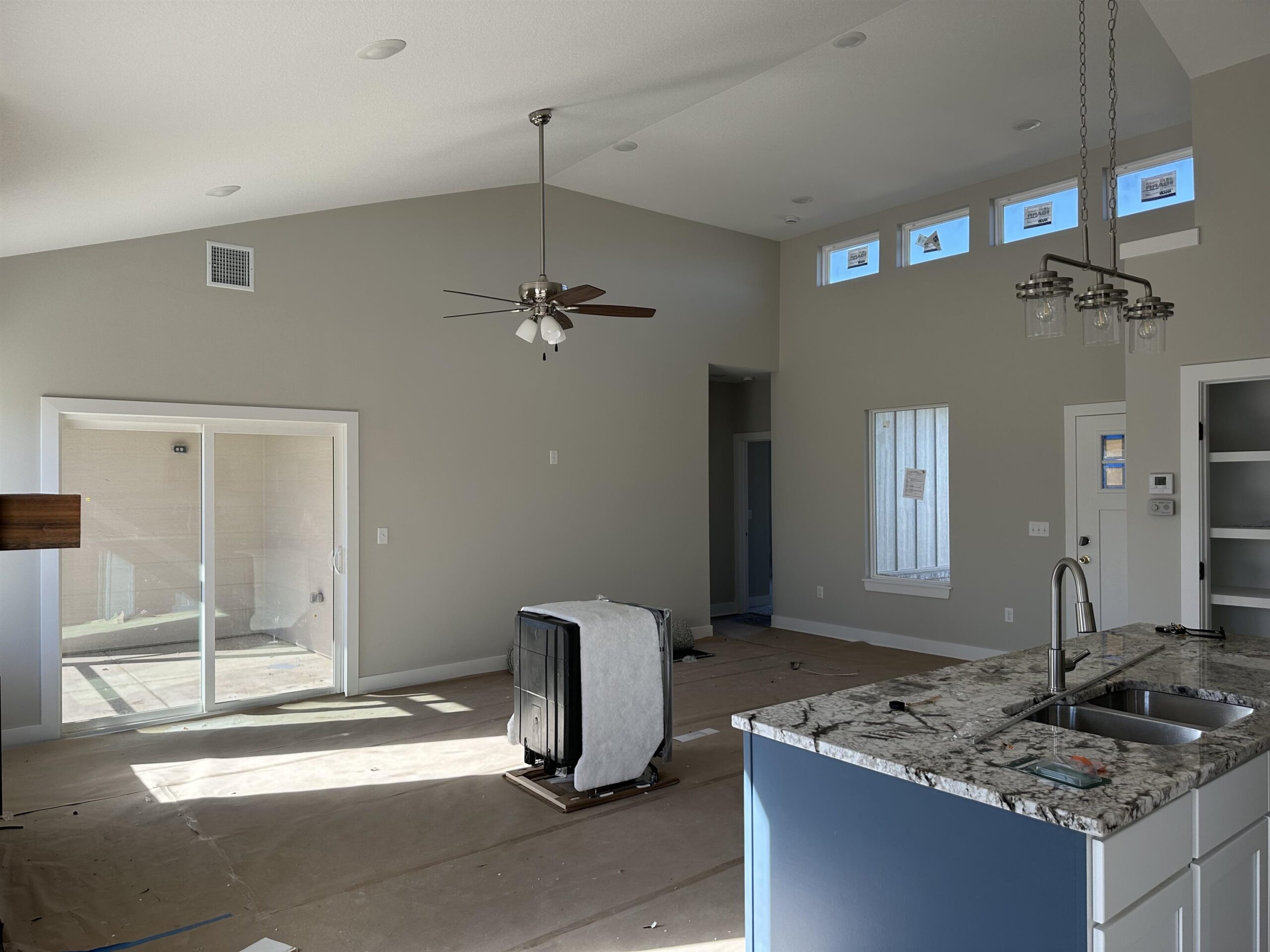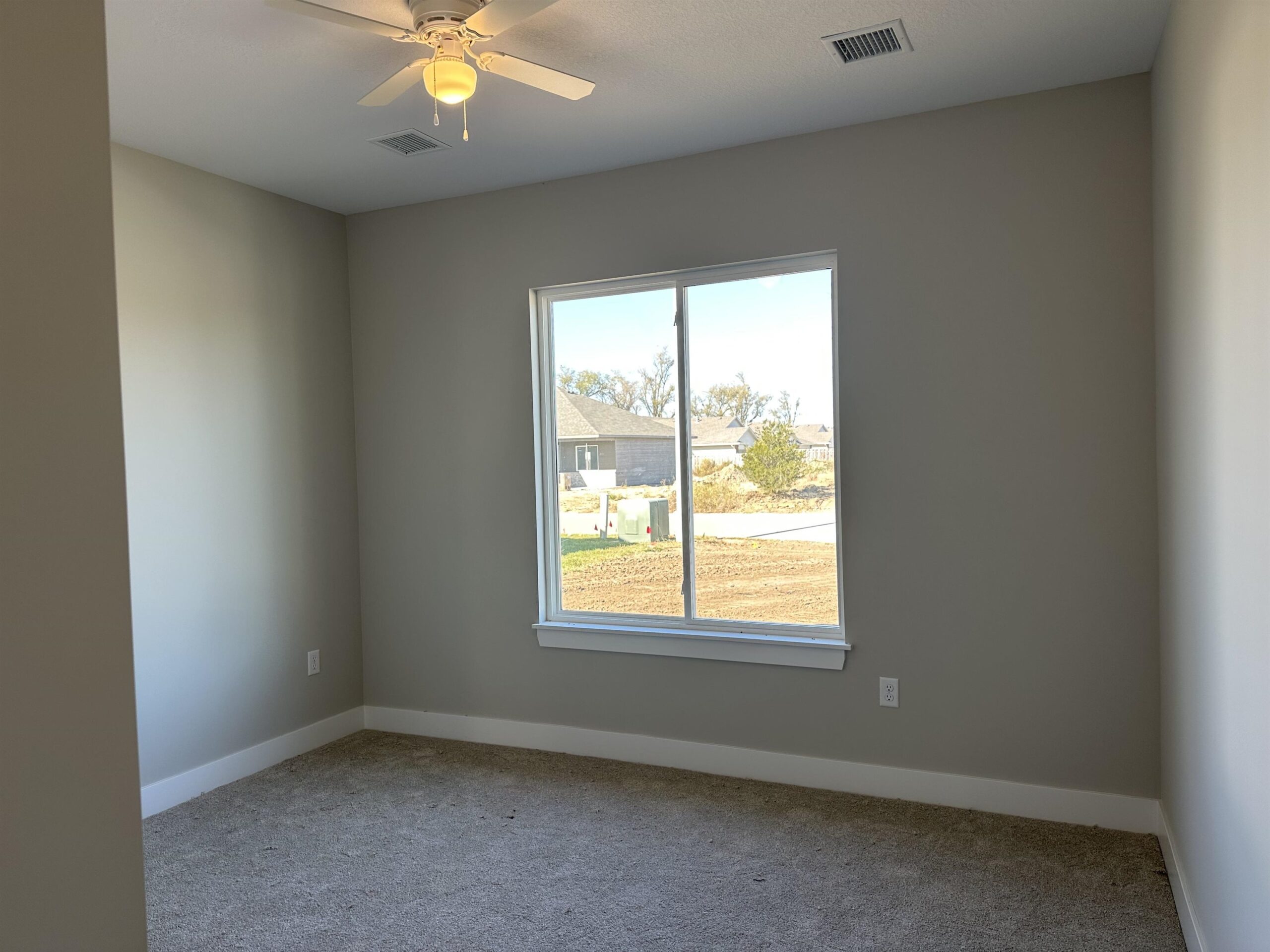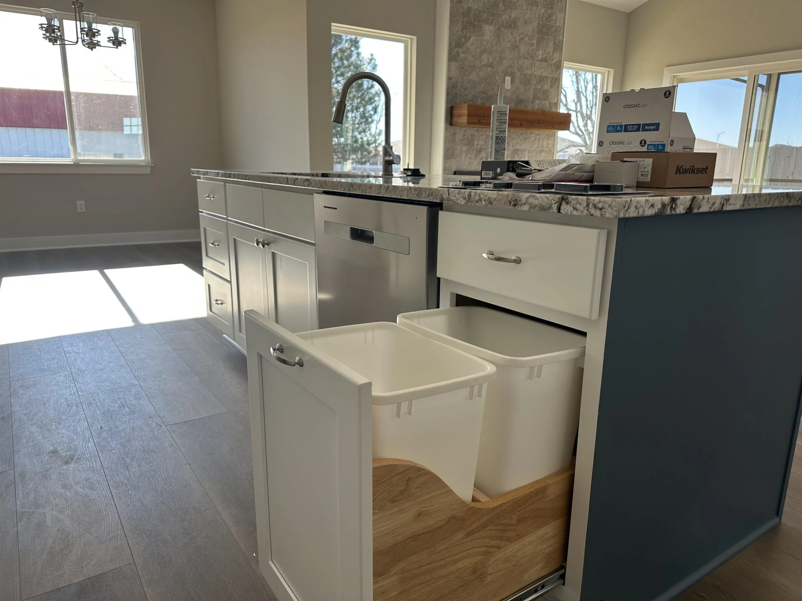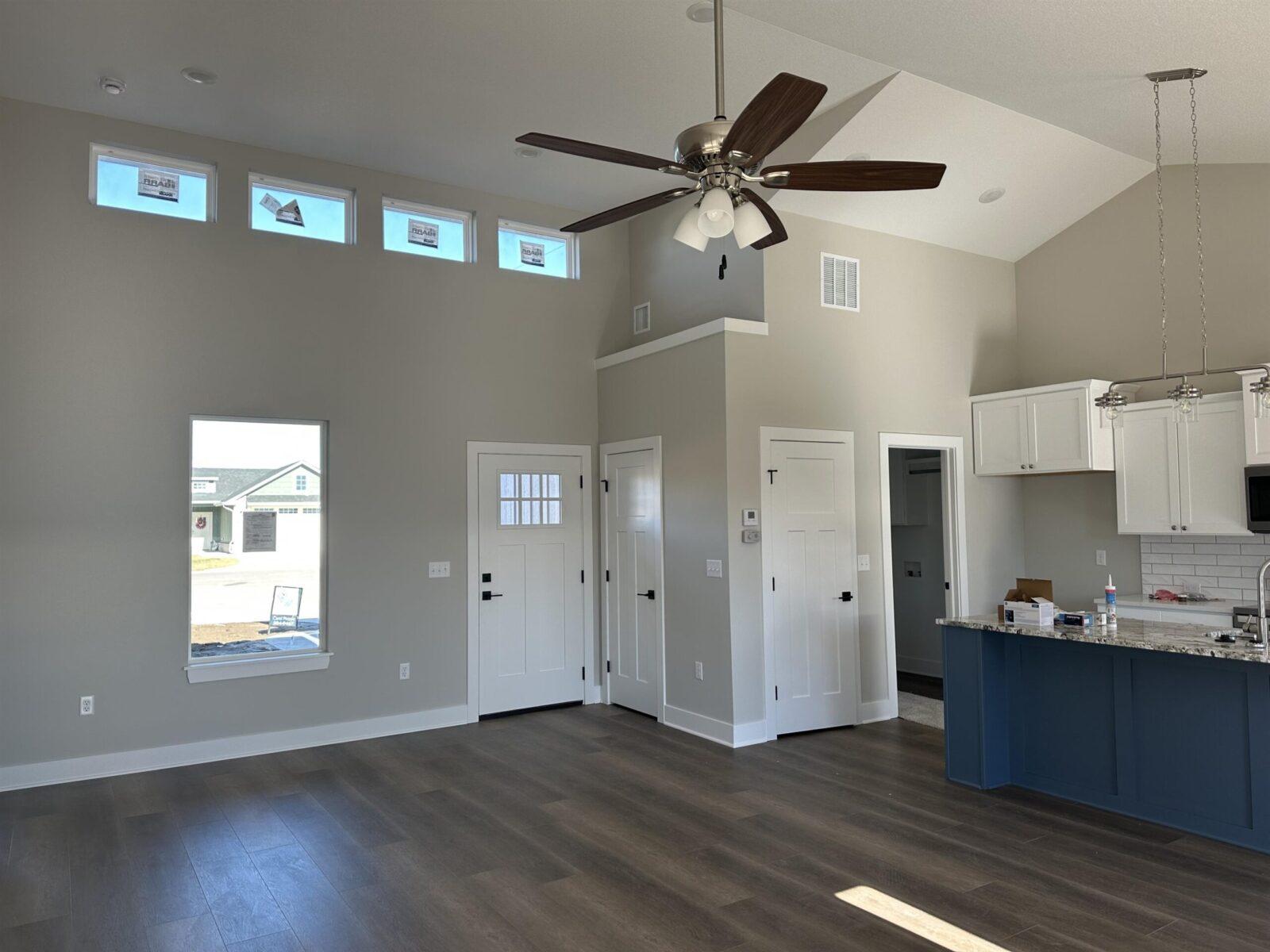 The "Piccolo" plan made larger with 3 bedrooms, 2 baths, and 3 car garage! Lovely kitchen in the very open plan with a nice island with seating overlooking the living room with electric fireplace. You'll love the pretty stone on surrounding the fireplace! Primary suite is spacious with an extra large closet. Off to the side you’ll enjoy the covered and screened in back patio. Spacious 3 car garage includes storm shelter. Curbless shower in primary bath. Fence is included in addition to an extra large concrete patio out back! Includes well, sprinkler, sod, and landscaping. In Edgewater Patios, the homeowners have control over their own well and sprinkler systems, so you determine when and how much you water. Information deemed reliable but not guaranteed and may change without notice. Room sizes estimated. Taxes estimated and shown on vacant lot. Specials may not be entirely spread yet on this lot. There is a $250 mailbox fee collected at closing. One member of Wells Construction LLC is licensed realtor in state of Kansas.