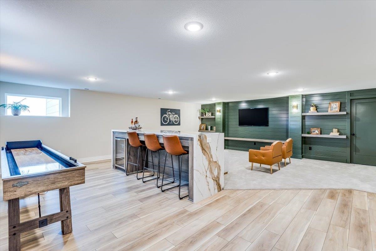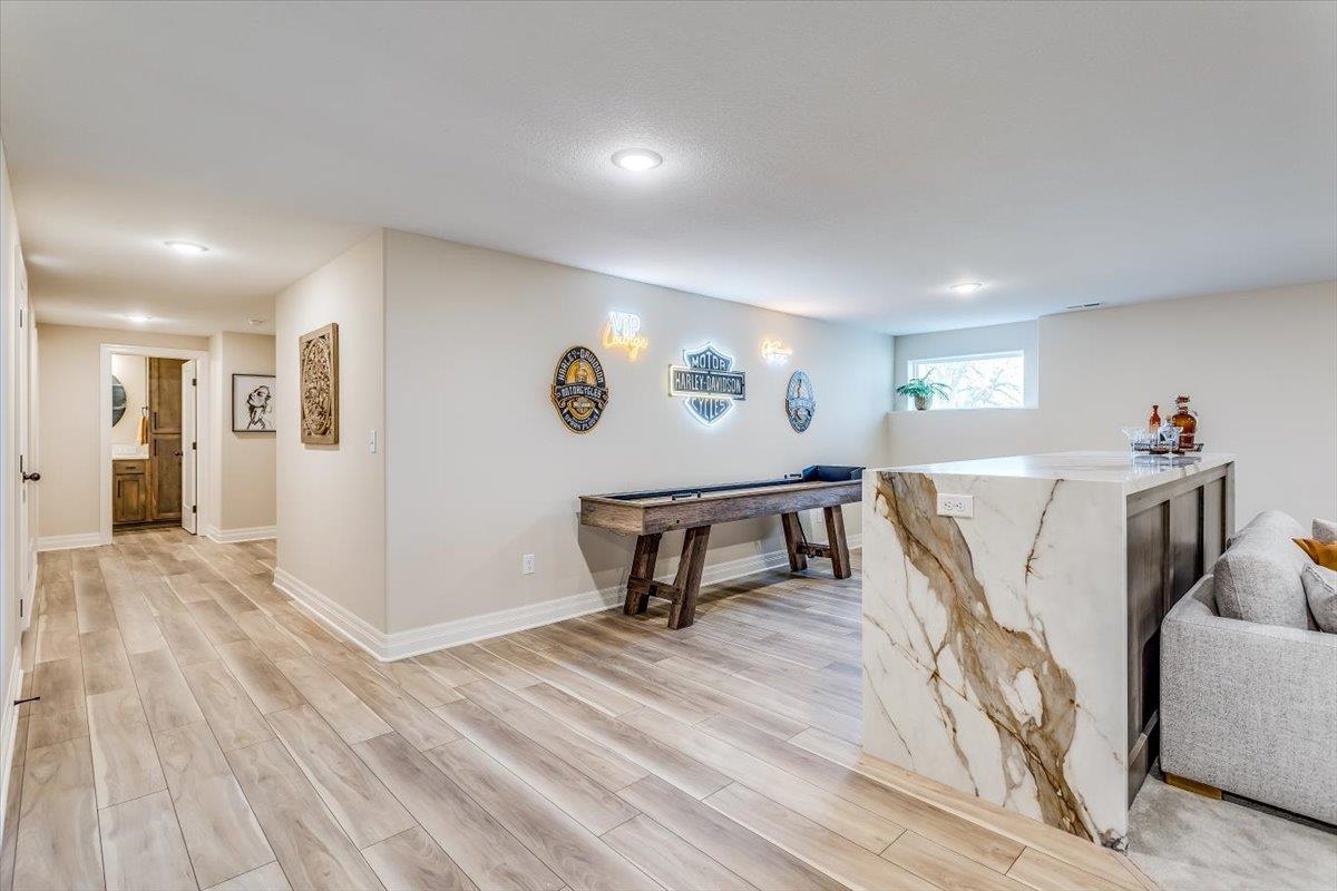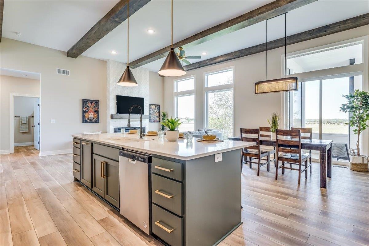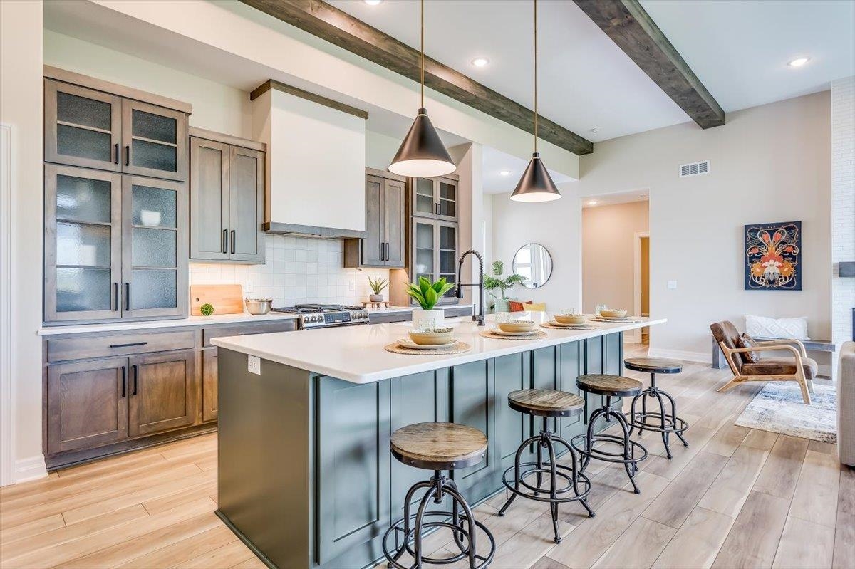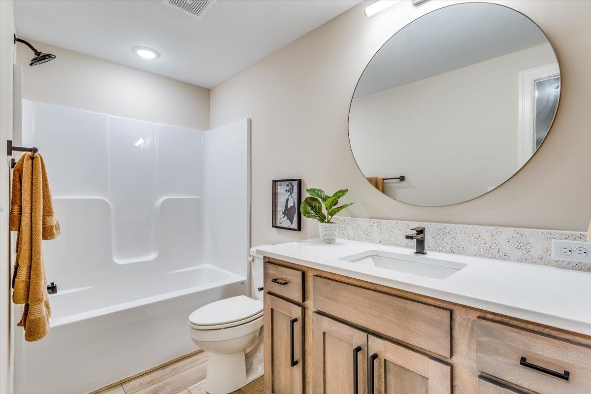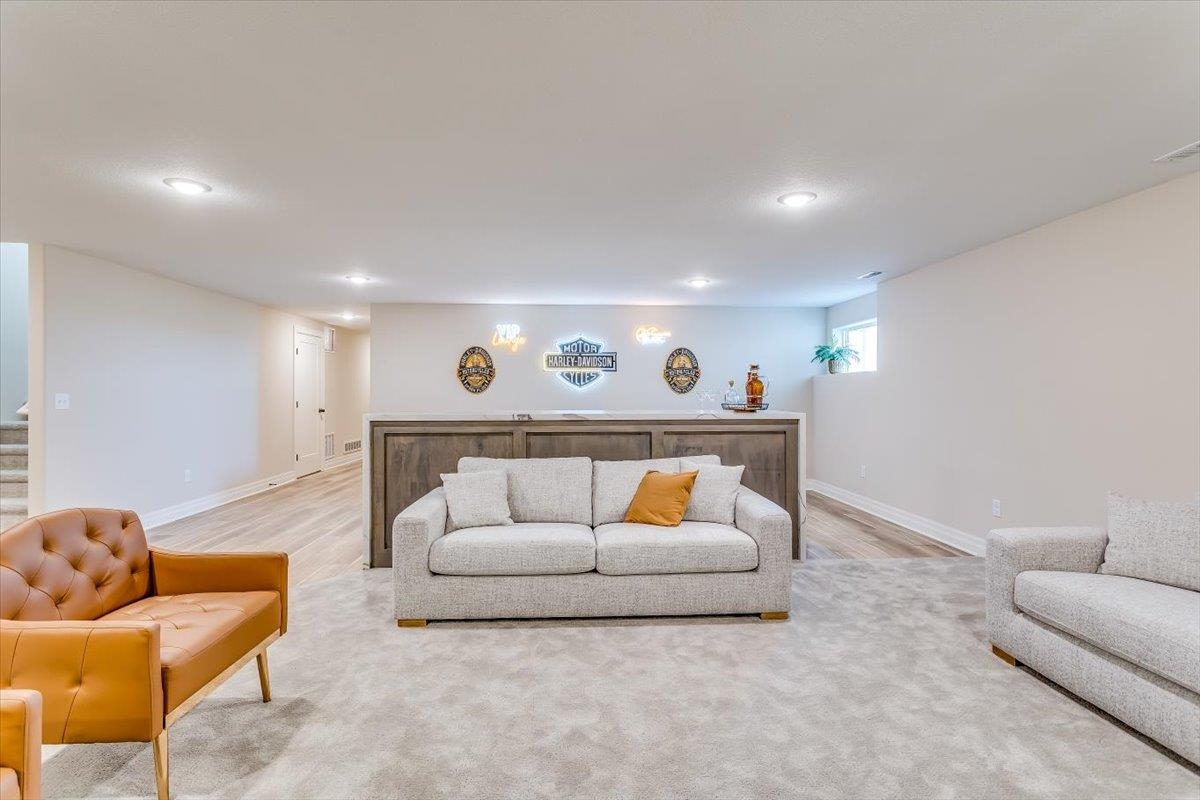 - Description: Step inside our new “Boccherini” plan and discover the dream you’ve always wanted! Beautiful landscaping and a porch swing greets you to a foyer entry with basement stairs to the side, opens to living room with electric fireplace. The kitchen island overlooks to the rear of the home. Primary suite features large bedroom, and bathroom even has makeup vanity in addition to the double bowl vanity. There is a corner zero entry no step full tile shower. Always a favorite, the bath connects to the closet and laundry for added convenience. The laundry has a dutch door, and a special place for your pups, plus a tower of additional storage shelves! Just off the garage entry is bench drop zone and small desk/storage for convenience. The Bedrooms 2 and 3 are located on the opposite side of the home, and separated by a large hall bath with linen storage just outside in the hall. The lower level has large family/rec room and dry bar perfect for entertaining. Also finished is the 3rd bath in the basement. Future owner has option to finish bedrooms 4&5 if desired. You’ll appreciate the large unfinished separate store room too! The back porch is screened in with a fireplace, and you can gain access thru the main living area and the primary bedroom! Information deemed reliable but not guaranteed and may change without notice. Room sizes estimated. Taxes shown are on vacant lot only. Specials may not be entirely spread yet. There is a $250 mailbox fee collected at closing.