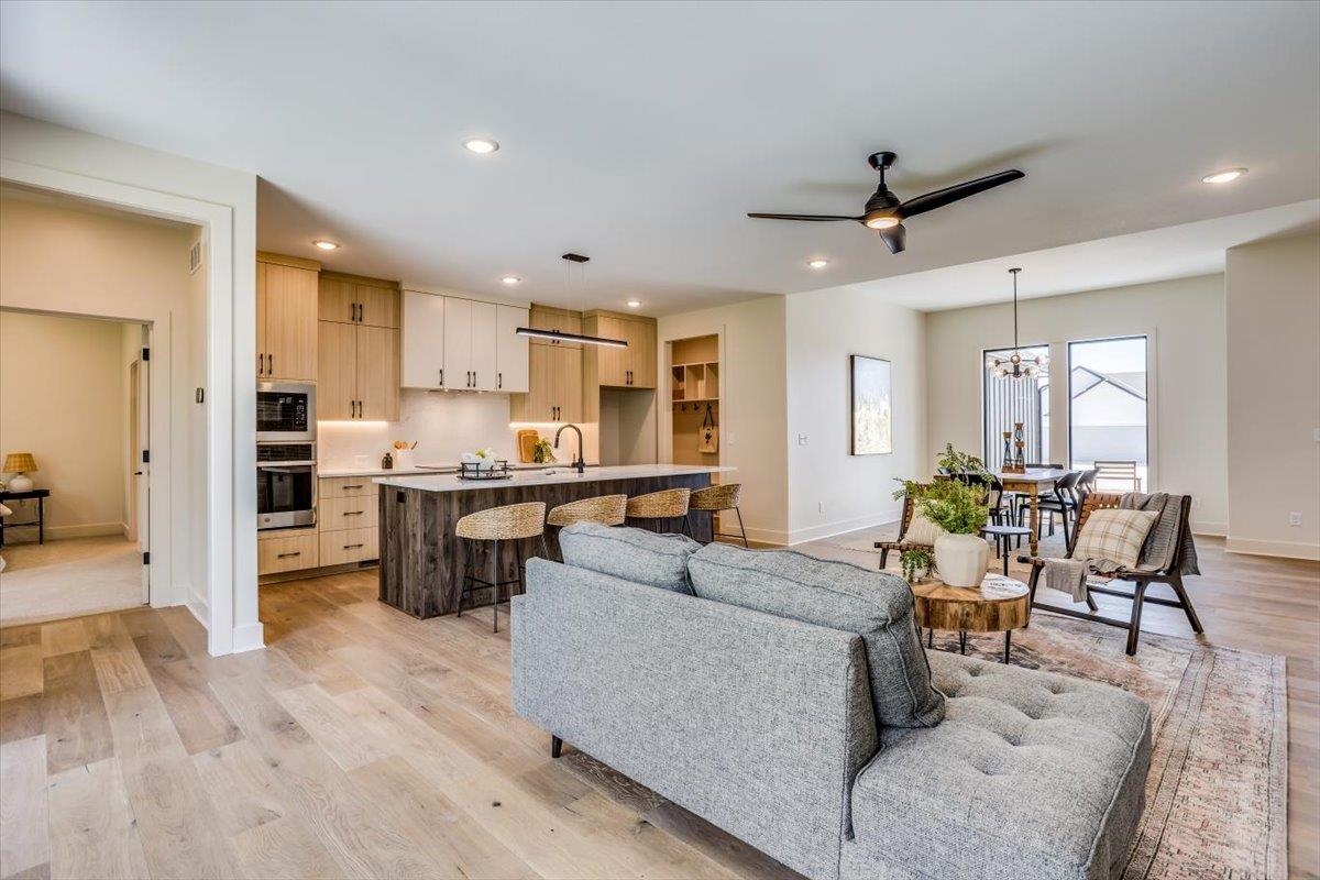- Description: The “Autumn” is a beautifully designed 5 bedroom, 3 bath split plan with a modern flair. The open layout has the stairs to basement tucked behind the living room fireplace. The kitchen island overlooks the living, has pantry behind, and is just off family garage entry perfect for bringing in groceries. Dining area is at the front of the house. Lots of storage in the mudroom that connects to the separate laundry room. The primary suite has a private vestibule entry complete with a small office/desk space. The ensuite bath that has double vanities, private water closet, full tile shower, and huge walk in closet with custom built drawers and shelves.The basement is fully finished with an extra large family/rec room, wet bar, and 2 bedrooms and bath. There is also unfinished storage room for convenience. You’ll appreciate the upgraded HVAC and insulation to help on energy costs in this home. The garage has insulated doors in front, and is oversized with 25’ deep bay 1 and 2, and 30’ deep on bay 3 that also has a 10’ door height with additional overhead door at rear. General taxes shown on vacant lot only. Information deemed reliable but not guaranteed and may change without notice. Room sizes estimated. Specials may not be entirely spread yet on this lot There is a $250 mailbox fee collected atclosing.