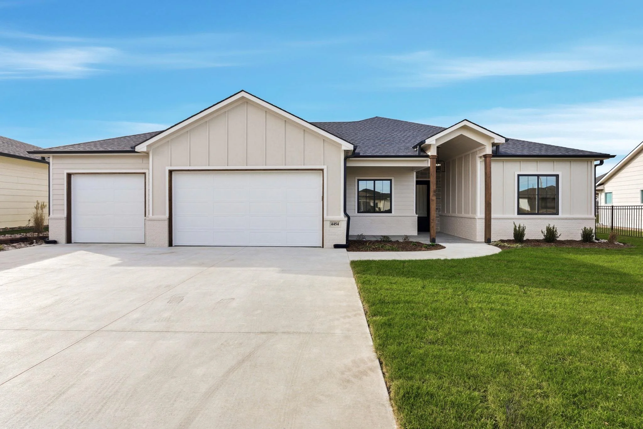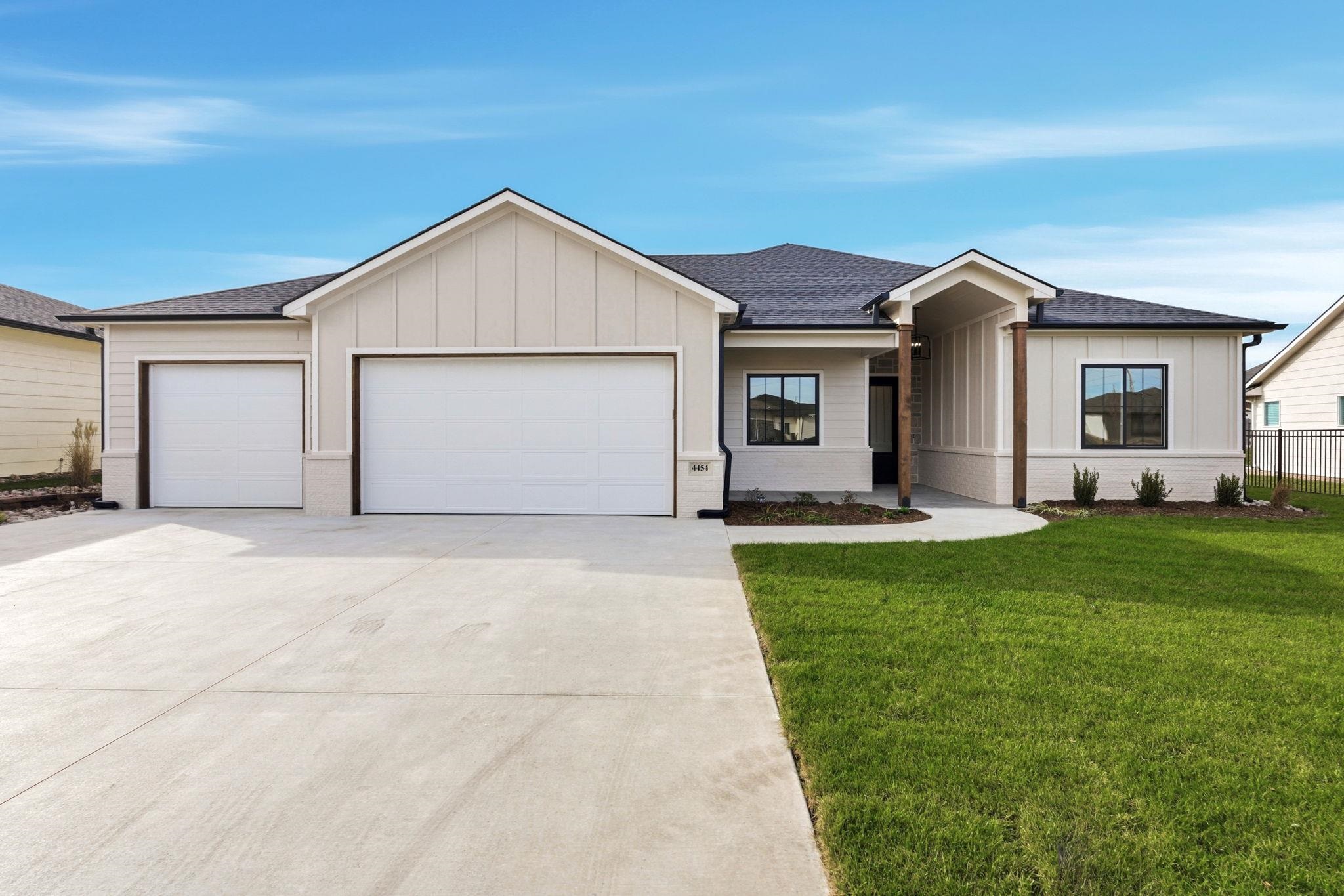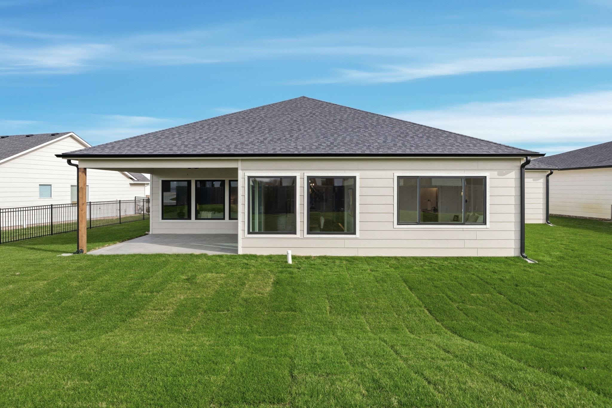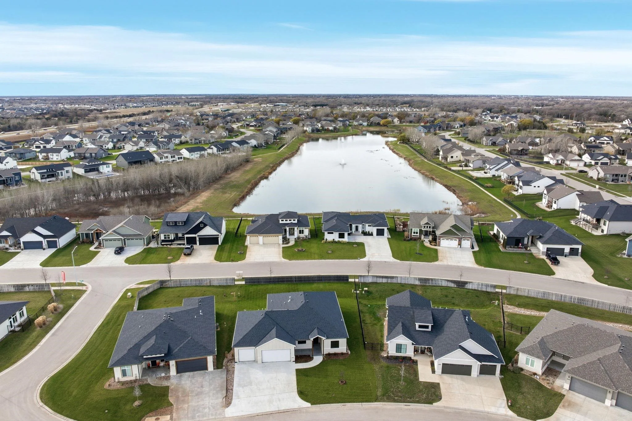 Welcome home to the brand new patio home Primrose plan with 3 bedrooms, 2 1/2 baths, Large Covered Patio, and oversized 3 car garage! Includes concrete storm shelter in garage that doubles for a great store room. Lots of extra storage options in this home too, including 2 pantrys, one with a sink and full quartz countertop! There is also a dedicated cleaning closet so you can store your vacuum, brooms, cleaning supplies all together. If you need a large dining area this home has it! The kitchen island is 10' long. You'll love the built in dresser in the master closet. Tankless water heater. Roof is hail resistant. Wood fence across back. In Edgewater Patios, the homeowners have control over their own well and sprinkler systems, so you determine when and how much you water. Information deemed reliable but not guaranteed and may change without notice. Room sizes estimated. Taxes estimated and shown on vacant lot. Specials may not be entirely spread yet on this lot. HOA dues go under annual review and may change. There is a $250 mailbox fee collected at closing. Seller is licensed realtor in state of Kansas.