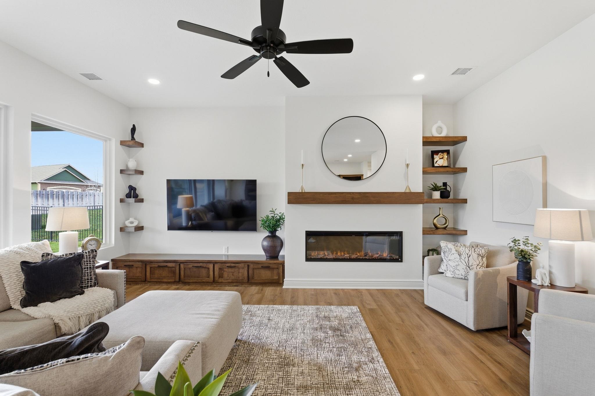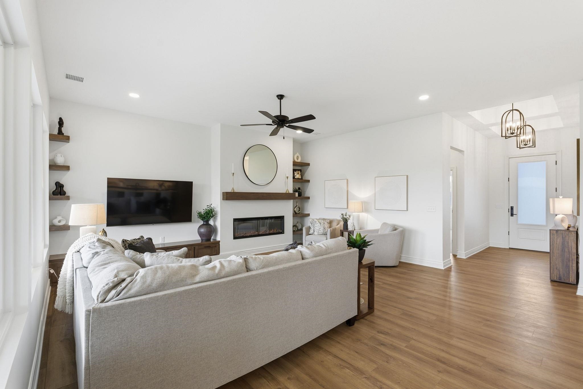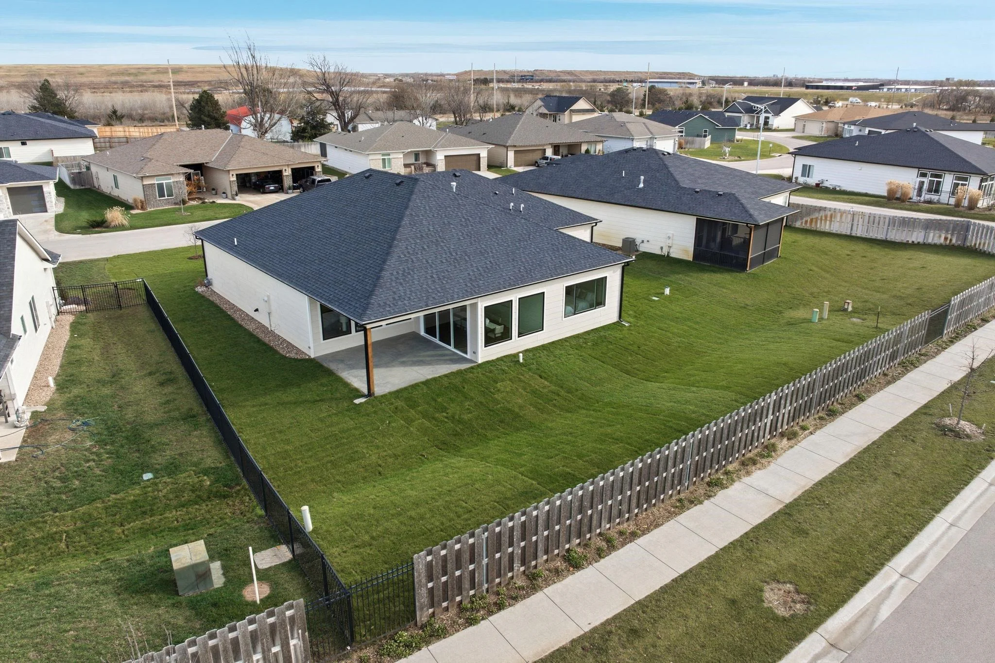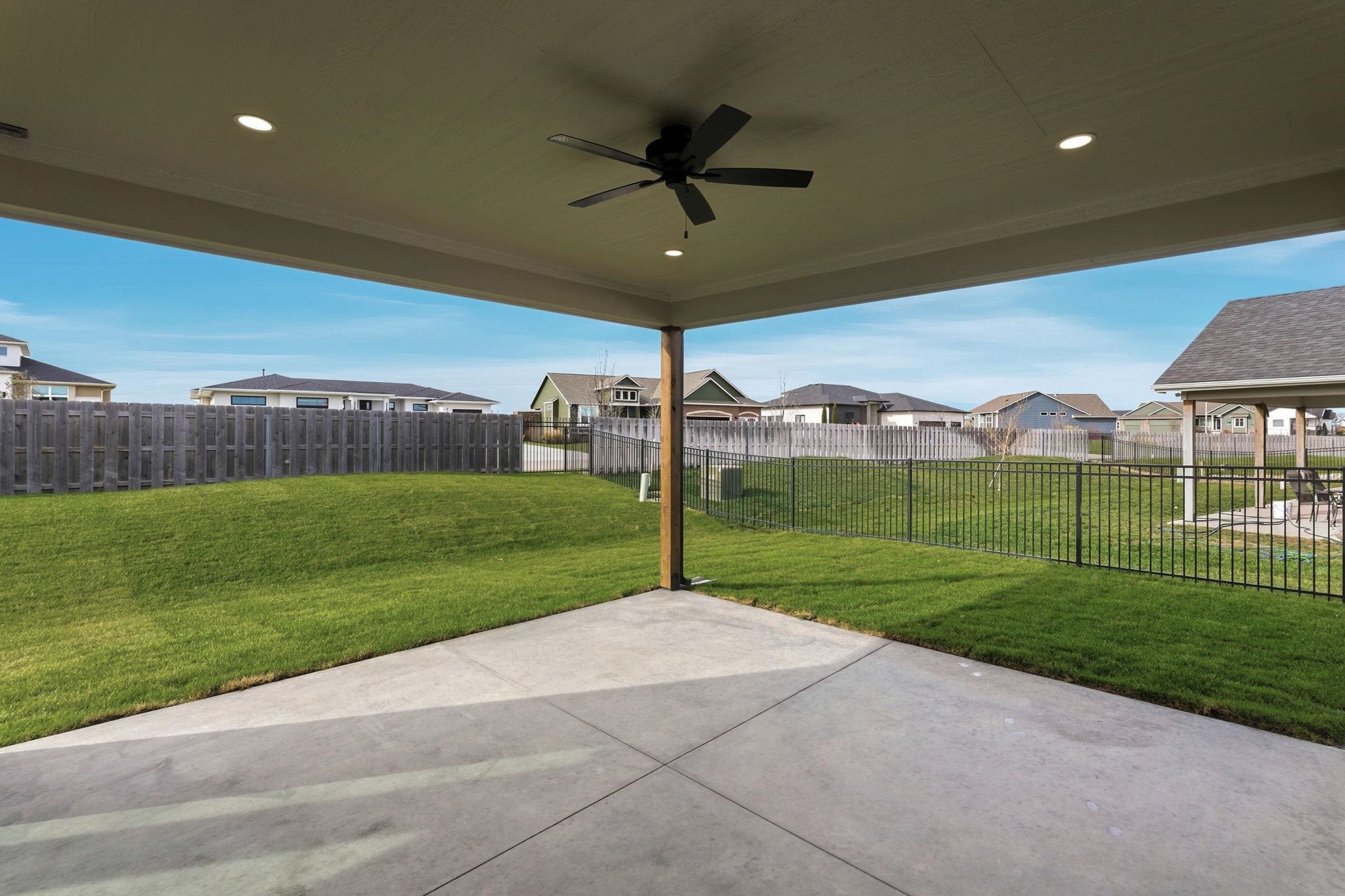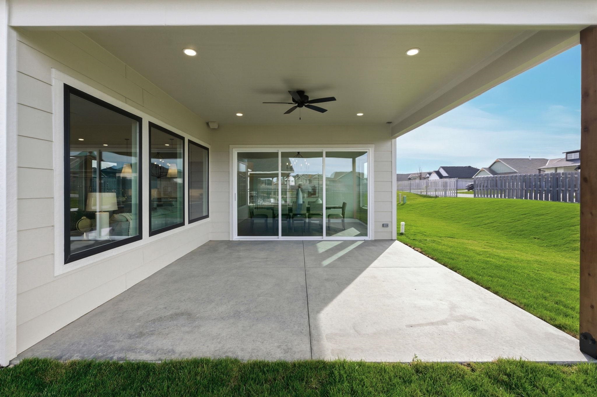Welcome home to the brand new patio home Primrose plan with 3 bedrooms, 2 1/2 baths, Large Covered Patio, and oversized 3 car garage! Includes concrete storm shelter in garage that doubles for a great store room. Lots of extra storage options in this home too, including 2 pantrys, one with a sink and full quartz countertop! There is also a dedicated cleaning closet so you can store your vacuum, brooms, cleaning supplies all together. If you need a large dining area this home has it! The kitchen island is 10' long. You'll love the built in dresser in the master closet. Tankless water heater. Roof is hail resistant. Wood fence across back. In Edgewater Patios, the homeowners have control over their own well and sprinkler systems, so you determine when and how much you water. Information deemed reliable but not guaranteed and may change without notice. Room sizes estimated. Taxes estimated and shown on vacant lot. Specials may not be entirely spread yet on this lot. HOA dues go under annual review and may change. There is a $250 mailbox fee collected at closing. Seller is licensed realtor in state of Kansas.