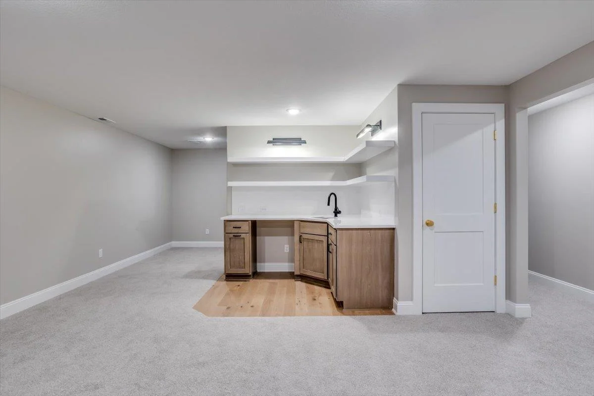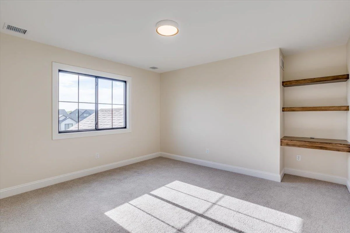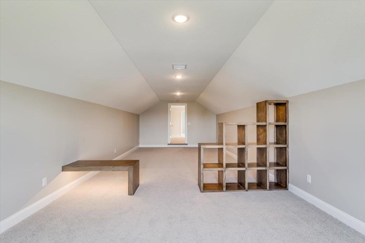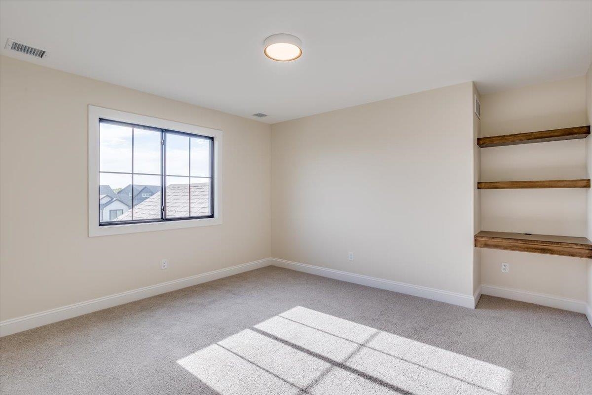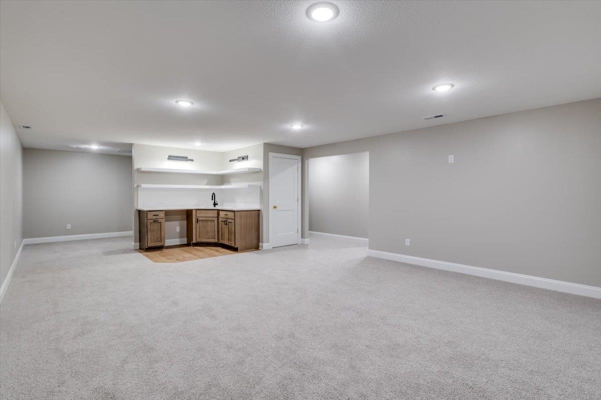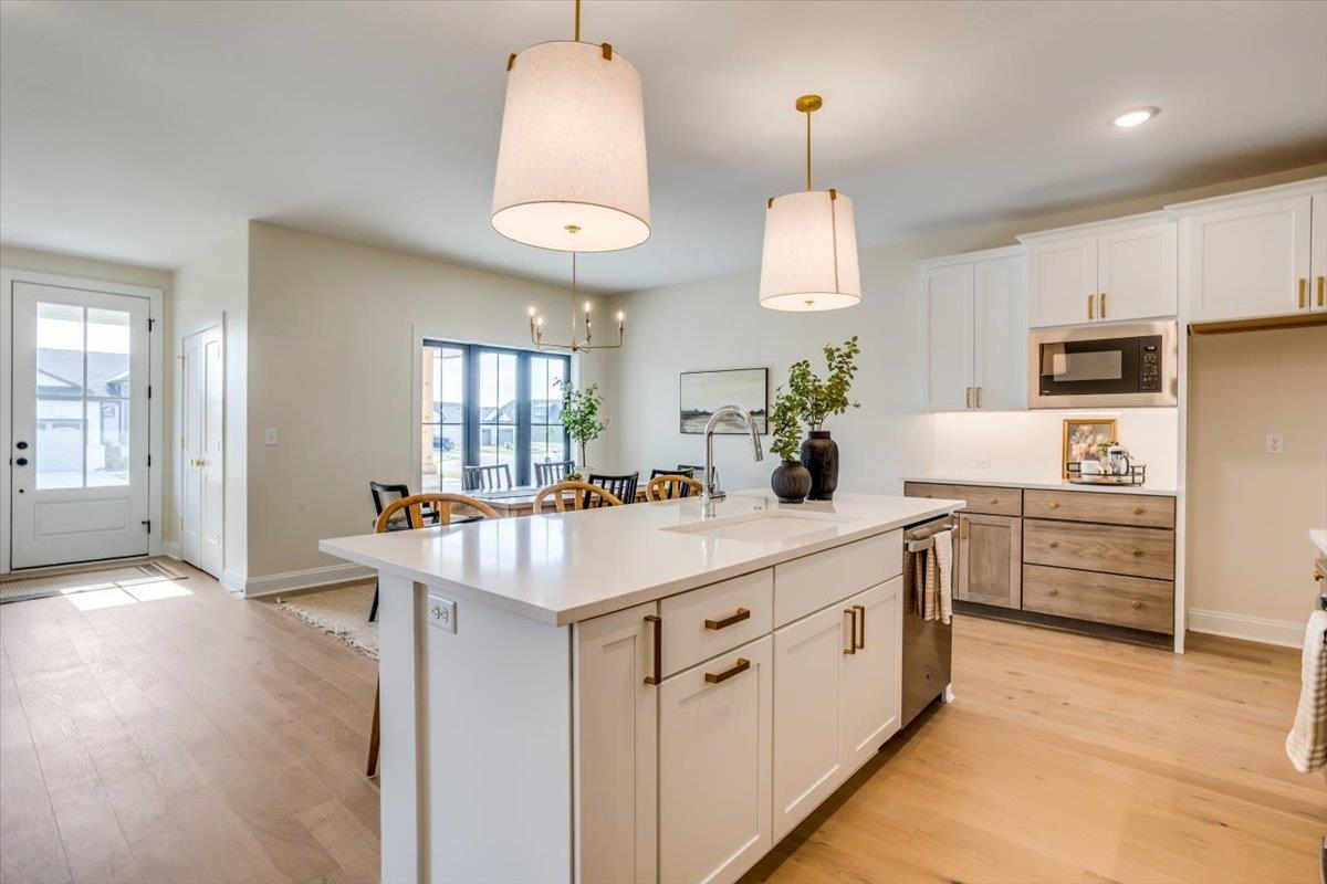 The stunning “Eden” is a 1 1/2-story home with 5 Bedrooms and 3 ½ baths all designed to offer comfort, luxury, and functionality. As you approach, the charming exterior features classic Craftsman elements and stone along with an inviting covered porch. The oversized, extra-deep garage boasts 8 and 10-foot garage doors, providing ample space for vehicles and storage. Upon entering, the main floor greets you with a spacious and open layout. The living room is the heart of the home, featuring a cozy fireplace surrounded by built-in cabinets, perfect for showcasing your favorite decor and storing essentials. Adjacent to the living room is the gourmet kitchen, complete with a stylish range hood, modern appliances, and ample counter space for culinary adventures. A convenient bench drop zone with cubbies is located near the back family entrance, offering a practical space for coats, shoes, and bags. Also on the main floor, the primary bedroom is a true retreat, featuring a barn door along with a vaulted ceiling adorned with a beam, adding character and charm. The ensuite bathroom is a luxurious haven, complete with a spacious Roman shower, offering a spa-like experience. Adjacent, you'll find a pocket office, an ideal space for remote work or managing household tasks. The main floor laundry has a laundry chute which adds a touch of convenience you’ll love! Upstairs you’ll find 2 more bedrooms and bath, along with a versatile loft area and also a bonus room perfect for a secondary living space or play area however you choose. The finished basement is an entertainer's dream, featuring a wet bar for hosting gatherings and a spacious open area that can be customized to suit your needs, whether it's a home theater, game room, or family lounge. In addition, 2 more bedrooms and bath are in the basement as well. Outdoor living is enhanced by a beautiful concrete patio, providing a low-maintenance space for relaxation and entertaining. This Craftsman-style home combines classic architectural details with modern amenities, upgraded insulation and HVAC system, all creating a perfect blend of elegance and practicality for today's lifestyle. Information deemed reliable but not guaranteed and may change without notice. There is a $250 mailbox fee collected at closing