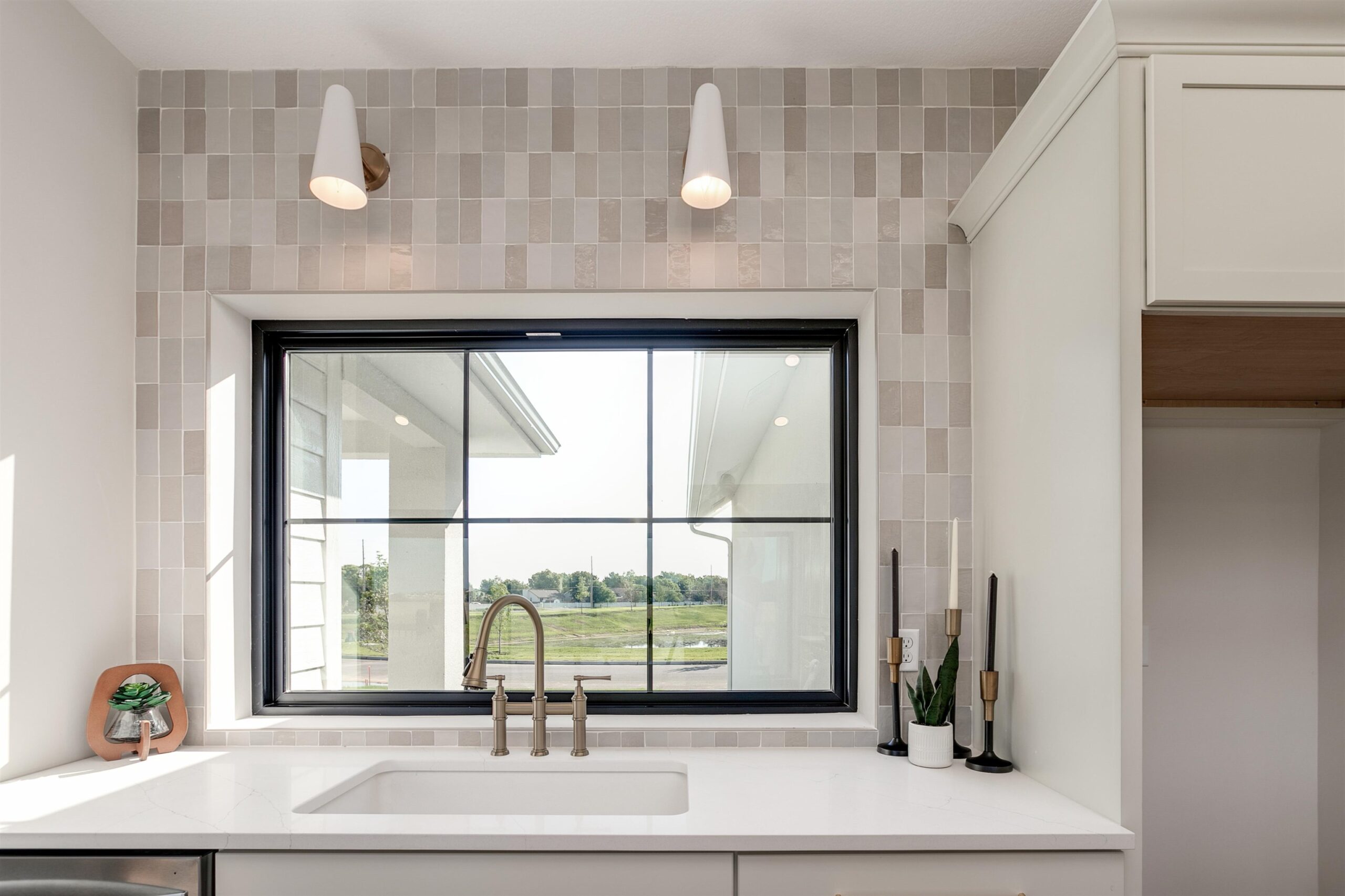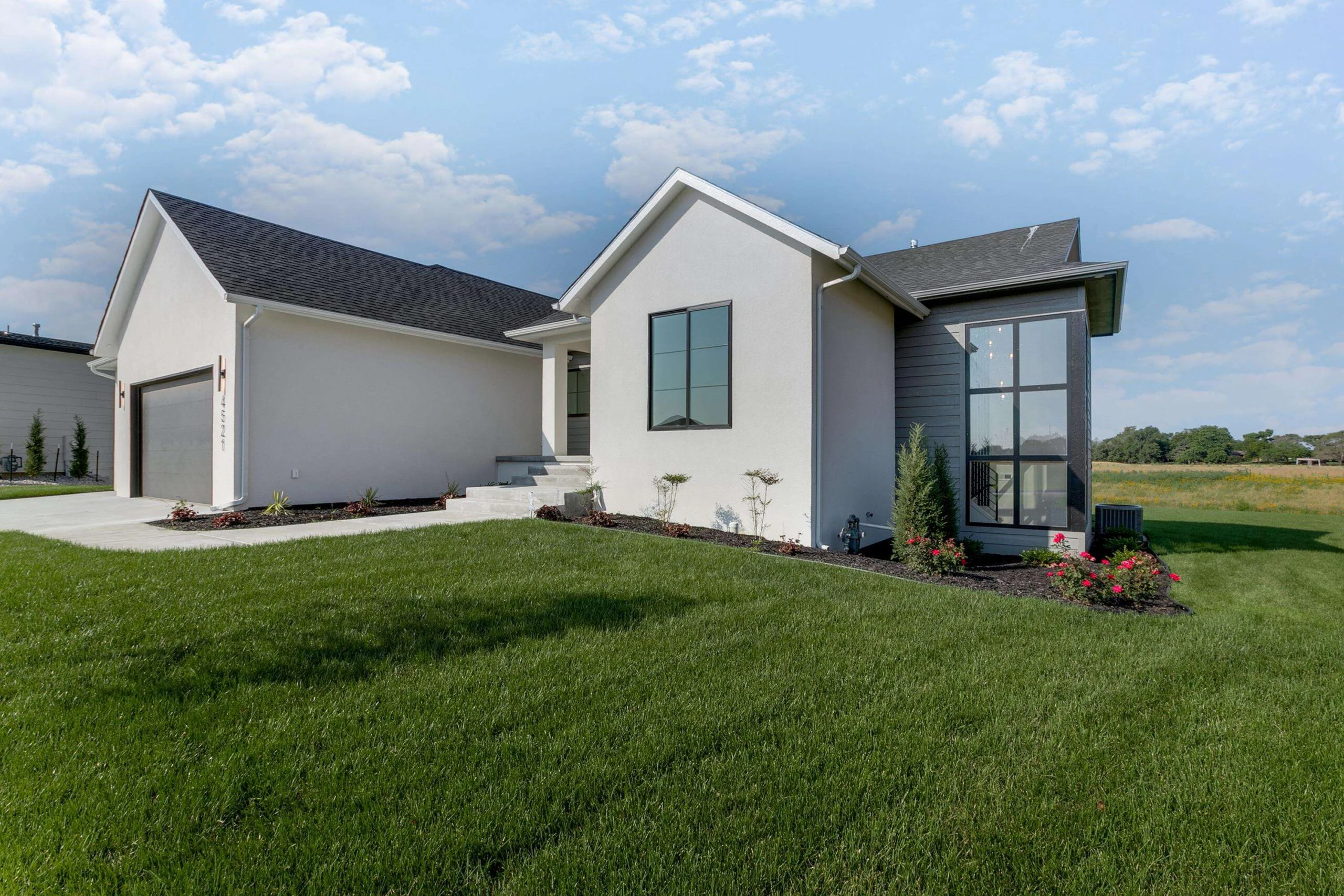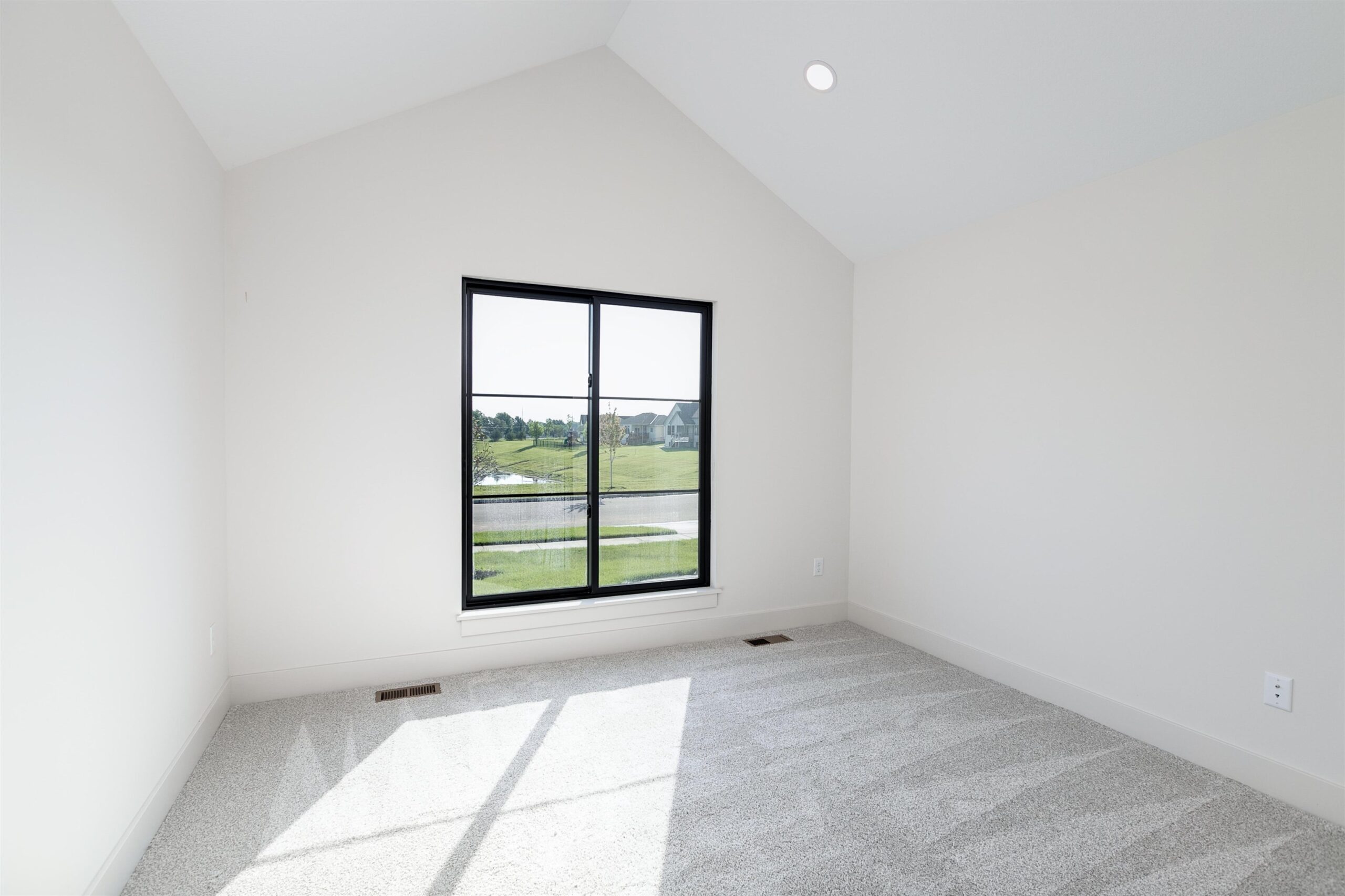 This is the showstopper “Kevin” plan with stairs to lower level located on the side corner of home with full glass walls! This is a 6 bedroom 3 bath home. You’l love the floor to ceiling windows in the vaulted living room. Kitchen is open and has the much coveted window over the kitchen sink looking to front of home. The pantry with double entries runs behind the length of the kitchen, and has 2 glass pocket doors that let in light but yet hide the space. The laundry room also houses a bench drop zone and connects to the spacious master closet. Stunning soaker tub with beautiful glass light fixture is a spa retreat in the primary bedroom suite, along with the walk in seamless glass shower. Bedrooms 2 and 3 are on the opposite side of the house with a hall bath in between. Basement is completely finished with a family room with entertainment wal and 2nd fireplace, wet bar, bath, and 3 more bedrooms! Large covered deck on back to enjoy those lake views! Information deemed reliable but not guaranteed and may change without notice. Specials may not be entirely spread yet on this lot. There is a $250 mailbox key at closing. Room sizes estimated. Information deemed reliable but not guaranteed and may change without notice. Specials may not be entirely spread on this lot. There is a $250 mailbox fee collected at closing. Room sizes estimated. Seller is licensed real estate agent in Kansas.