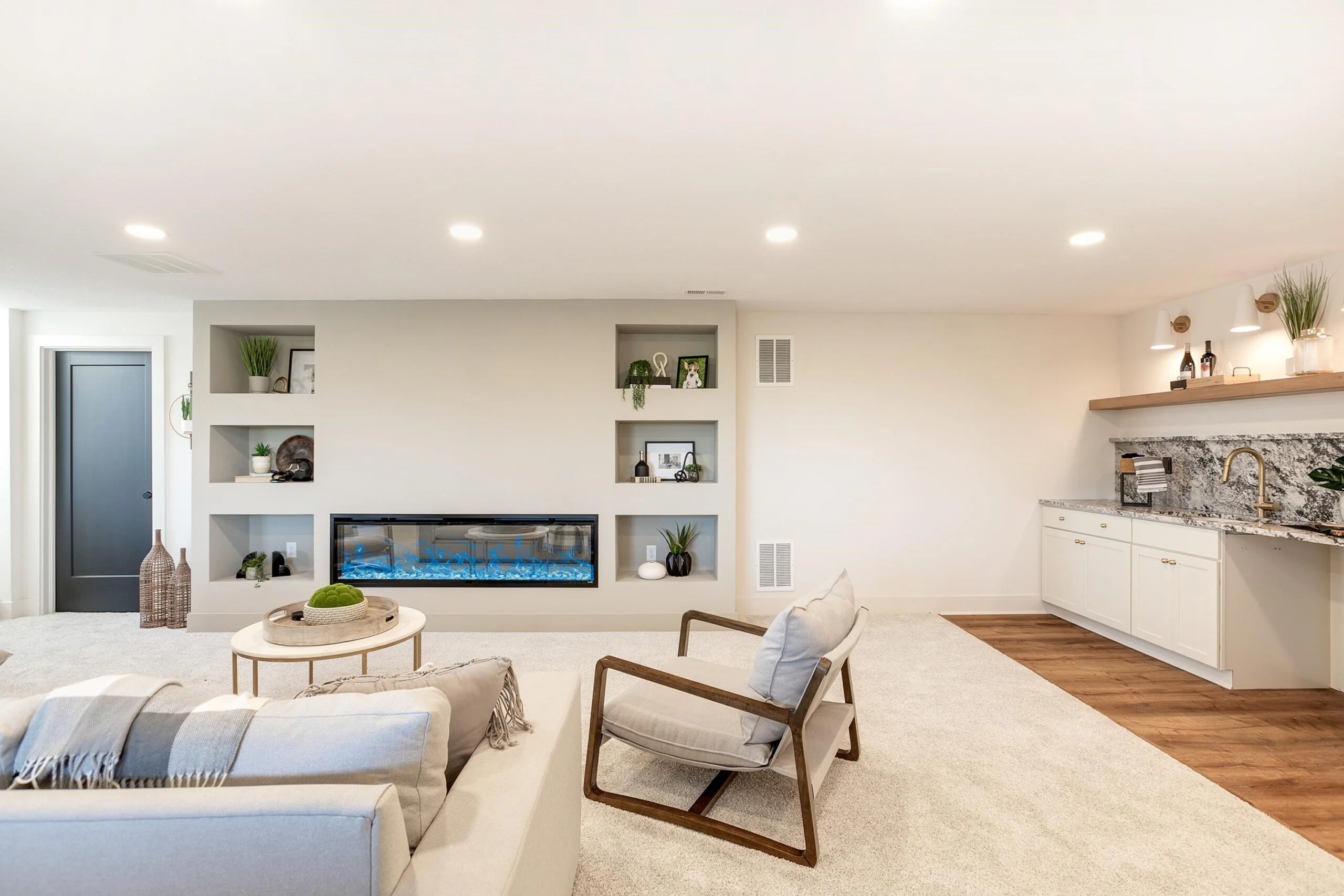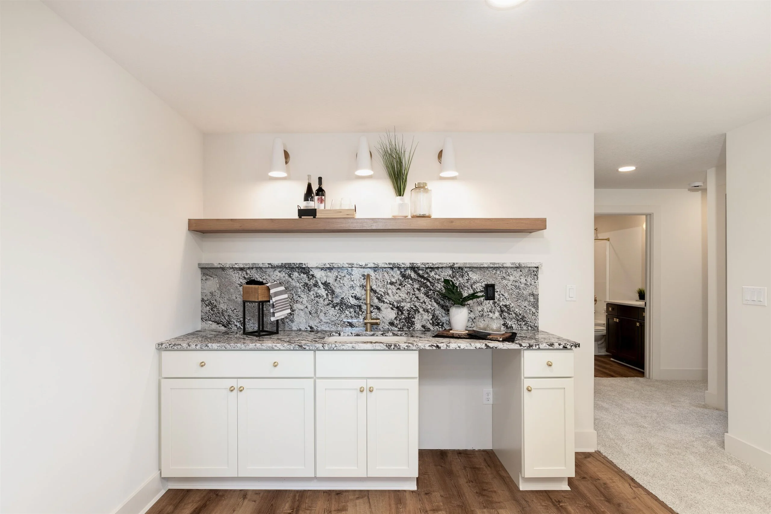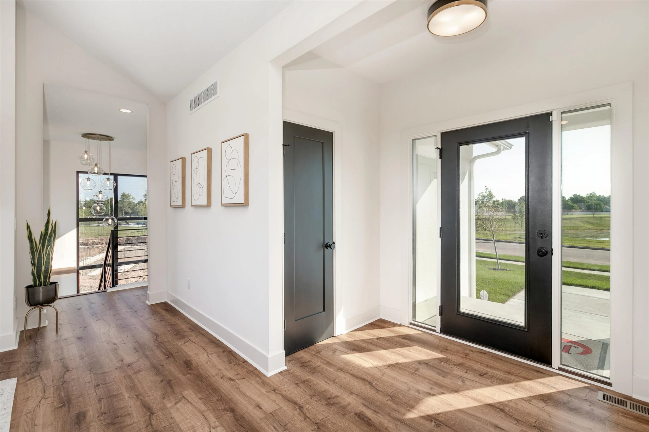 This is the showstopper “Kevin” plan with stairs to lower level located on the side corner of home with full glass walls! This is a 6 bedroom 3 bath home. You’l love the floor to ceiling windows in the vaulted living room. Kitchen is open and has the much coveted window over the kitchen sink looking to front of home. The pantry with double entries runs behind the length of the kitchen, and has 2 glass pocket doors that let in light but yet hide the space. The laundry room also houses a bench drop zone and connects to the spacious master closet. Stunning soaker tub with beautiful glass light fixture is a spa retreat in the primary bedroom suite, along with the walk in seamless glass shower. Bedrooms 2 and 3 are on the opposite side of the house with a hall bath in between. Basement is completely finished with a family room with entertainment wal and 2nd fireplace, wet bar, bath, and 3 more bedrooms! Large covered deck on back to enjoy those lake views! Information deemed reliable but not guaranteed and may change without notice. Specials may not be entirely spread yet on this lot. There is a $250 mailbox key at closing. Room sizes estimated. Information deemed reliable but not guaranteed and may change without notice. Specials may not be entirely spread on this lot. There is a $250 mailbox fee collected at closing. Room sizes estimated. Seller is licensed real estate agent in Kansas.
