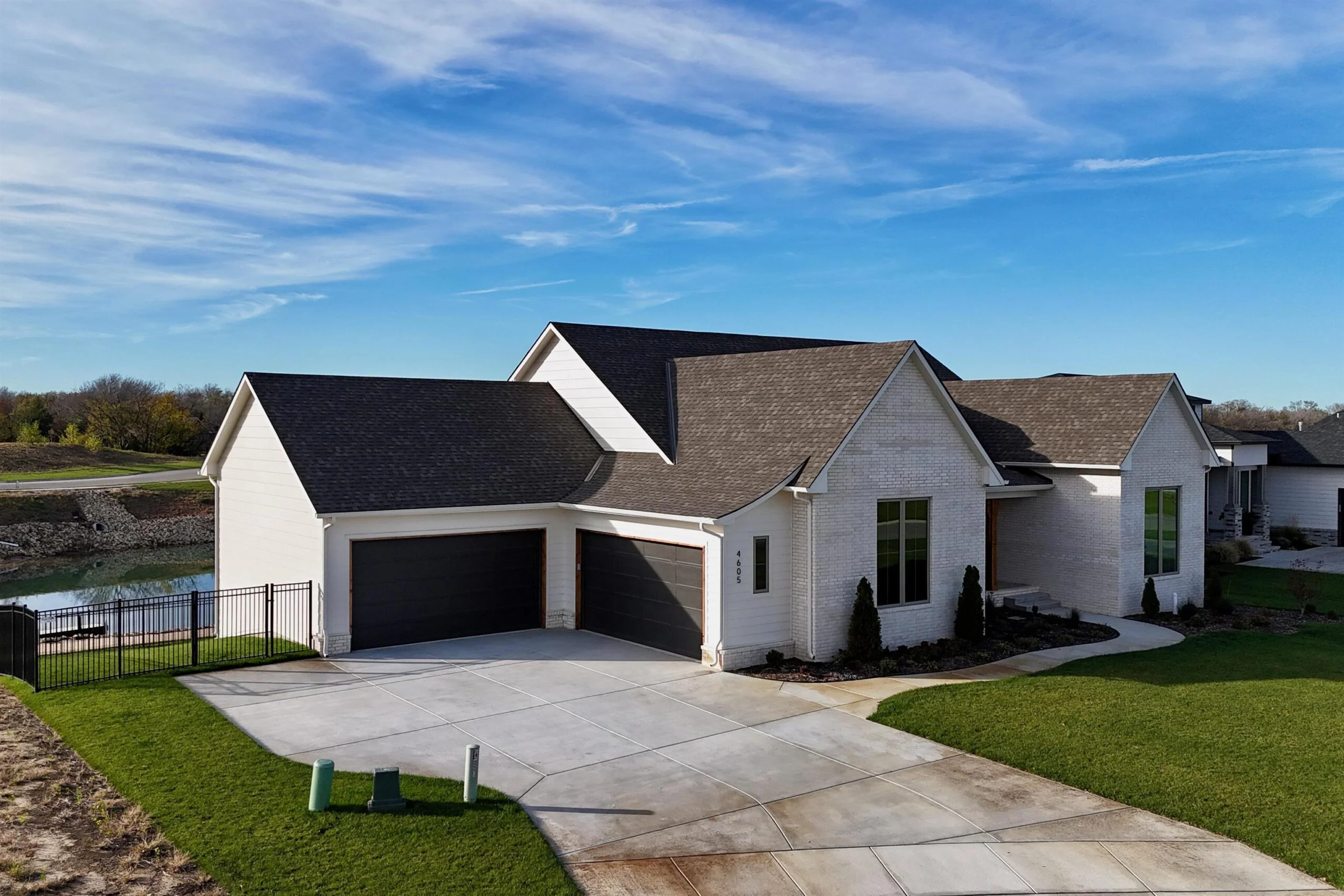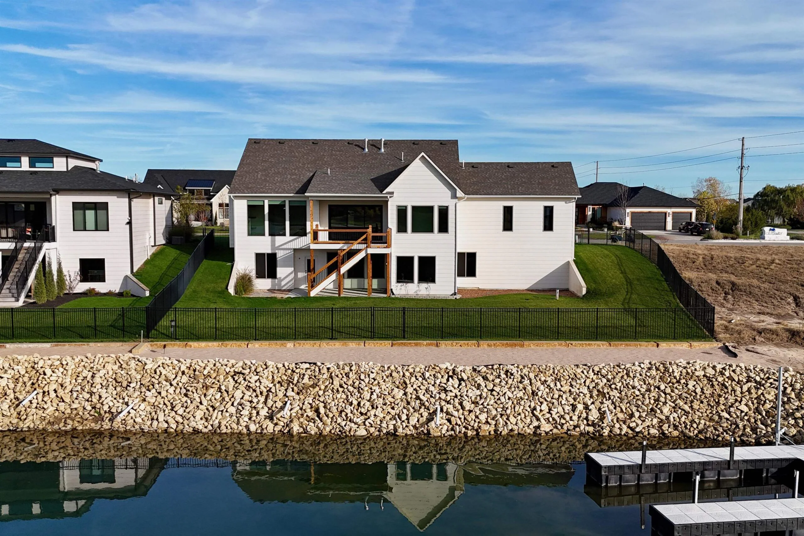 Welcome to the Magnolia III, a stunning new home by Robl Building Company, nestled on a private cul-de-sac lot in Wichita’s exclusive Castaway neighborhood. This lakefront property offers unparalleled views and direct access to a private 140-acre boating lake, perfect for water enthusiasts and lake lovers alike! The thoughtfully designed main floor features 3 spacious bedrooms and 2 luxurious bathrooms, highlighted by site-finished wood floors throughout the primary living areas. The rear-facing kitchen is a chef’s dream, complete with a walk-in pantry and plenty of space to entertain. Stacking glass doors open up to a covered deck, creating a seamless flow between indoor and outdoor living. The master suite is a true retreat, offering separate his' and hers' closets and a spa-like private bath with separate vanities, a soothing soaker tub, and a custom tile shower. The unfinished walk-out lower level provides ample space to expand with additional living areas or can be completed by the builder to suit your needs. The lower level is framed out and roughed in to include a spacious family room, pub area with wet bar, 2 bathrooms (one with direct access from the backyard), 2 additional generously sized bedrooms, and plenty of storage area. A fenced yard ensures privacy and security, while the property’s prime location allows you to enjoy a short walk to the neighborhood’s lakefront clubhouse, pool, playground, and basketball court. This is lakefront living at its finest—an exceptional opportunity to own a piece of paradise in one of Wichita’s most coveted communities. Start living life as it should be here in beautiful Castaway. Some information may be estimated and is not guaranteed. Please verify schools with USD 266.